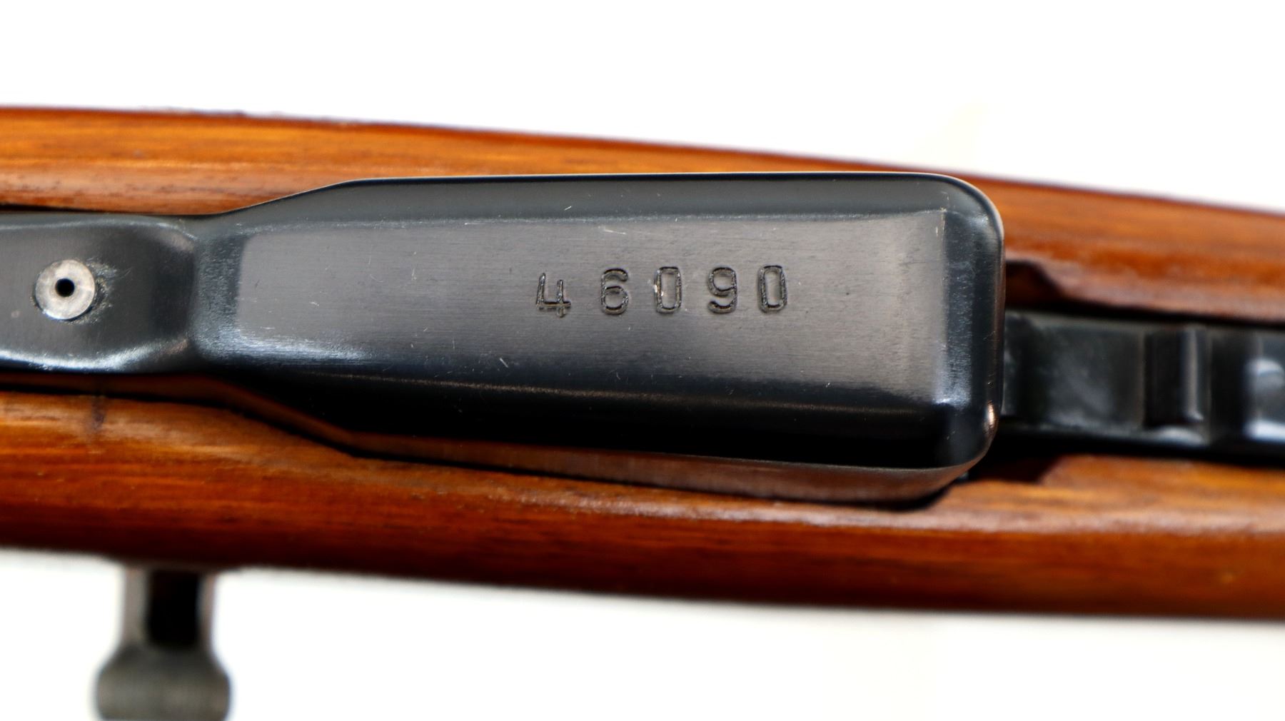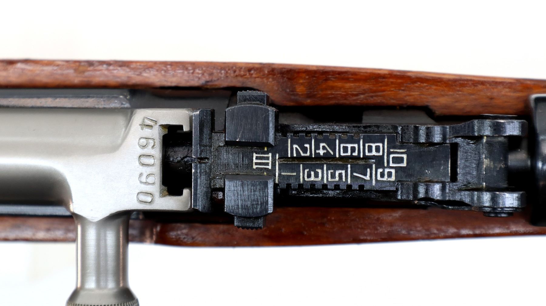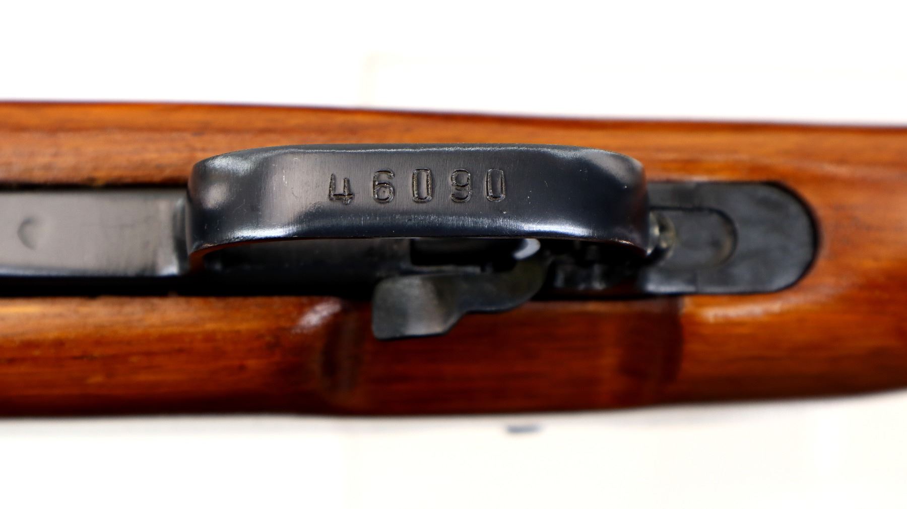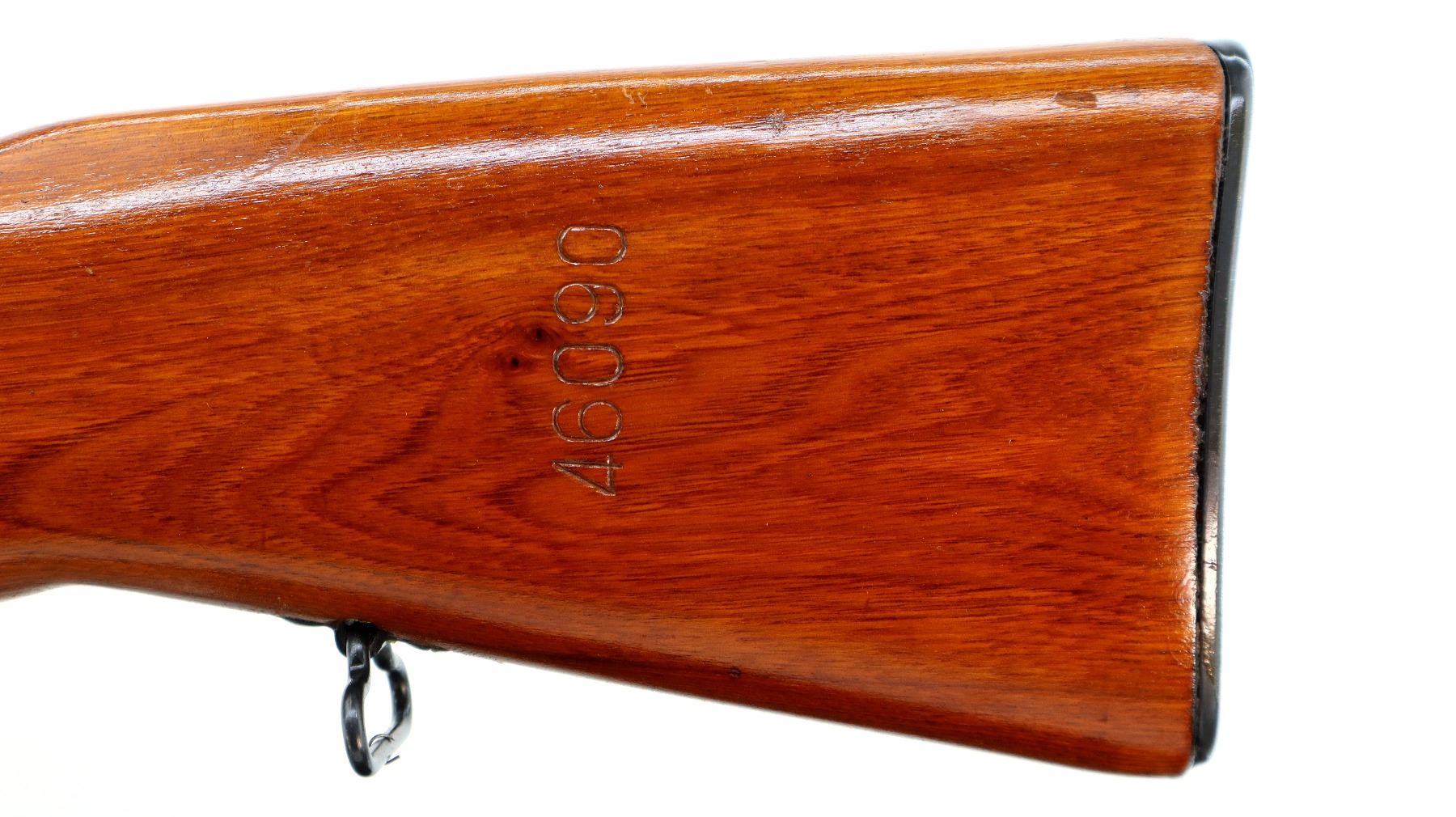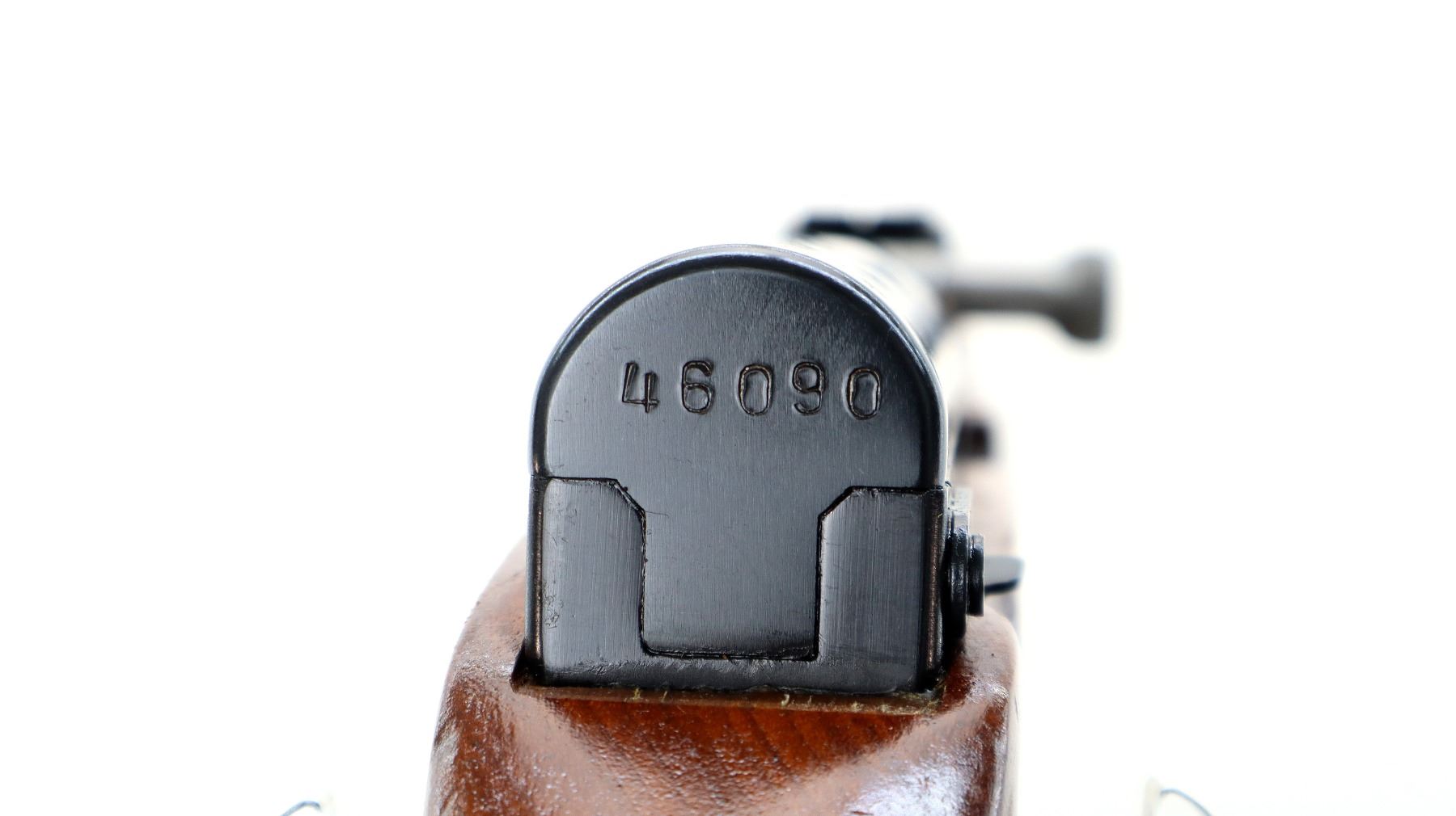 Main Description: Manufactured by Factory 26, visible numbers match. Post front sight with hood and ramp, adjustable u notched rear sight, blued finish, silver bolt and carrier. Two piece full military wood stocks, checkered brown polymer handguard, wood butt stock with finger grooved forearm, pistol grip, smooth steel butt plate with trap and cleaning kit, sling swivels, cleaning rod, attached folding cruciform bayonet.