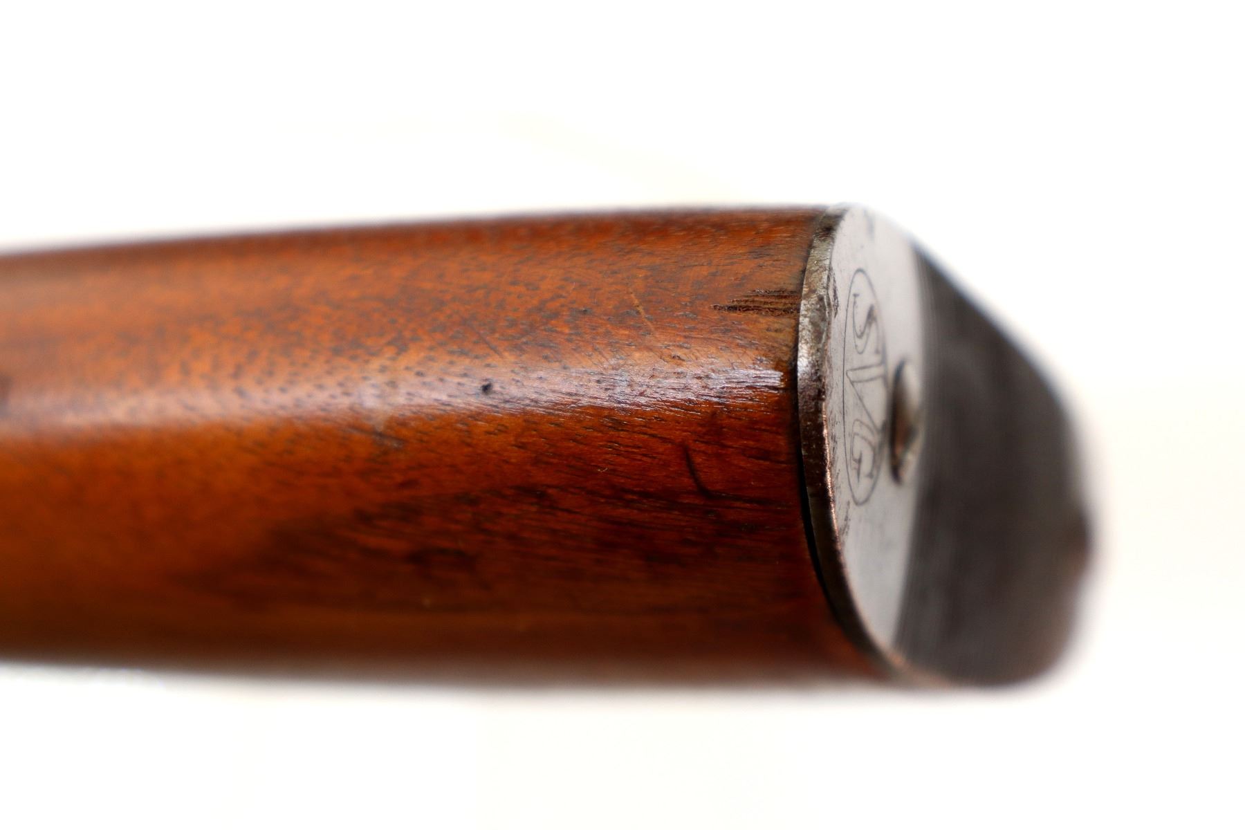 Wear: Metal finish shows some light rust speckles, scratches, handling marks and wear. Stock shows marks, scratches and wear.