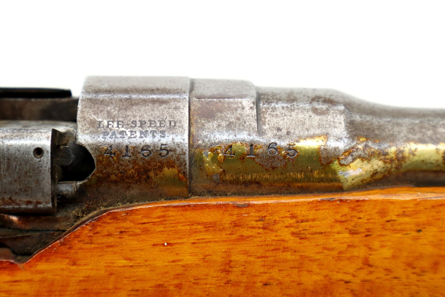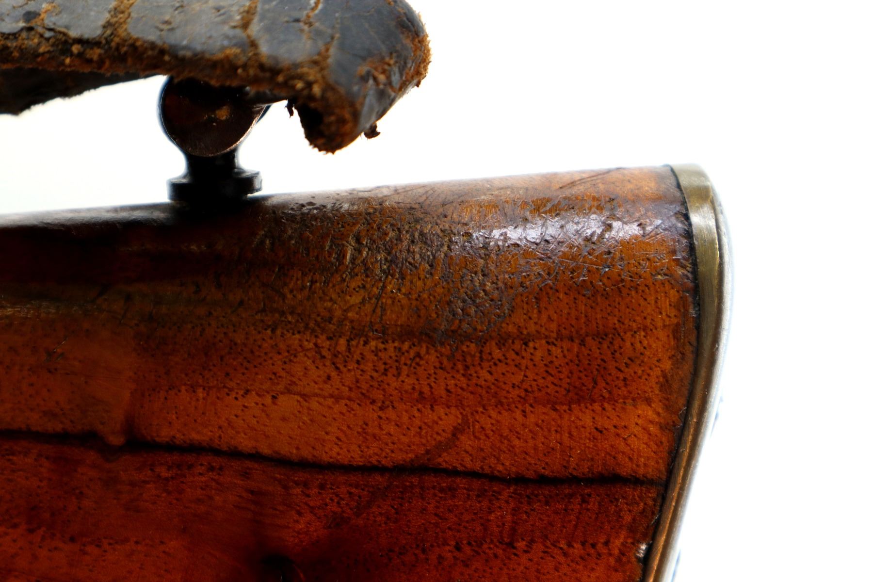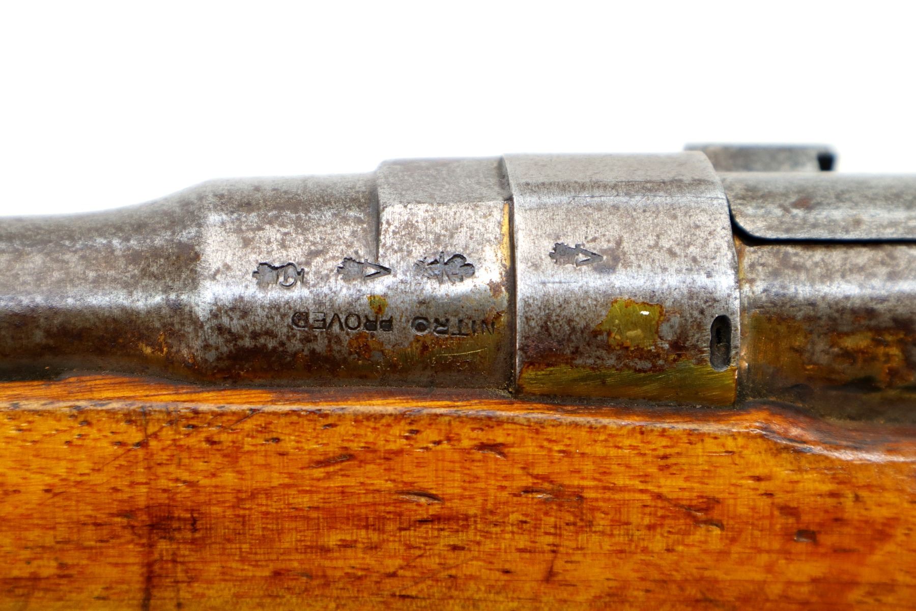 Wear: Metal finish turning silver grey with pitting, light rust spots, scratches, handling marks and wear. Stocks show some marks, scratches and wear.