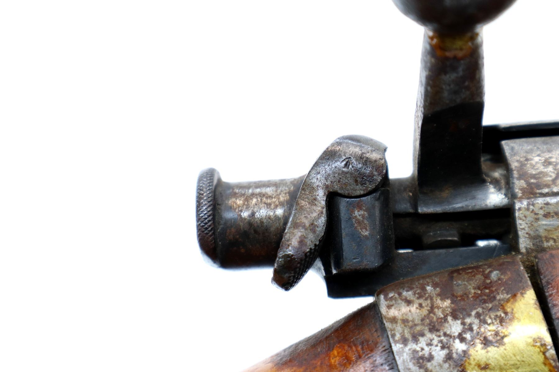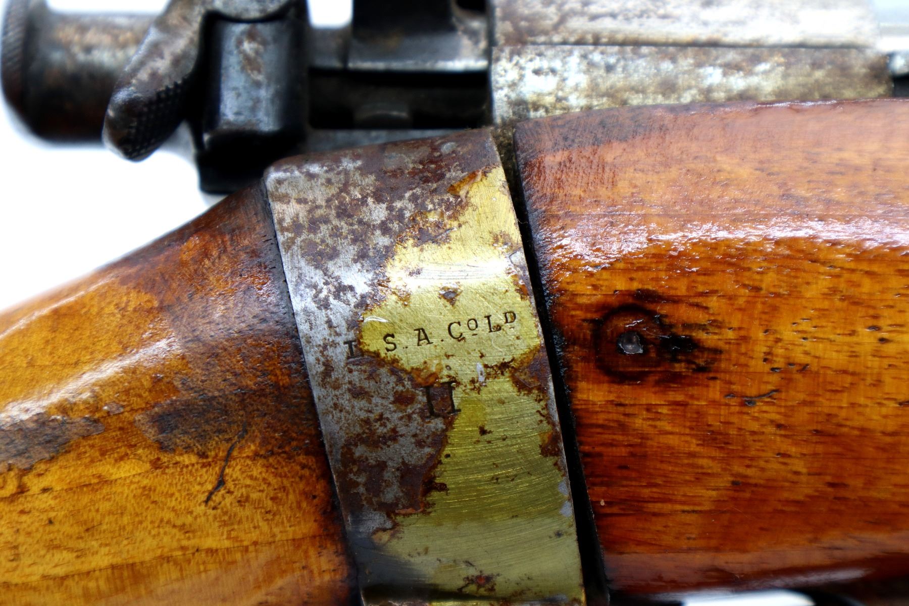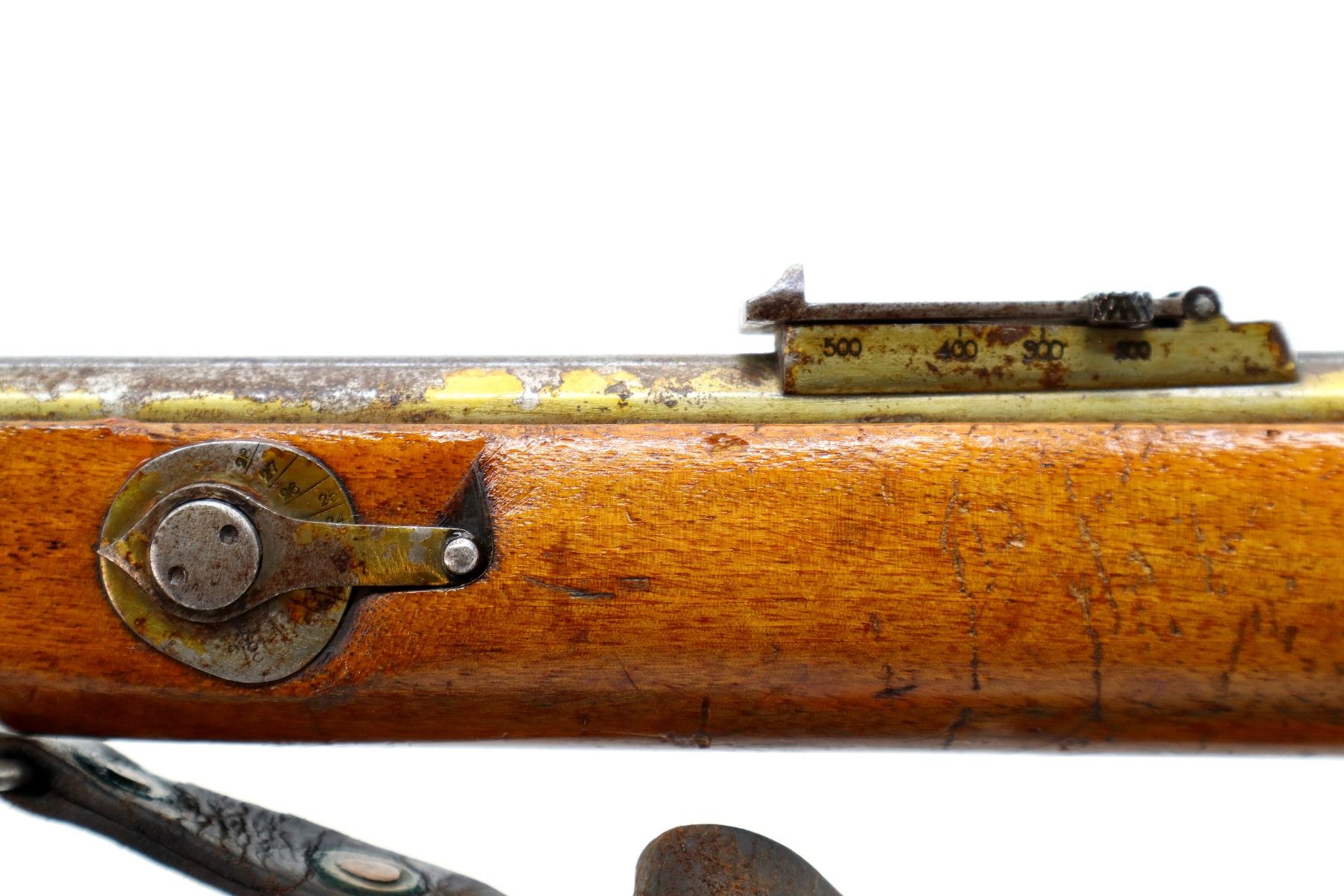 Wear: Metal finish turning silver grey with pitting, light rust spots, scratches, handling marks and wear. Stocks show some marks, scratches and wear.