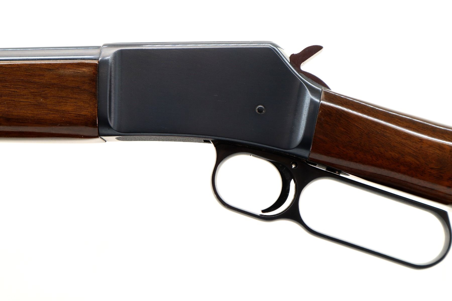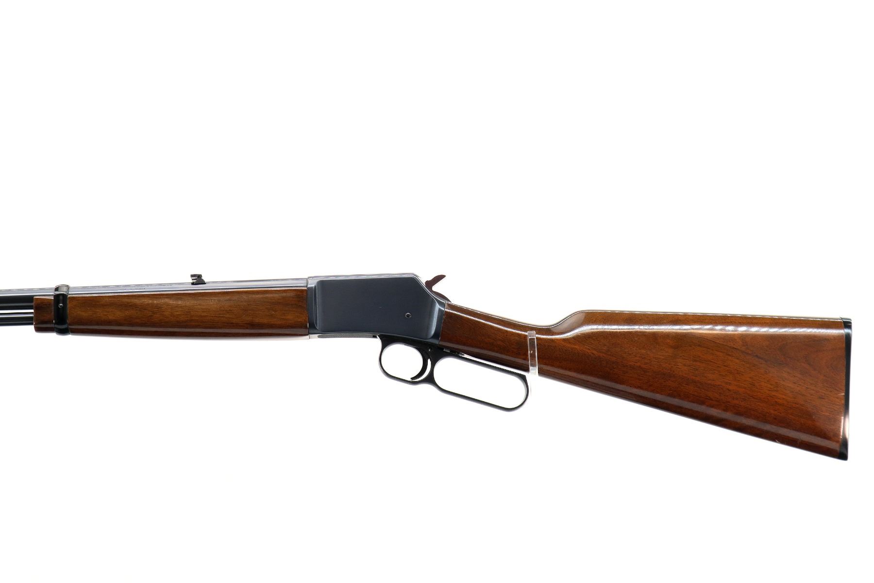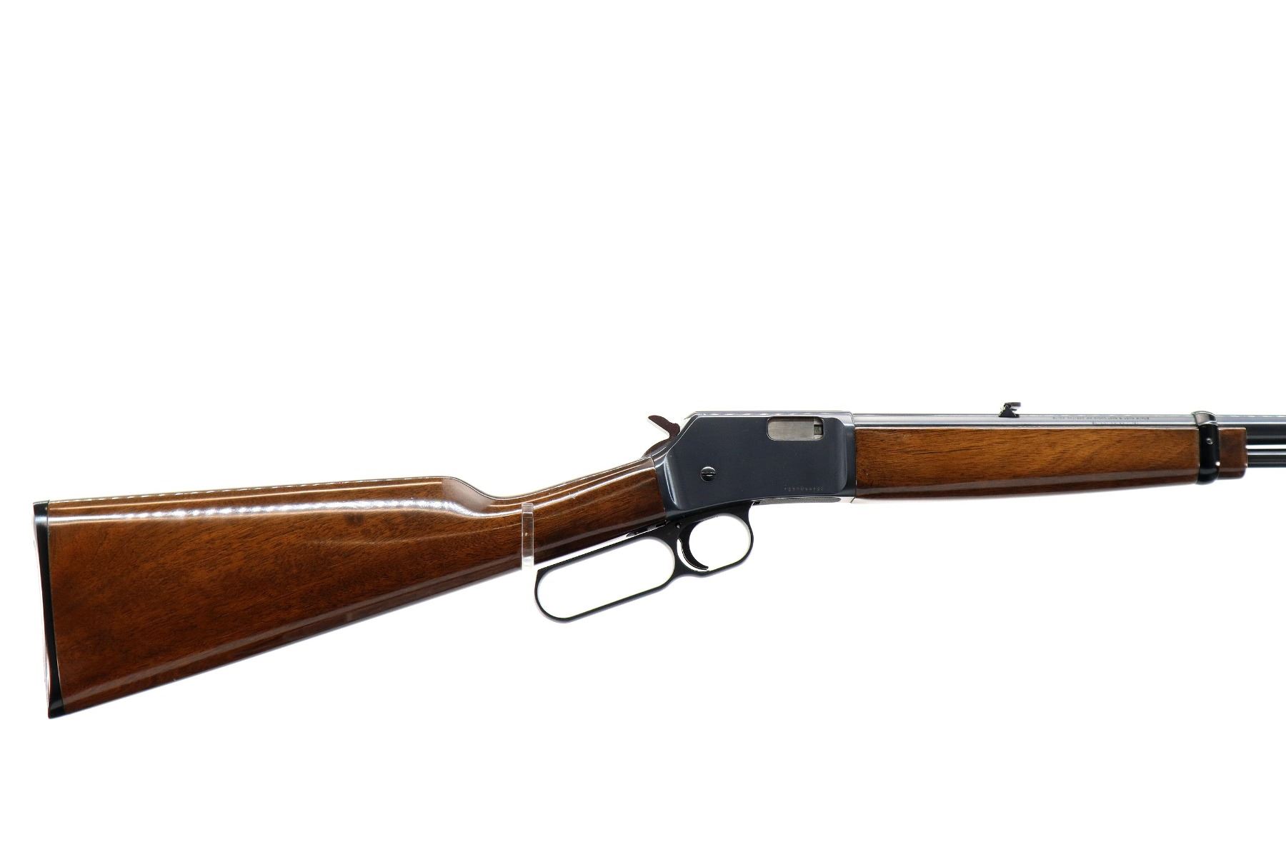 Main Description: Blade front sight, adjustable folding u notched rear sight, blued finish, grooved receiver and spur hammer. Two piece wood stocks, straight grip, Browning logo black polymer butt plate, full length magtube.
