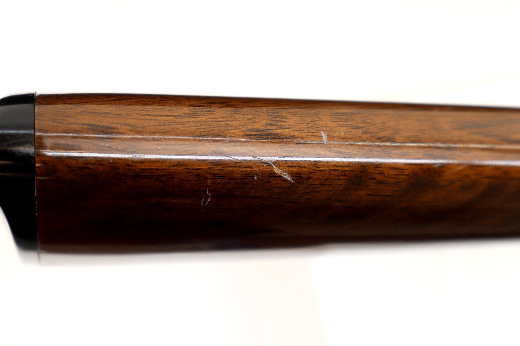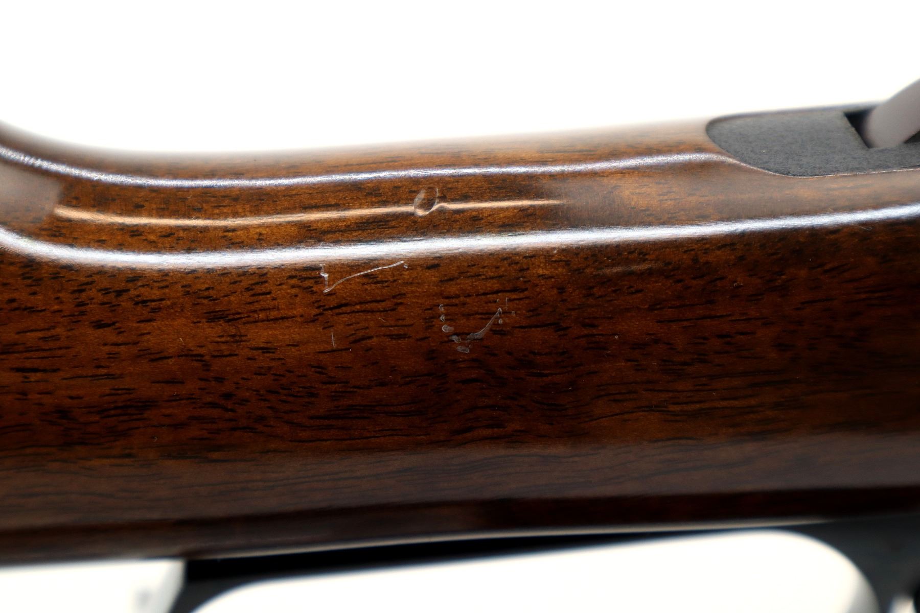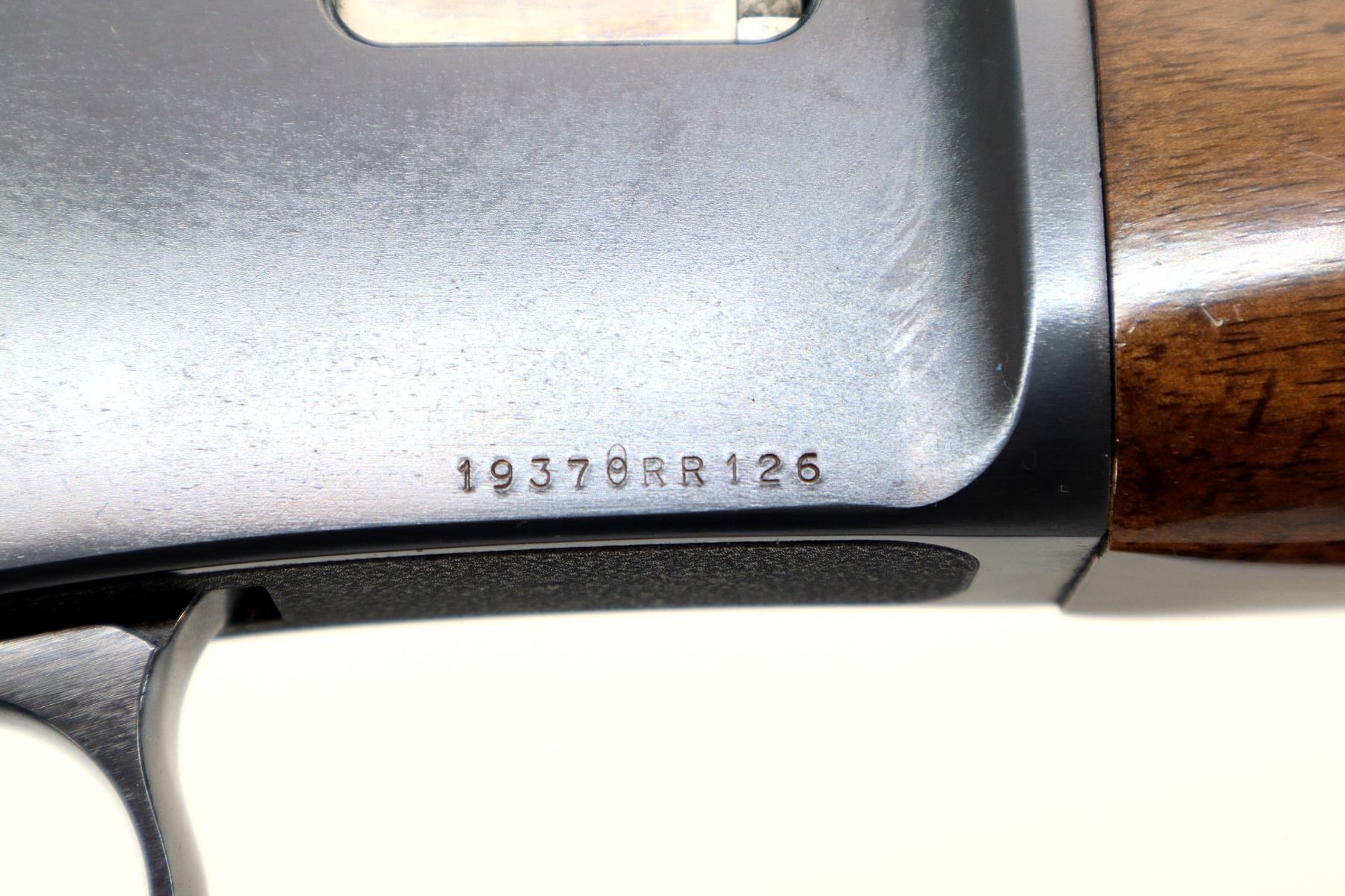 Main Description: Blade front sight, adjustable folding u notched rear sight, blued finish, grooved receiver and spur hammer. Two piece wood stocks, straight grip, Browning logo black polymer butt plate, full length magtube.