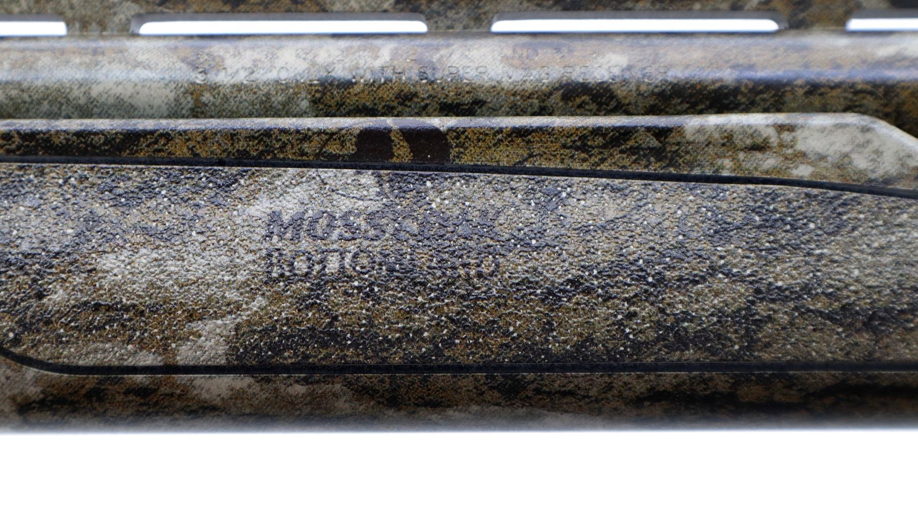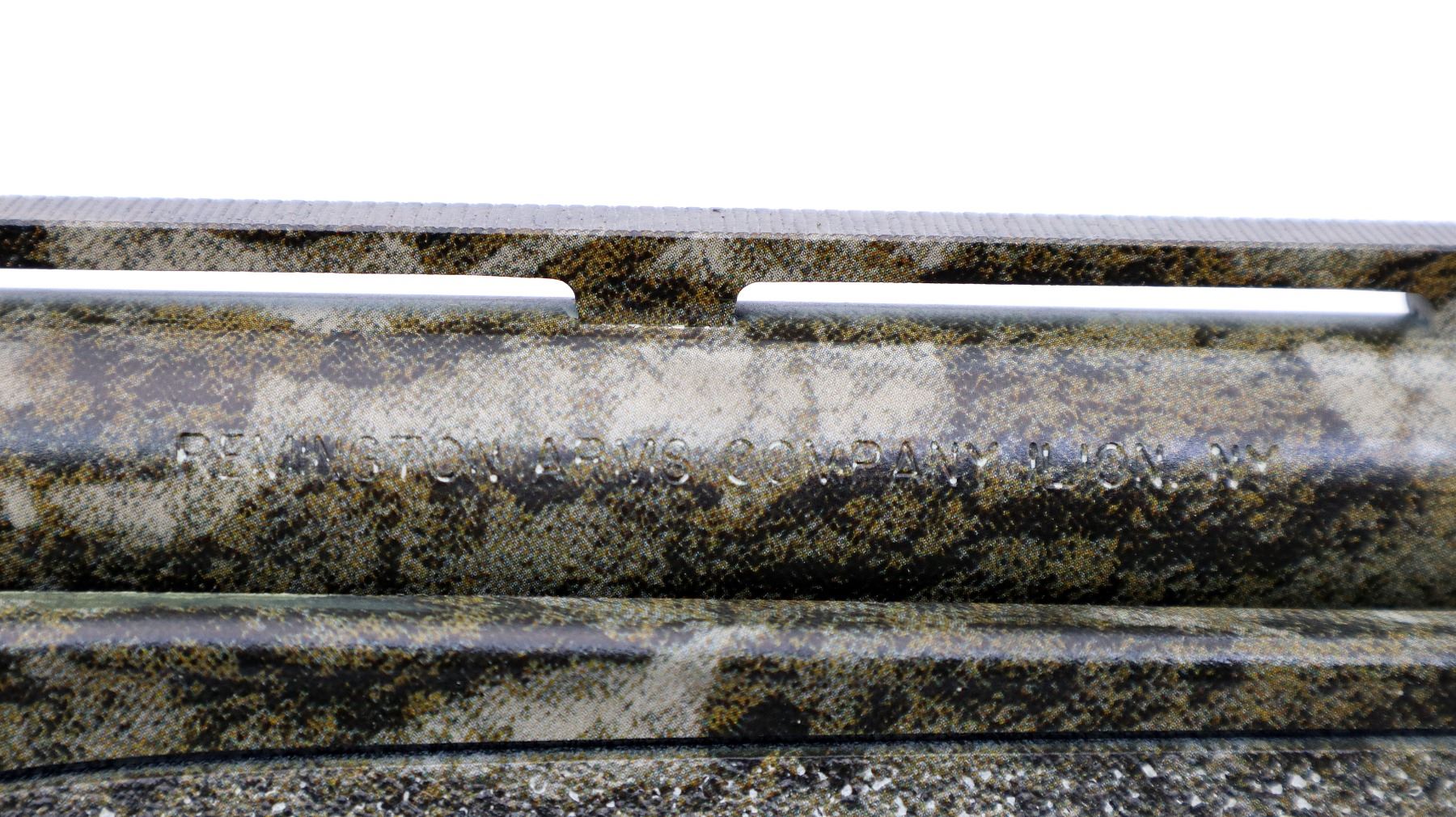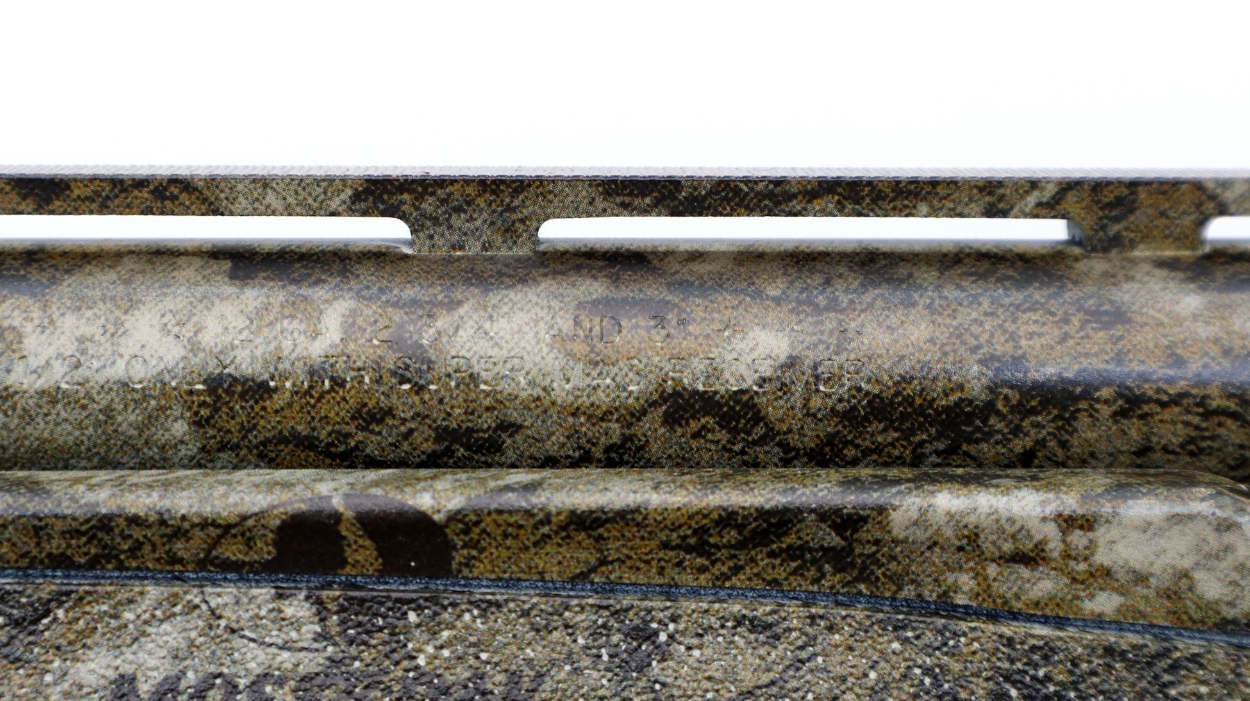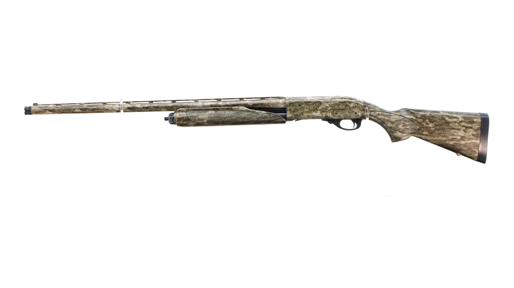 Main Description: Green fiber optic front bead, Mossy Oak Bottom Land Camo finish overall, vent rib, receiver drilled and tapped with no plug screws installed. Two piece synthetic stocks, textured forearm and pistol grip panels, black rubber recoil pad, grip cap, swivel studs. Accessories include: Scope rail with screws, 2 trigger locks, magtube plug, spare Magnetic front bead with 7 different sized and coloured inserts, additional chokes are IC and Extended Extra Full Turkey with wrench.