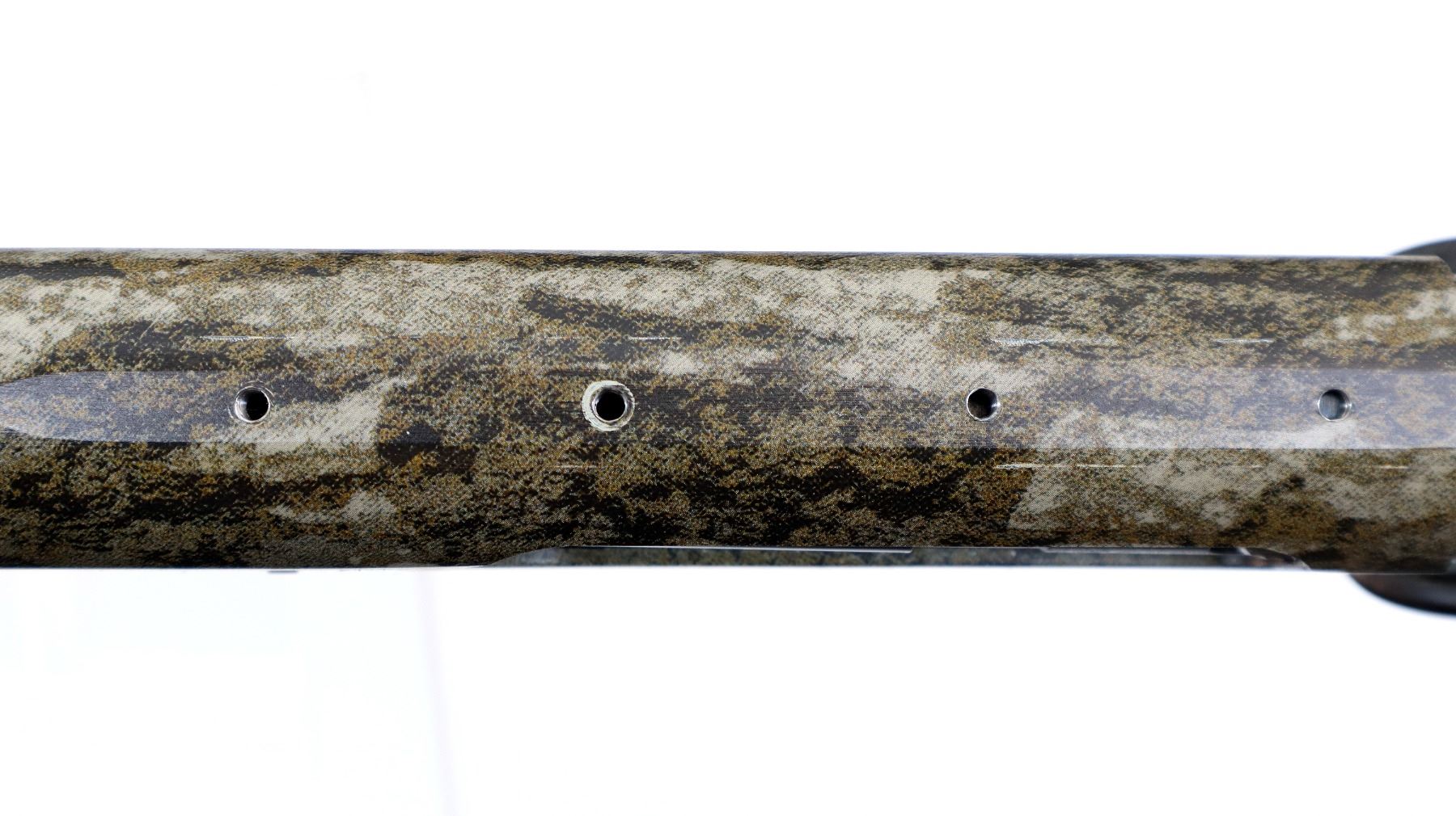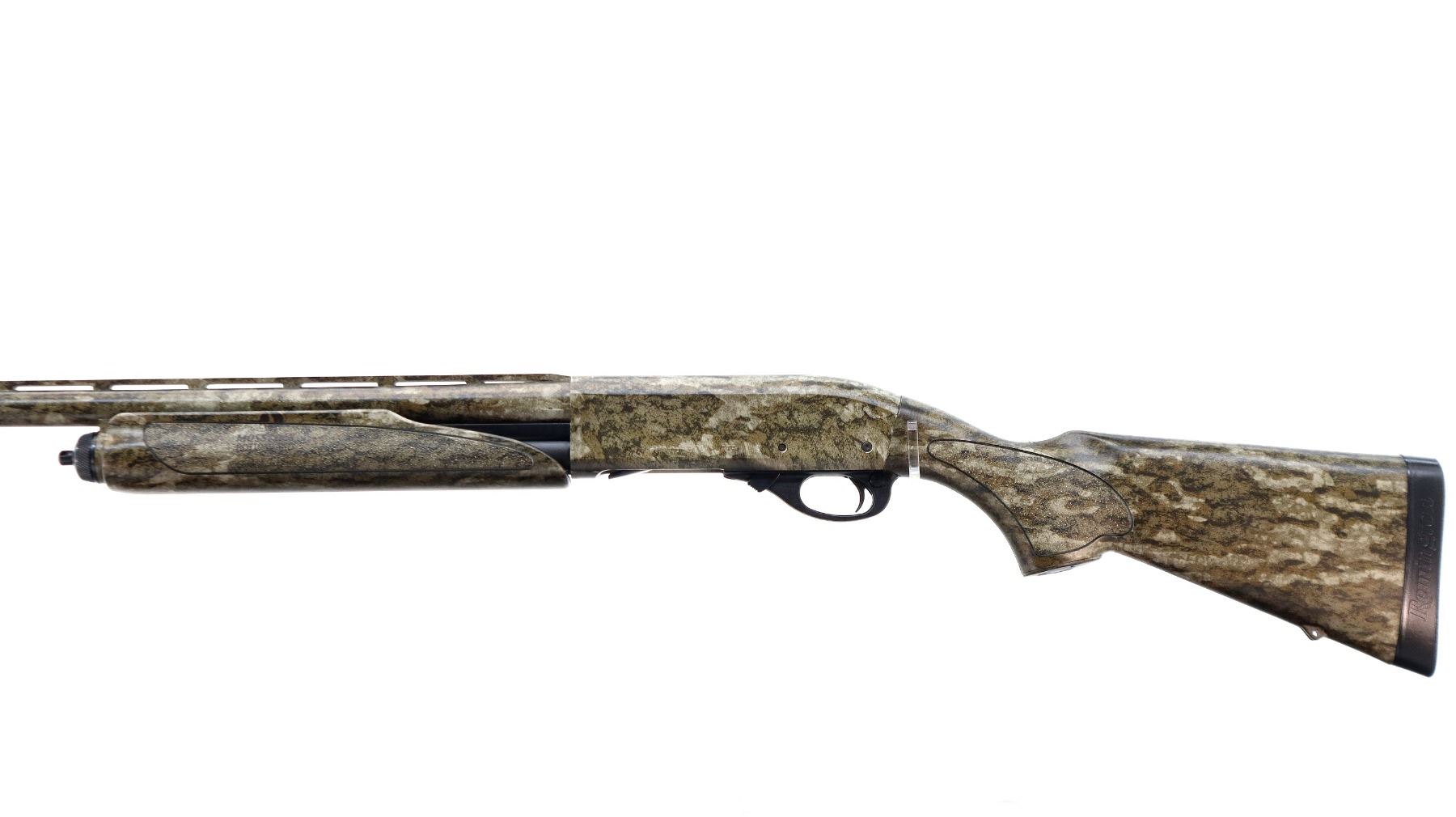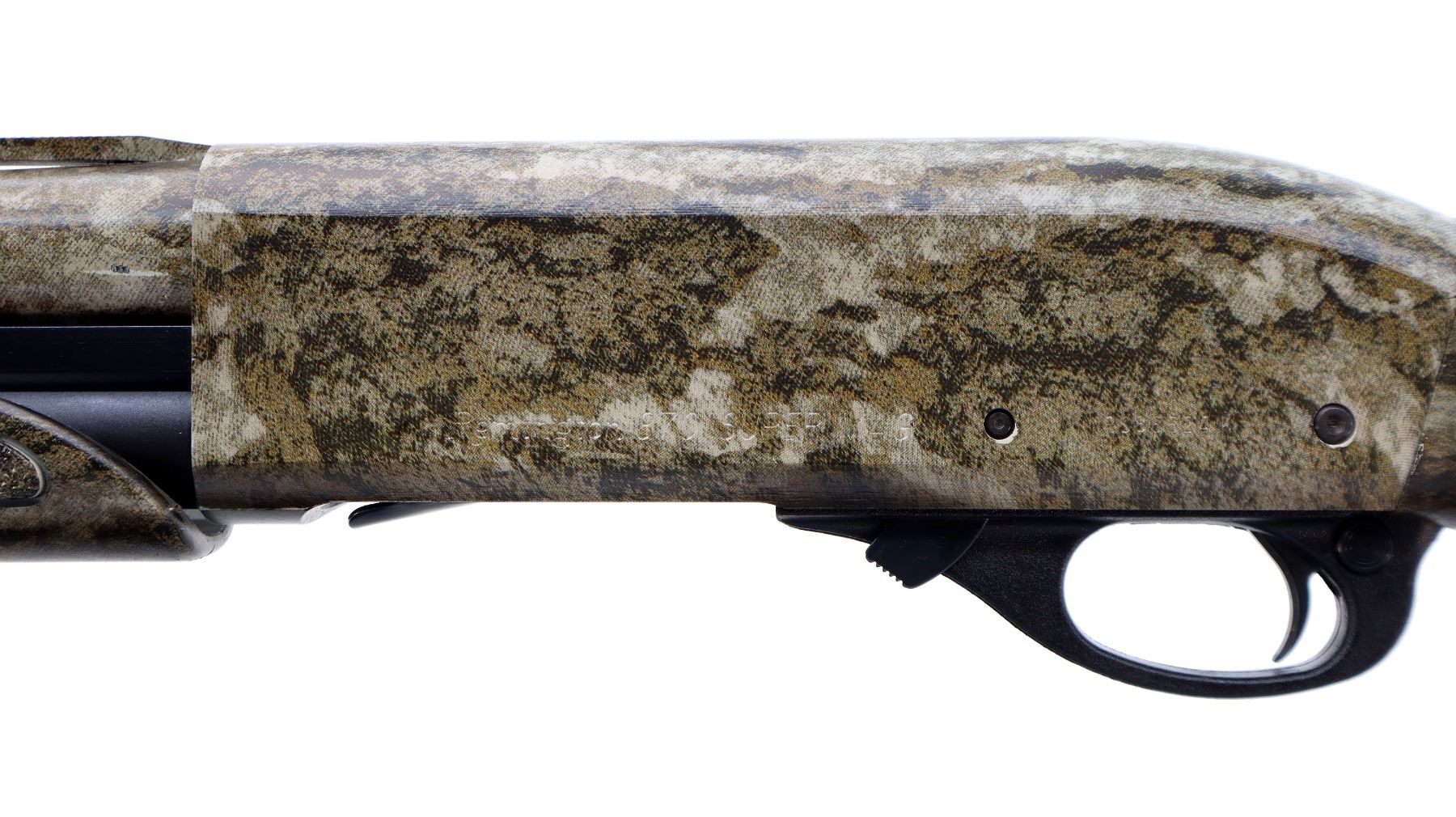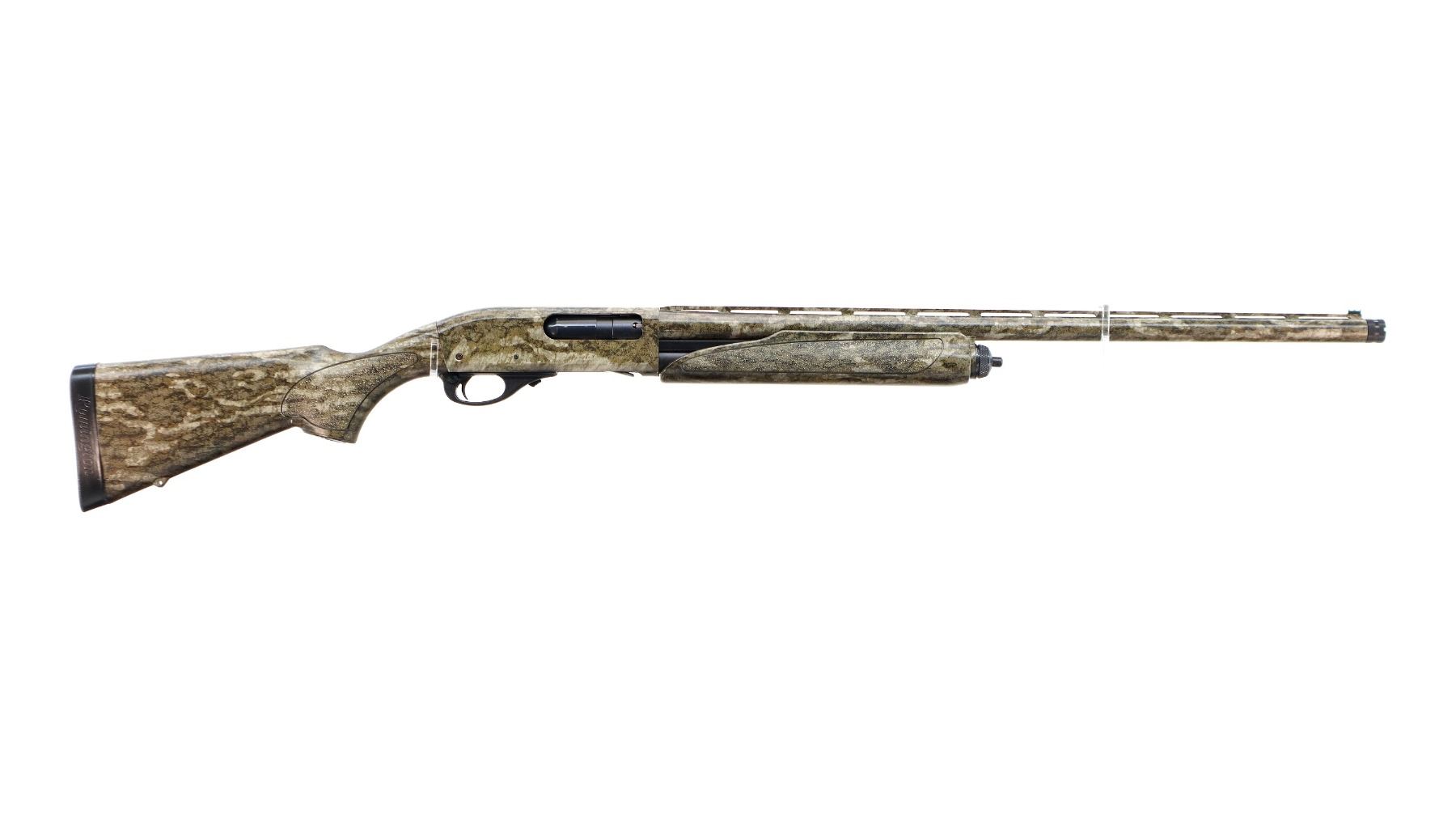 Main Description: Green fiber optic front bead, Mossy Oak Bottom Land Camo finish overall, vent rib, receiver drilled and tapped with no plug screws installed. Two piece synthetic stocks, textured forearm and pistol grip panels, black rubber recoil pad, grip cap, swivel studs. Accessories include: Scope rail with screws, 2 trigger locks, magtube plug, spare Magnetic front bead with 7 different sized and coloured inserts, additional chokes are IC and Extended Extra Full Turkey with wrench.