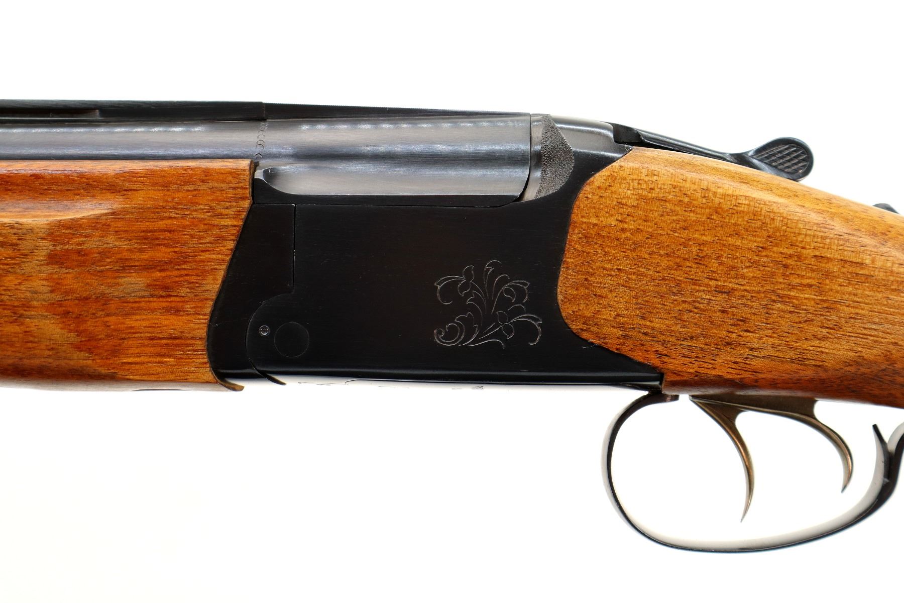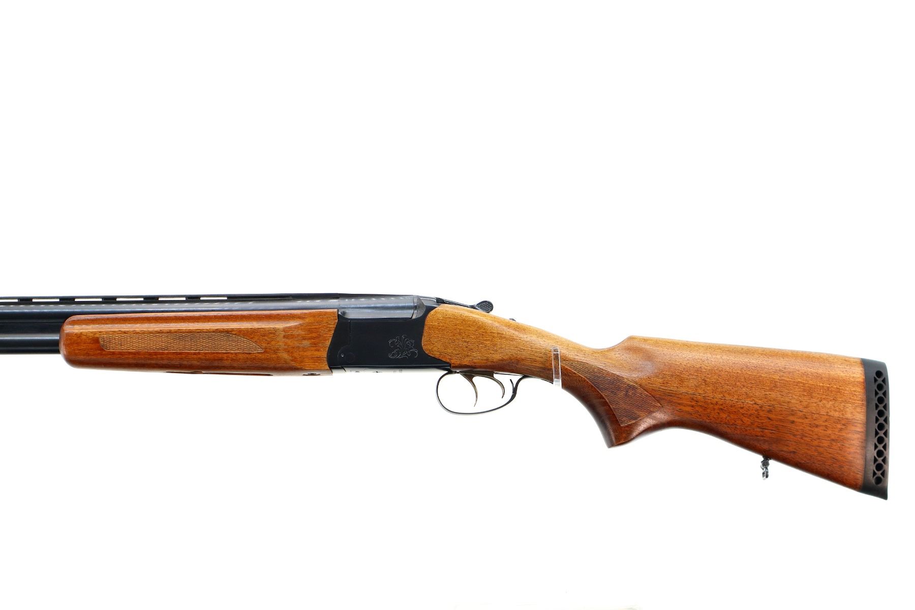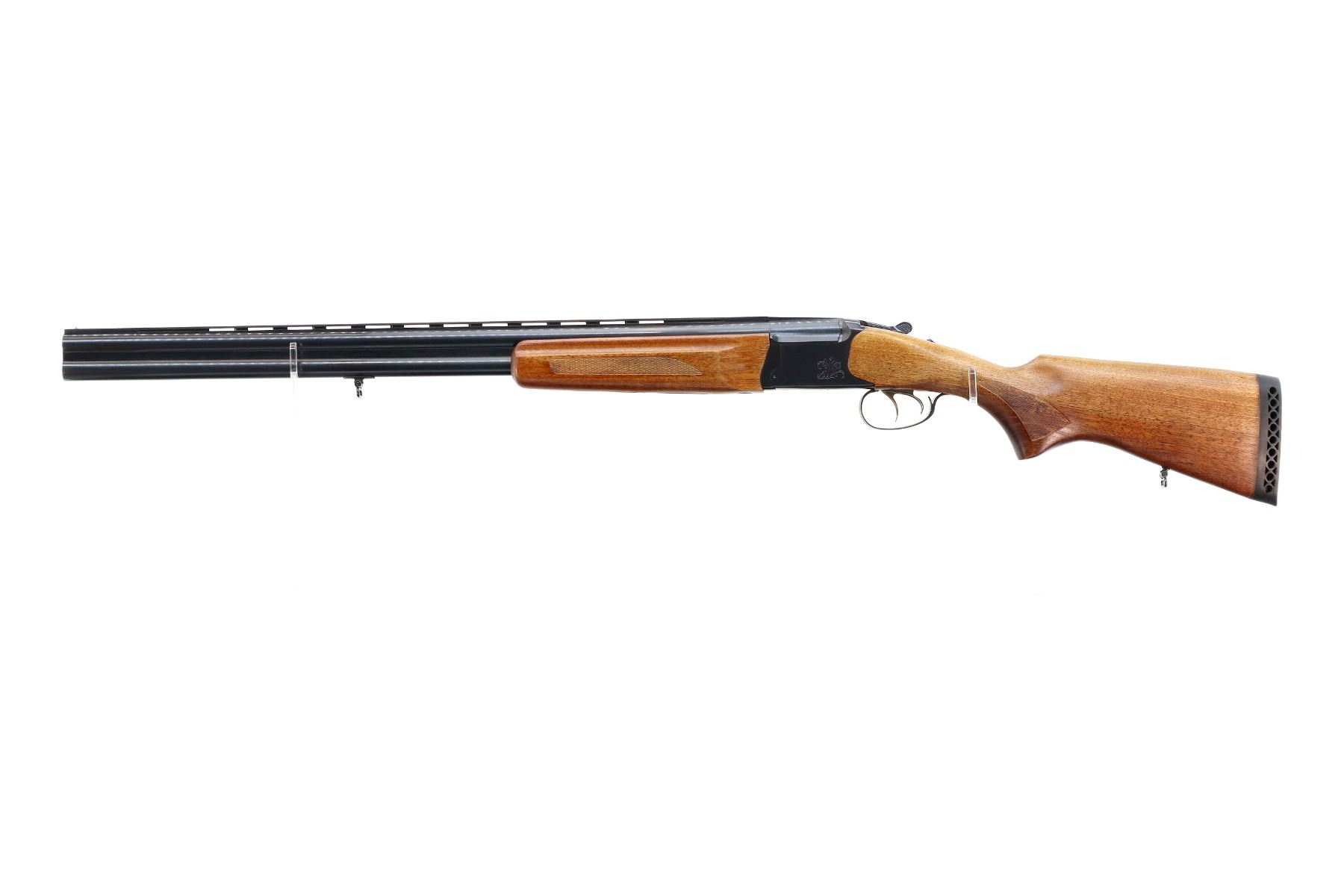 Main Description: Silver bead, blued finish, vent rib, engraved receiver, automatic safety, extractor, double triggers. Two piece wood stocks, finger grooved checkered forearm and pistol grip, black vented rubber recoil pads, sling swivels.