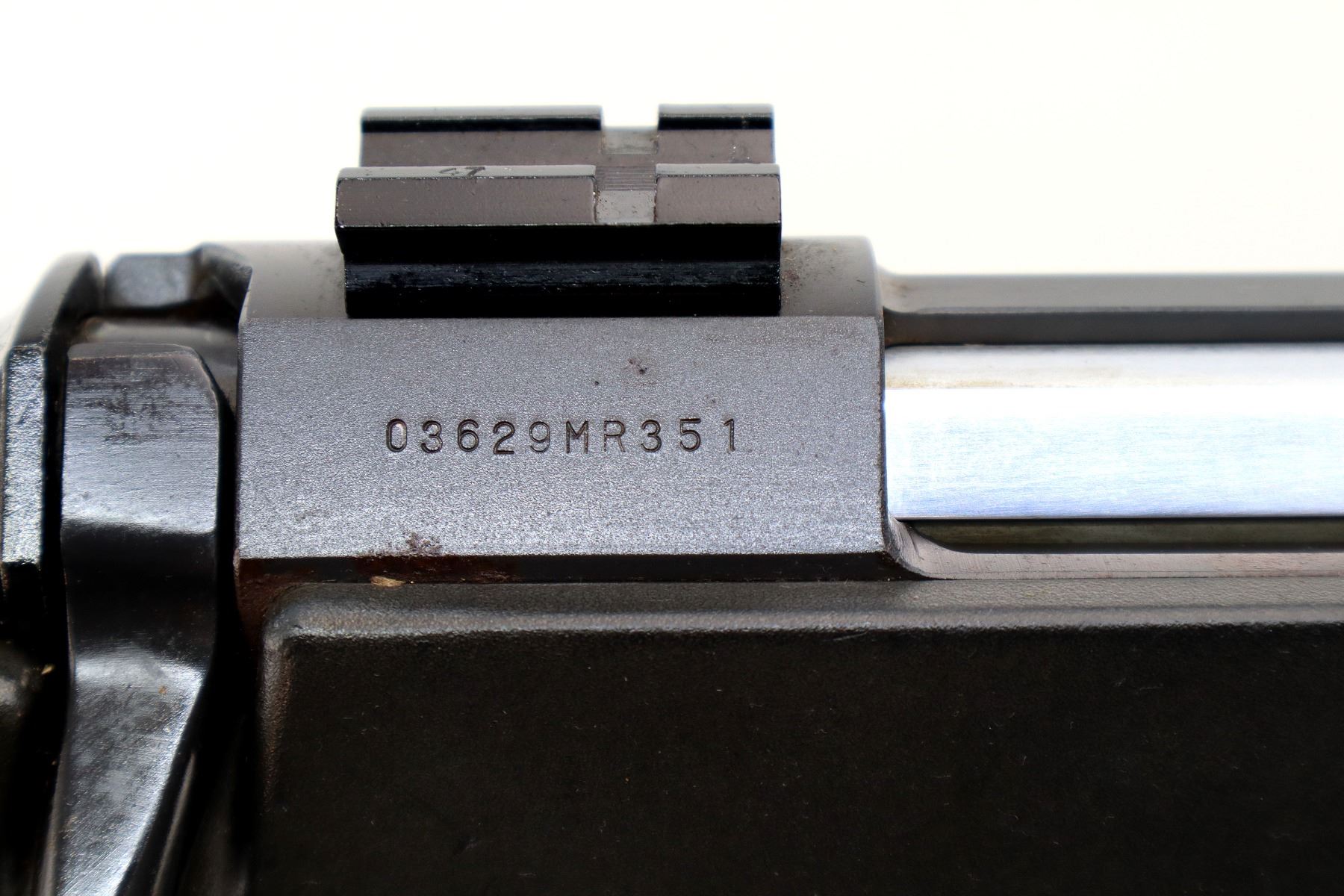 Main Description: No sights, Parkerized metal finish, barrel threaded at muzzle with no cap, receiver drilled and tapped with two piece scope bases installed, flat sided bolt knob, tang safety. One piece black synthetic stock, checkered forearm and pistol grip with right hand palm swell, black rubber recoil pad, grip cap, gold trigger, sling swivels.