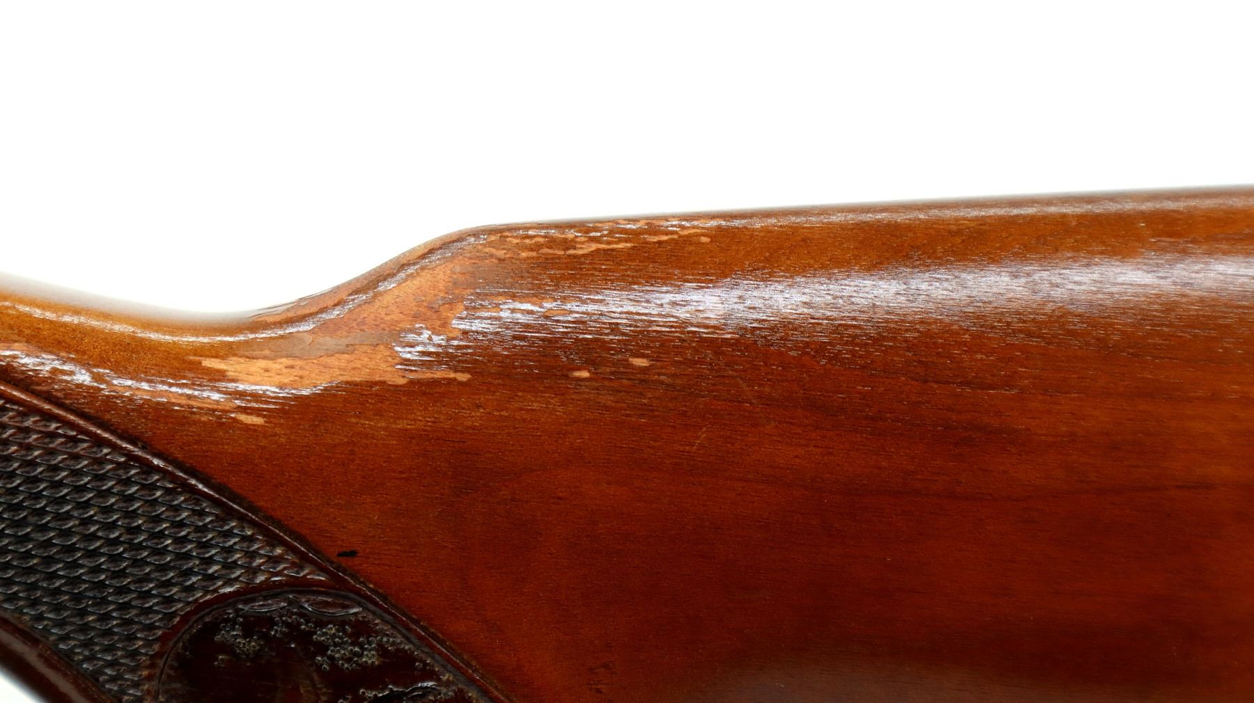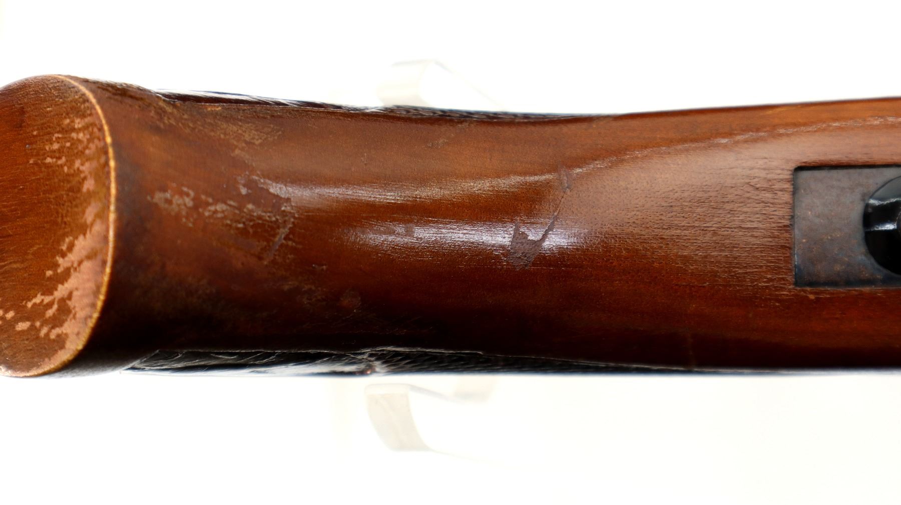 Wear: Metal finish shows light rust speckles overall with scratches, handling marks and wear. Stocks show marks, scratches and wear.