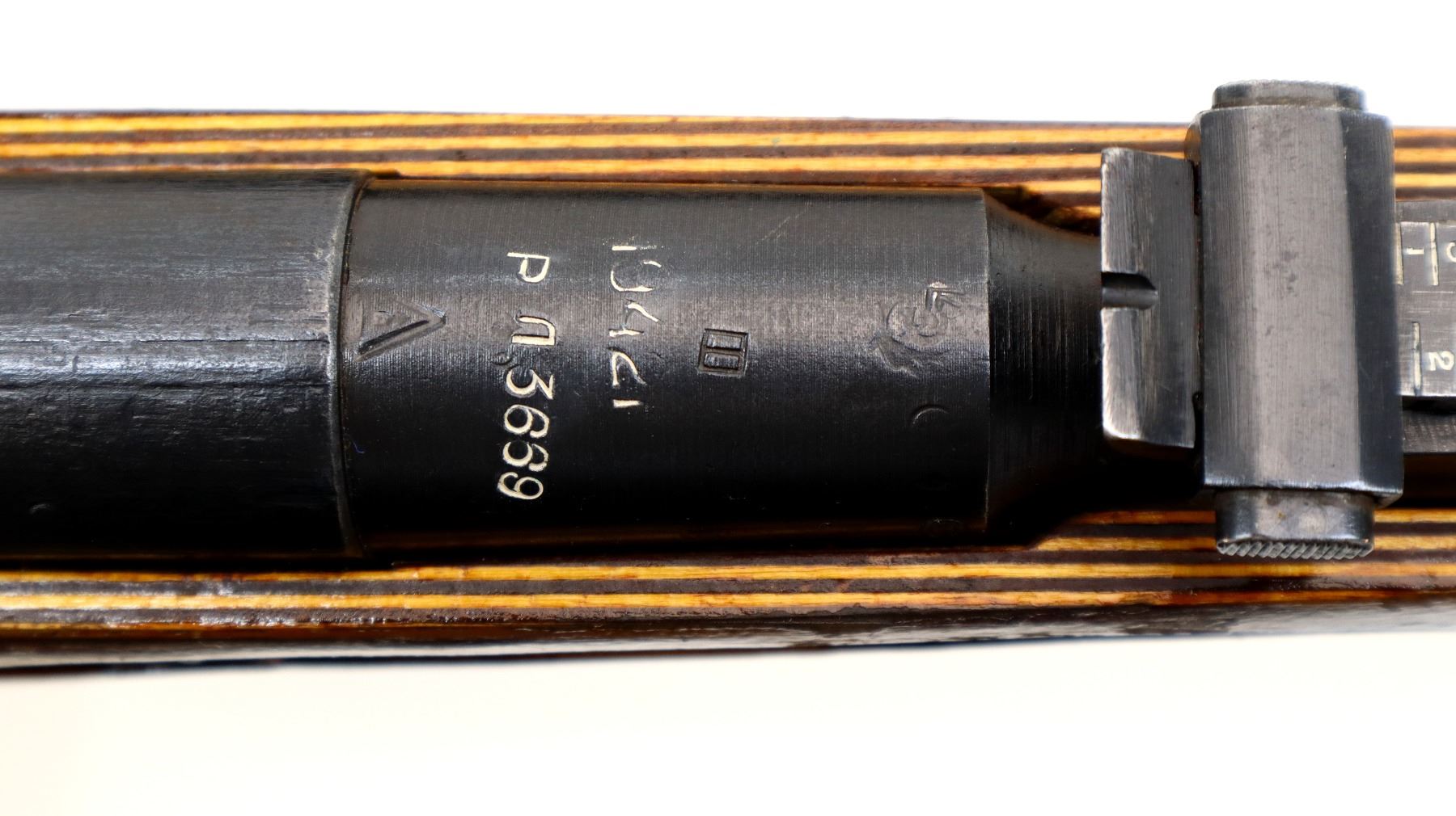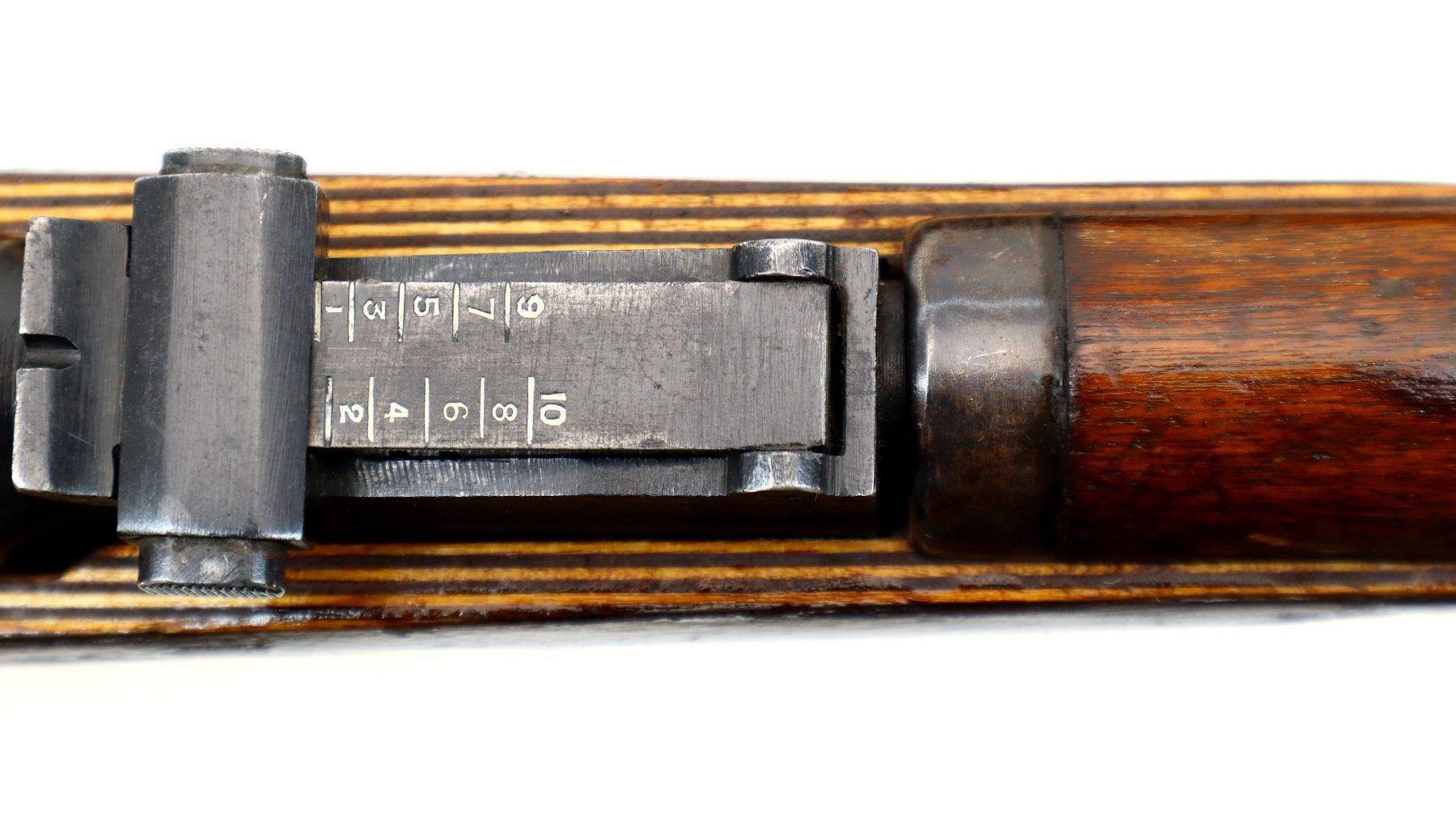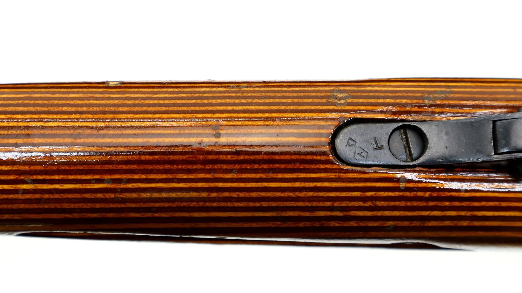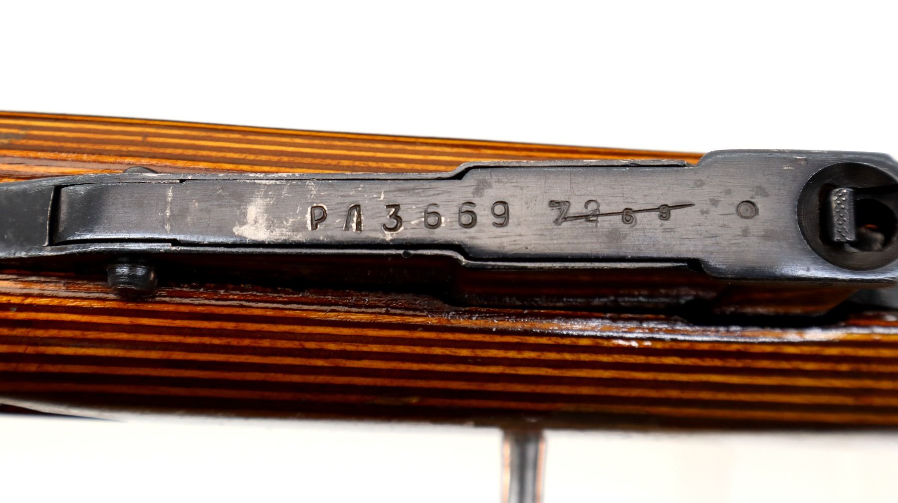 Main Description: Manufactured by Izhevsk 1942, arsenal rebuilt numbered to match. Post front sight with hood and ramp, adjustable u notched rear sight, blued finish, round receiver, silver bolt with straight handle. Two piece full military wood stocks, handguard has arsenal repairs, laminated finger grooved stock, note: does not have cut out for M44 bayonet. Straight grip, smooth steel butt plate, sling slots, missing cleaning rod.