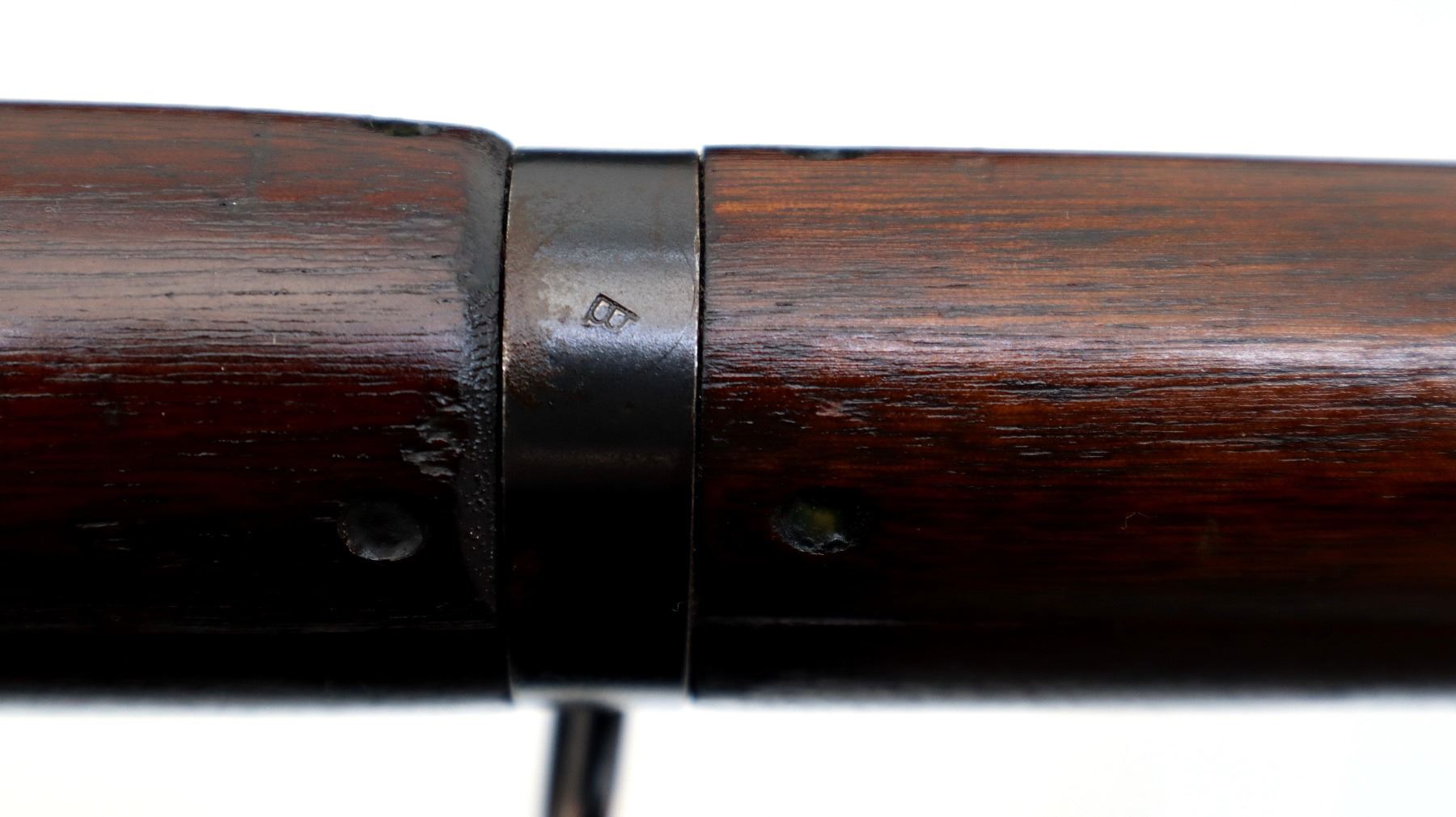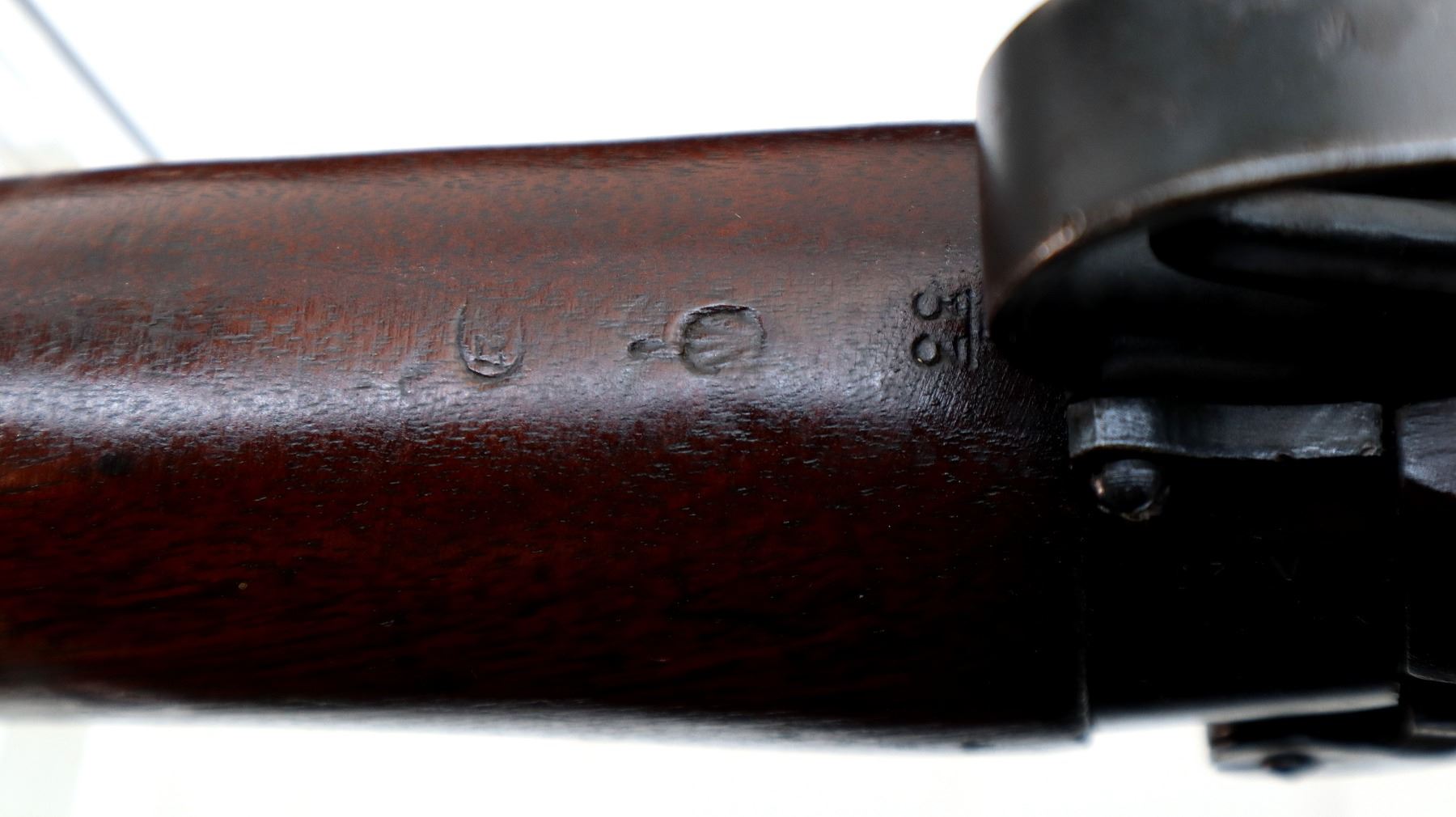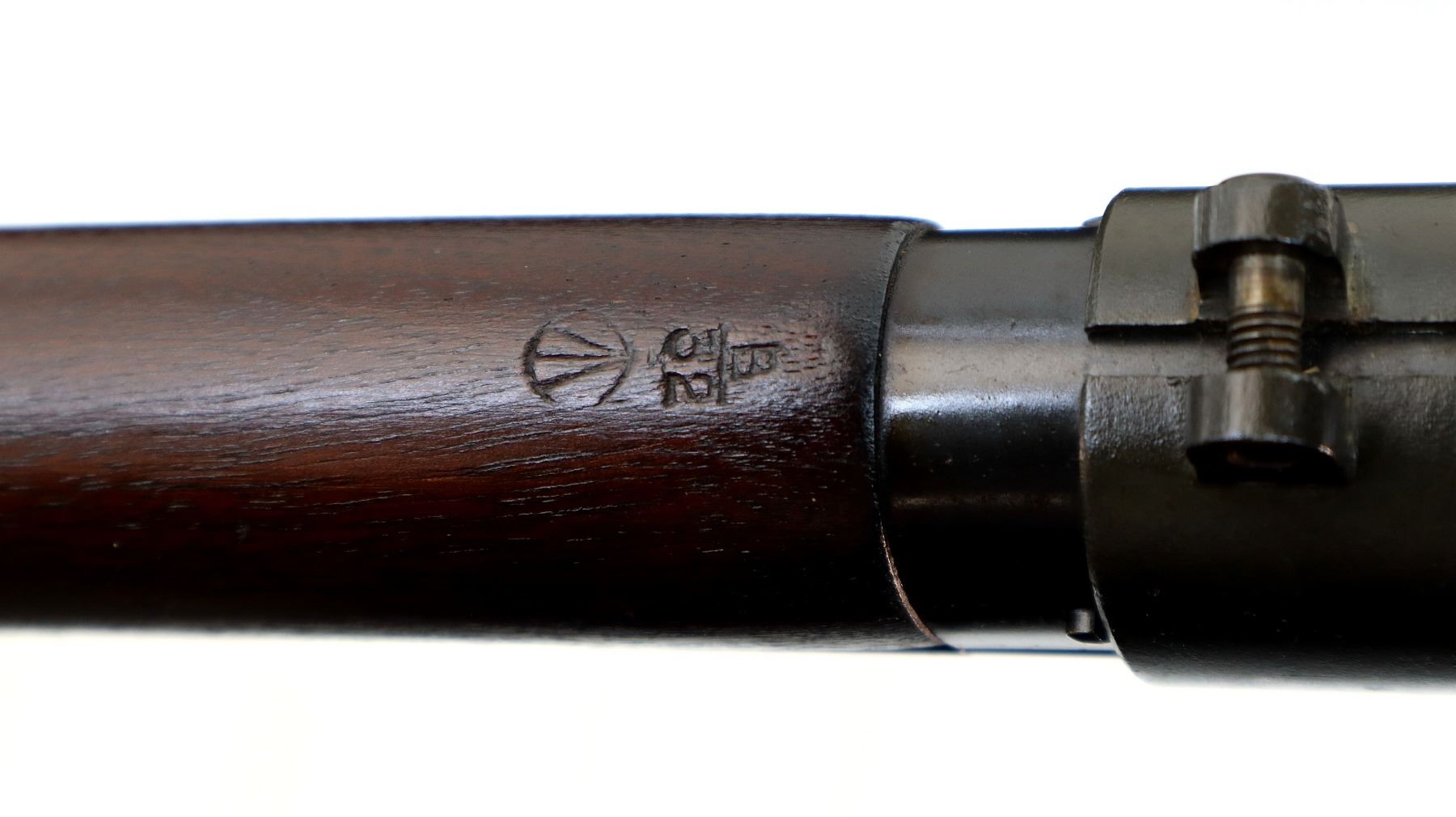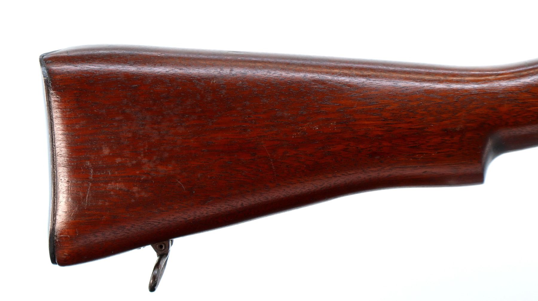 Main Description: Manufactured by Long Branch 1944, bolt matches. Blade front sight with ears and ramp, adjustable stamped MKIII rear peep sight, blued metal finish, receiver ring has double broad arrows in a C indicating sold from stores. Four piece full military wood stocks, pistol grip, smooth steel butt plate with trap, sling swivels, bayonet lugs.