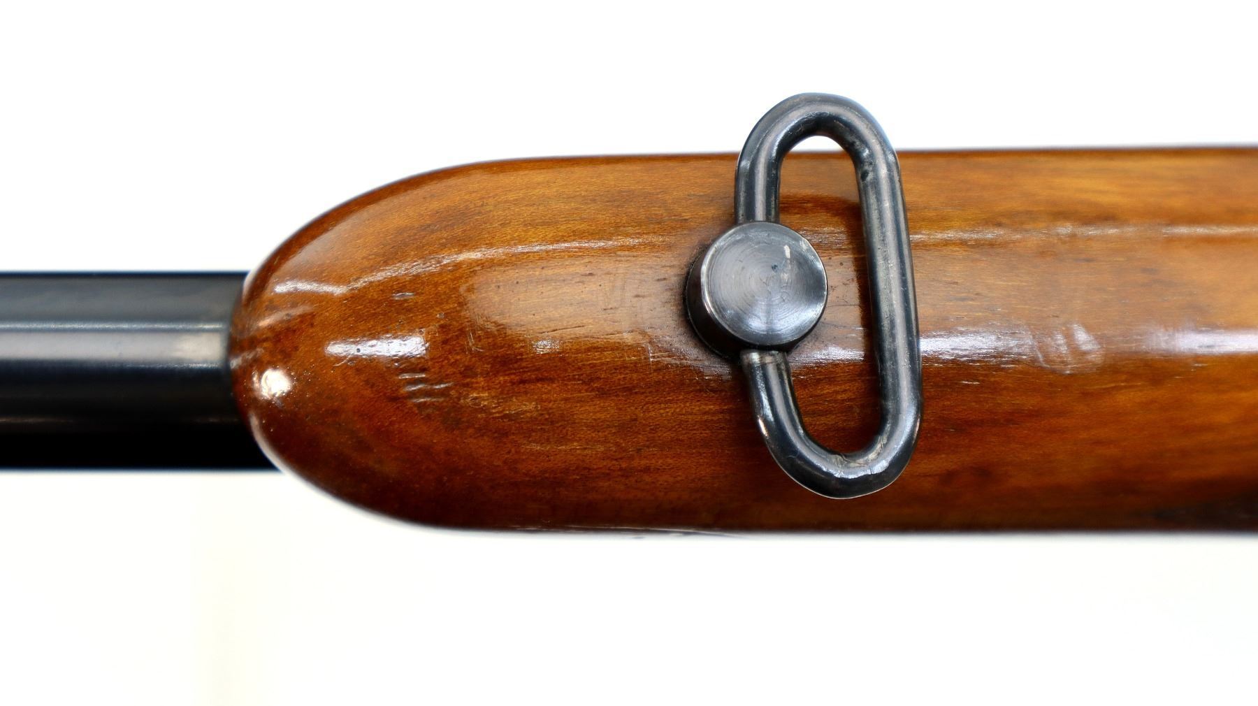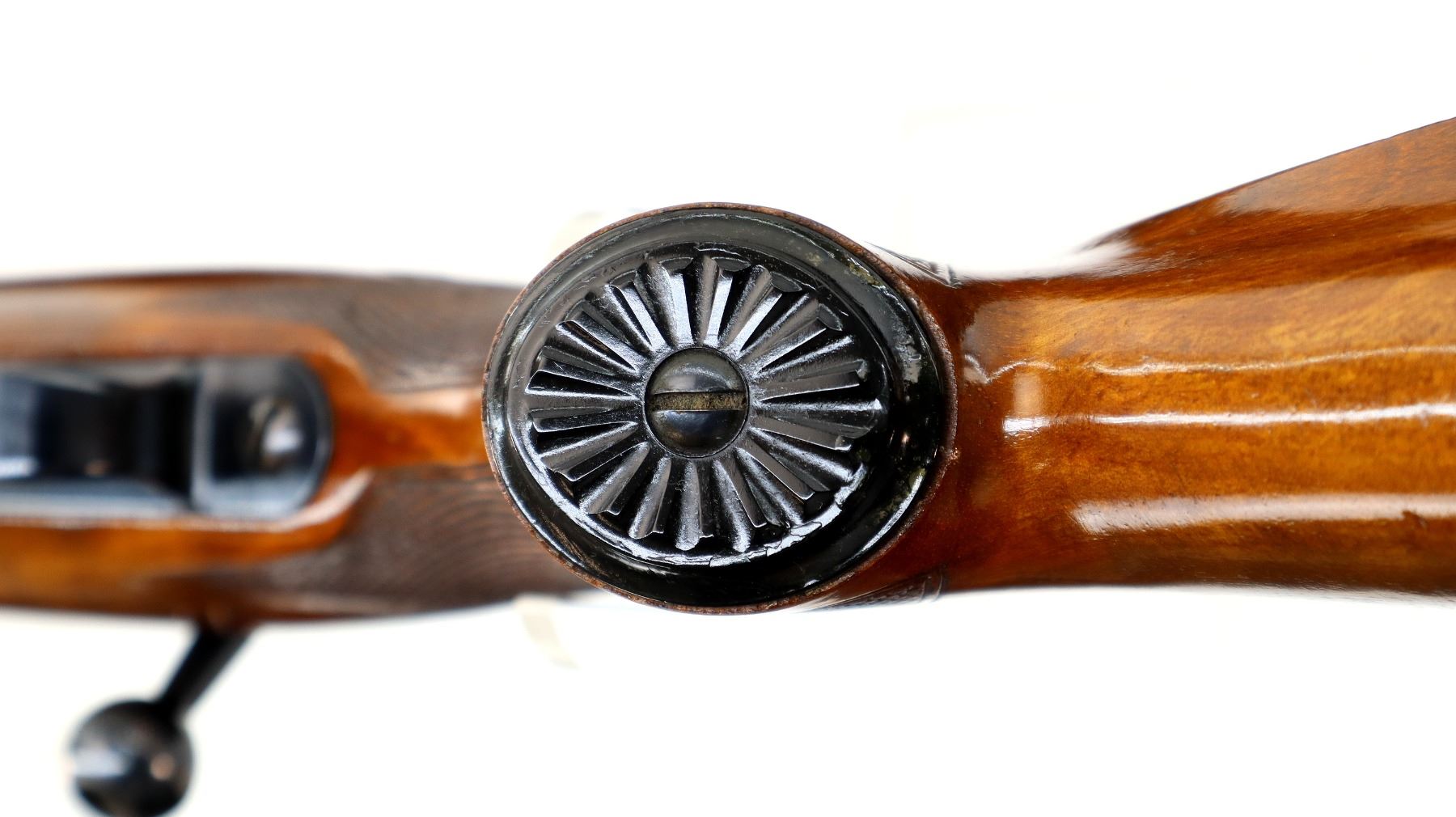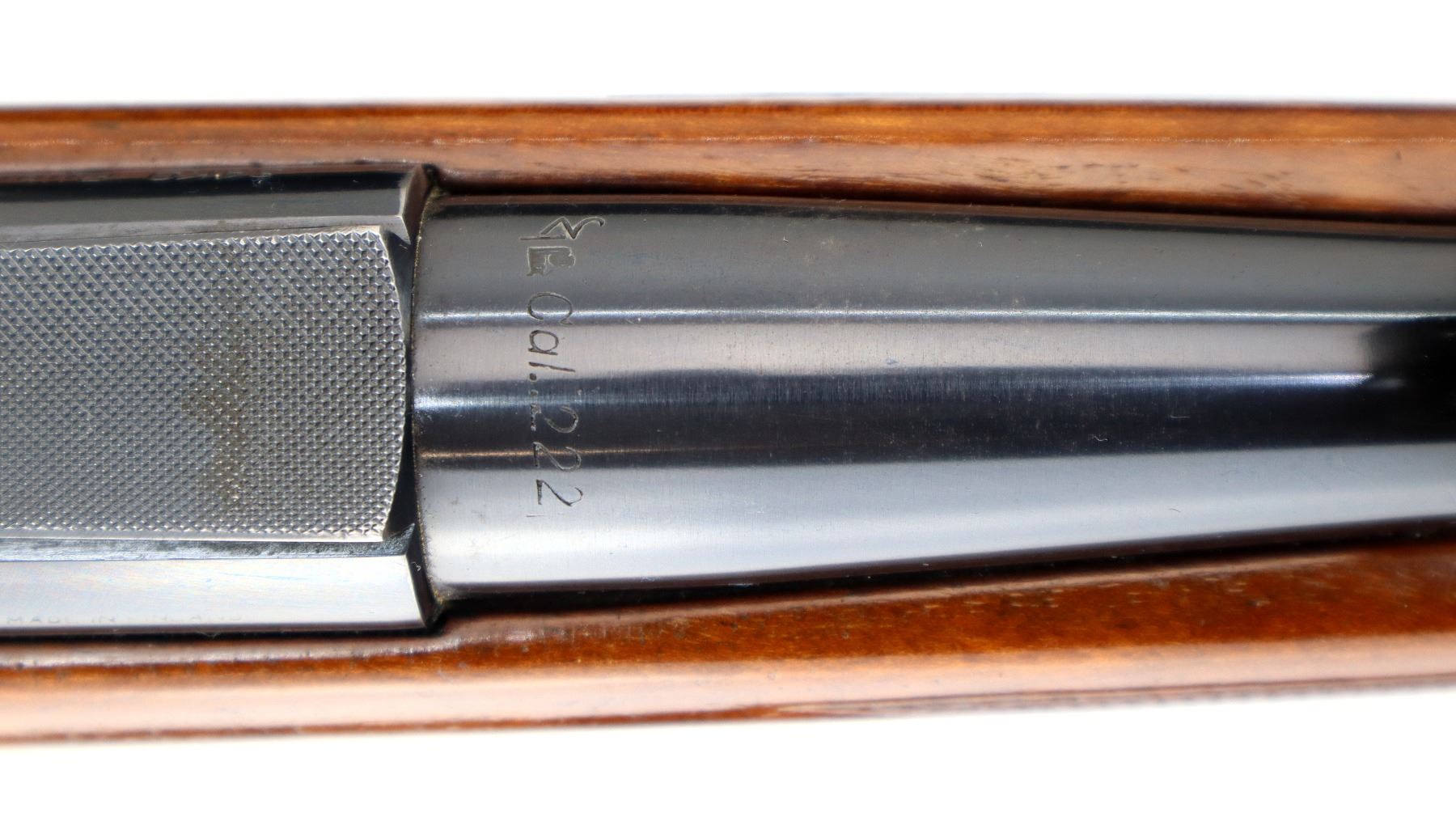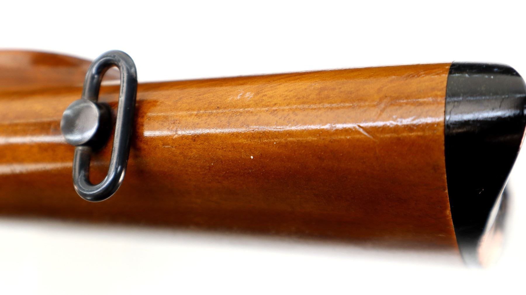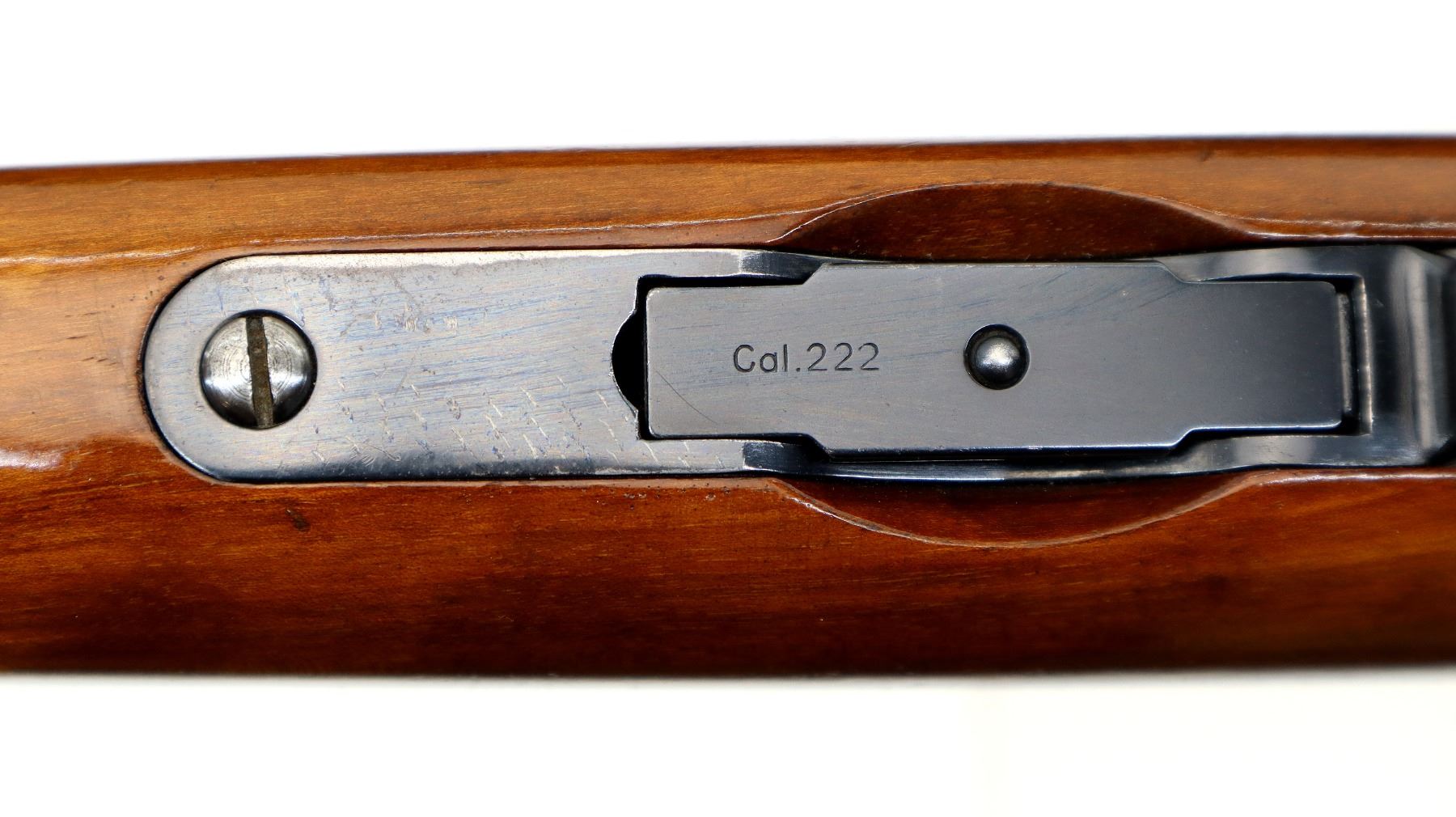 Main Description: Manufactured 1955. Blade front sight with hood and ramp, adjustable u notched rear sight, polish blued finish, receiver has integral scope bases, checkered bolt knob. One piece gloss finish wood stock, checkered forearm and pistol grip, European cheek rest, grooved black polymer butt plate, grip cap, sling swivels.