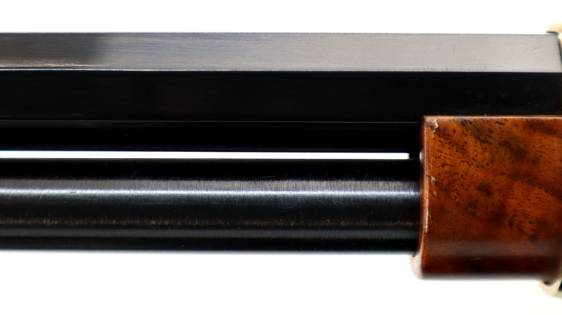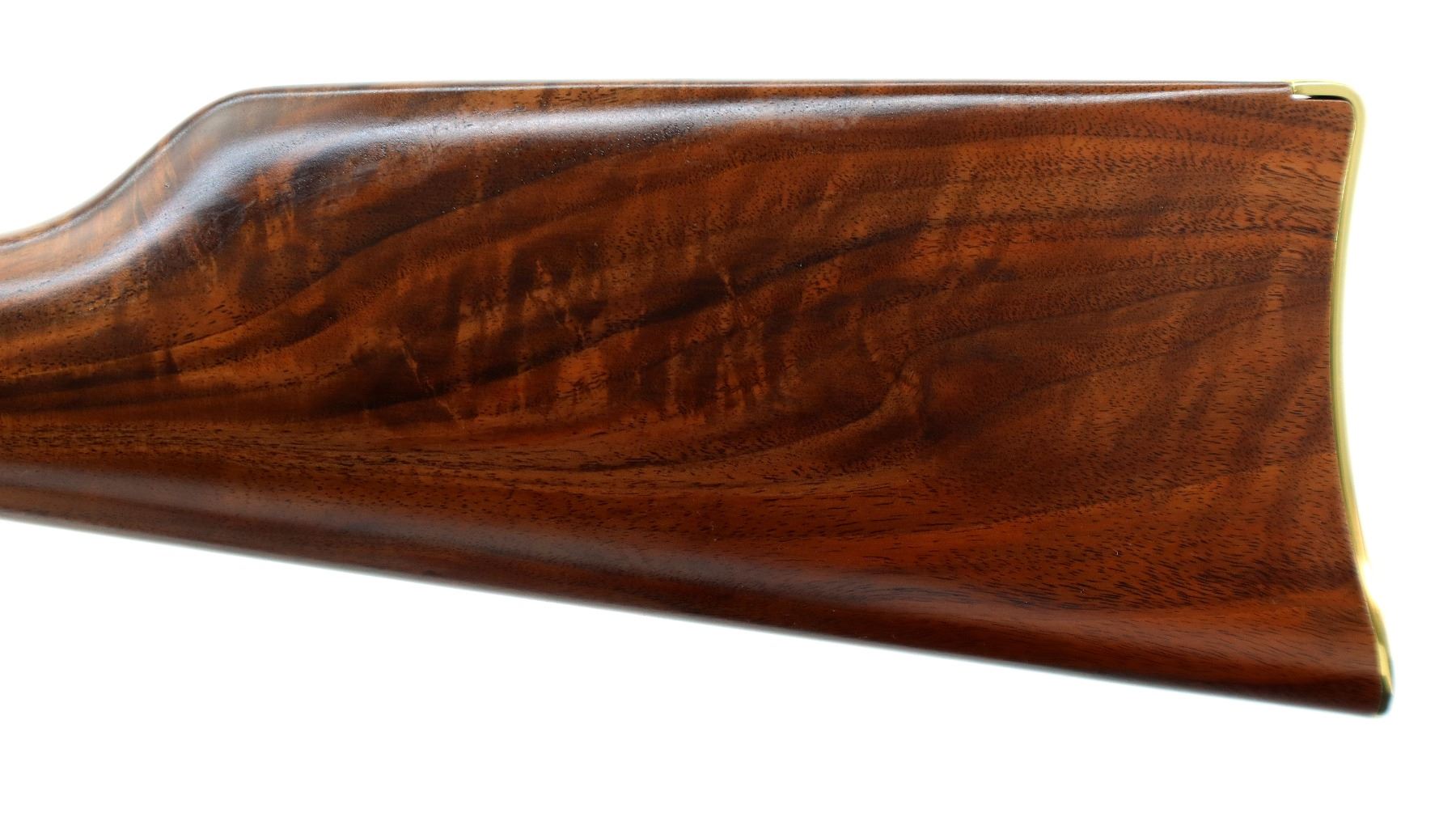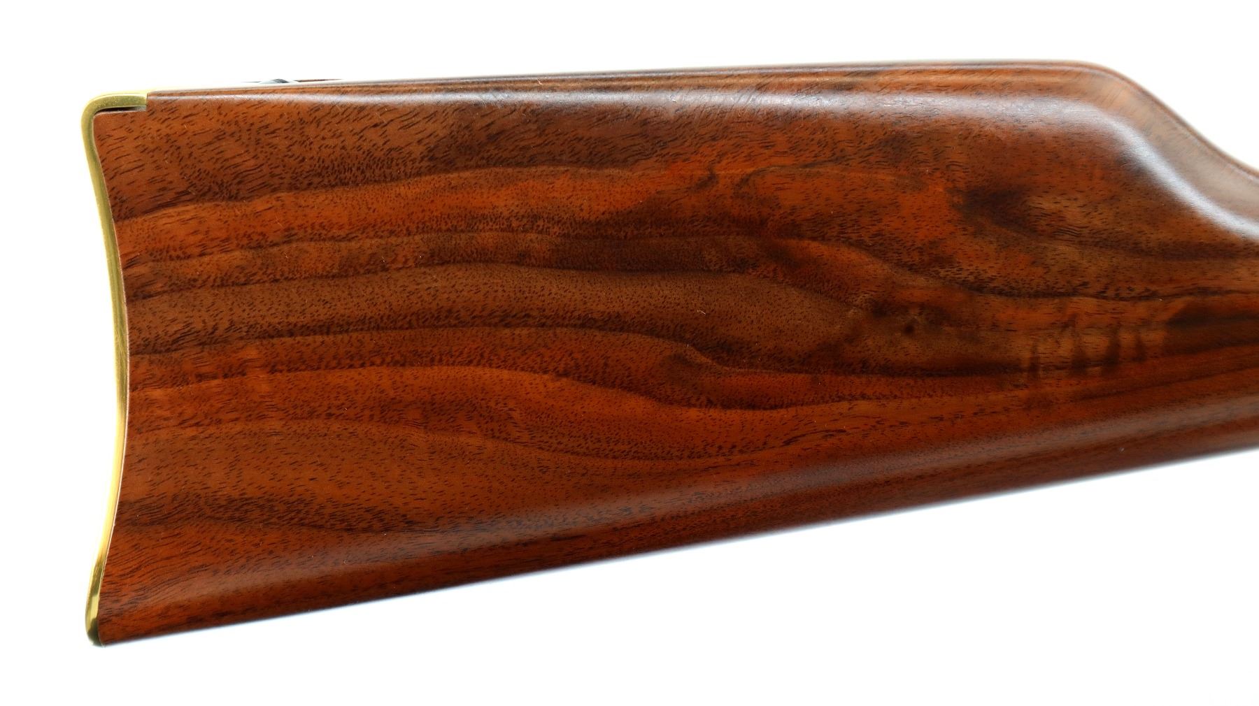 Main Description: Blade front sight, adjustable u notched semi buckhorn rear sight, polished blued octagon barrel, lever and full length magtube. Engraved gold receiver and barrel band, top is drilled and tapped with plug screws installed, grooved spur hammer, side loading gate. Two piece Satin finish wood stocks, smooth curved steel butt plate, retains factory hang tags.