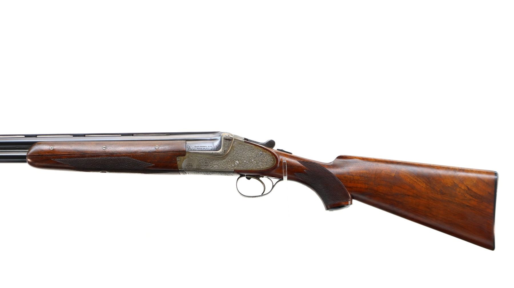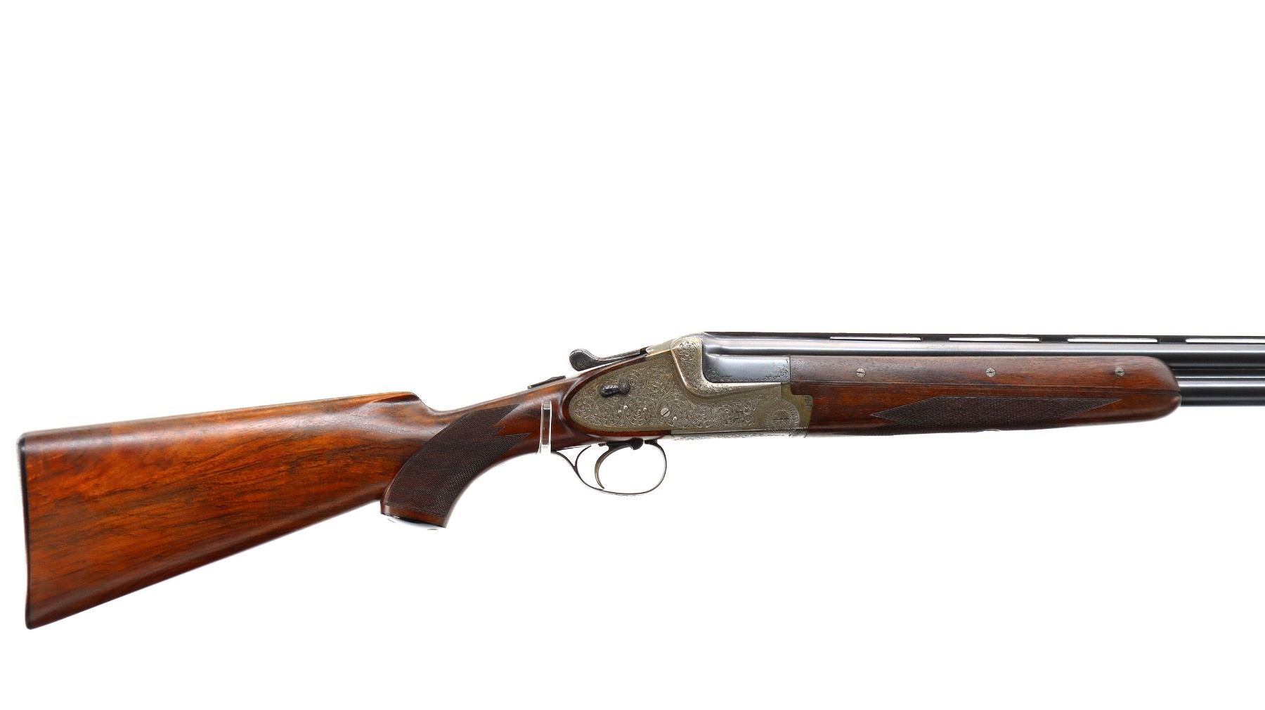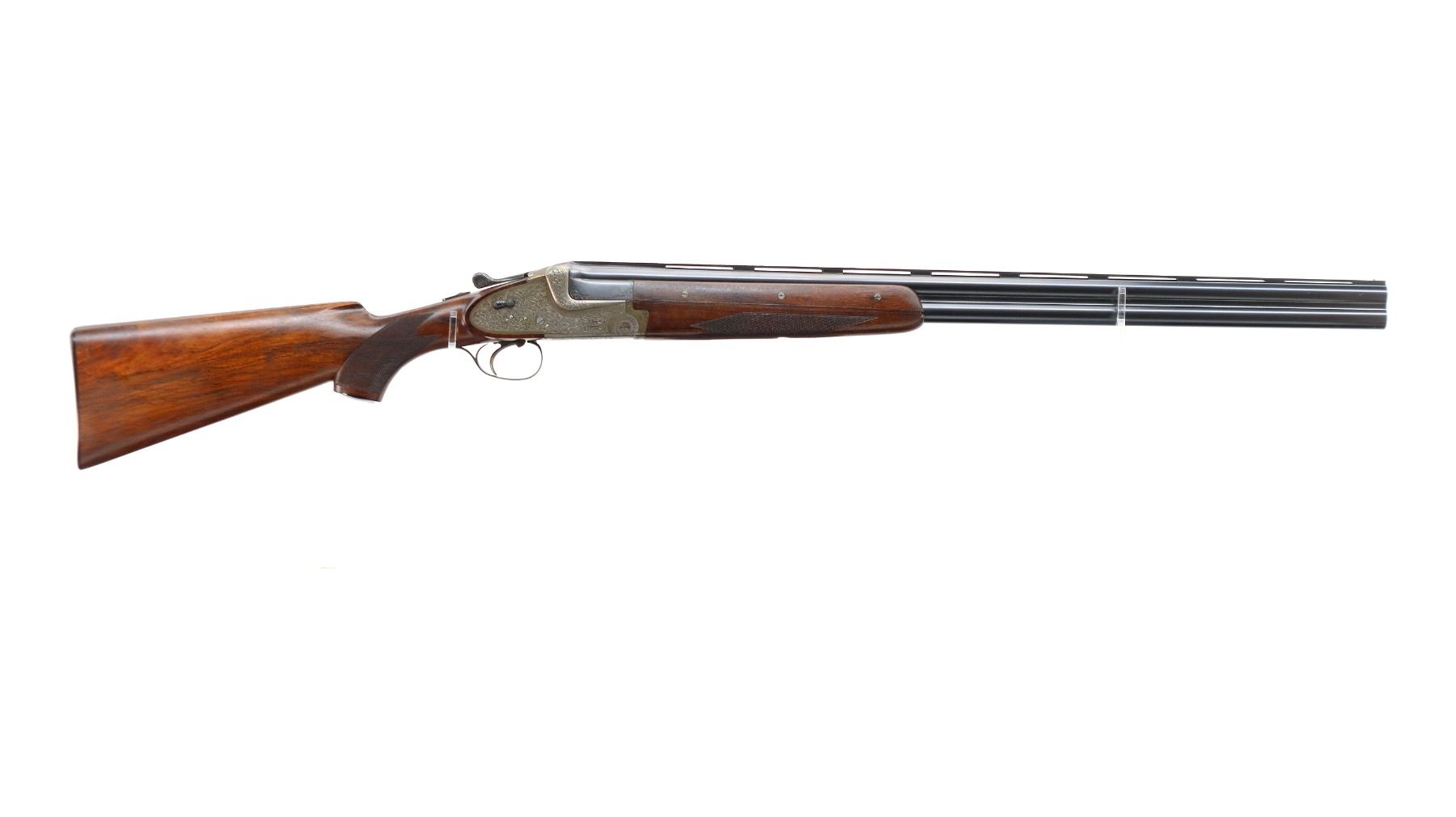 Main Description: Discontinued 1997. White front bead, polish blued barrels with vent rib, border engraving at rear, elaborate scroll engraving silver receiver with side locks and cocking indicators, manual safety, ejectors, single inertia trigger with blued checkered barrel selector. Four piece Satin finish wood stocks, checkered forearm and pistol grip, checkered black polymer butt plate, grip cap.