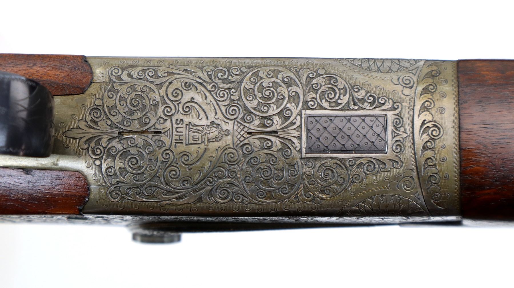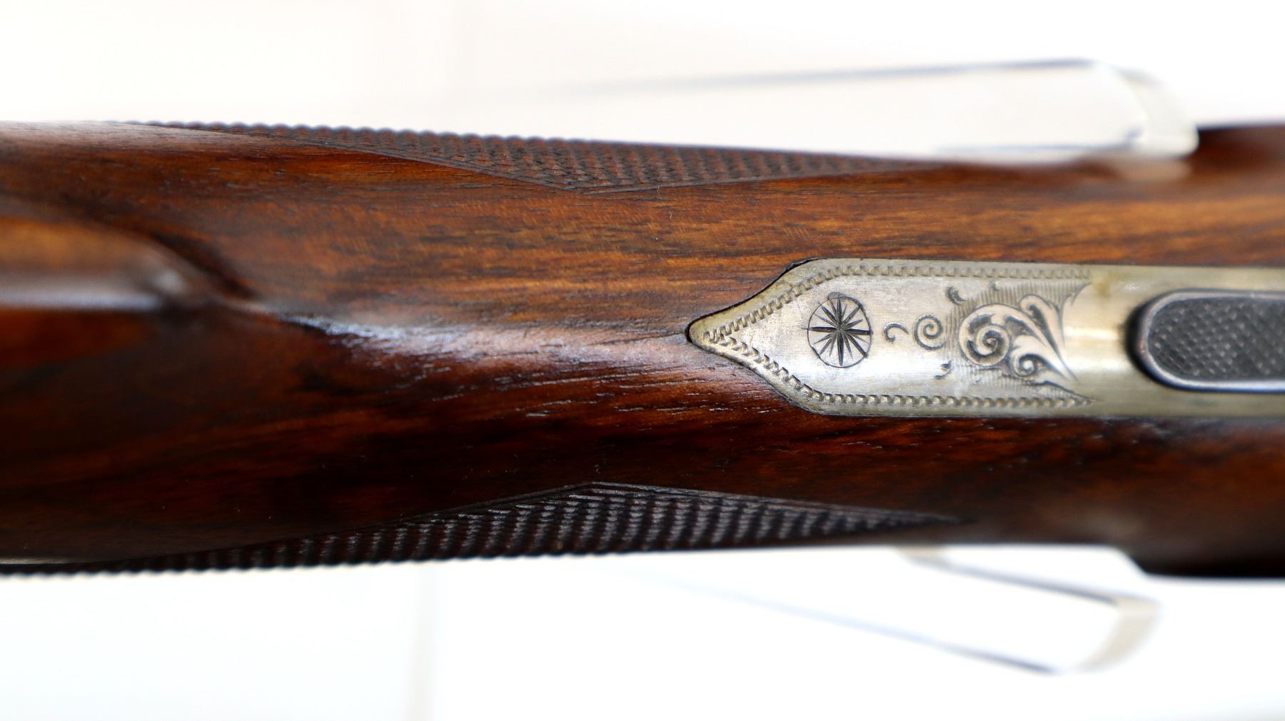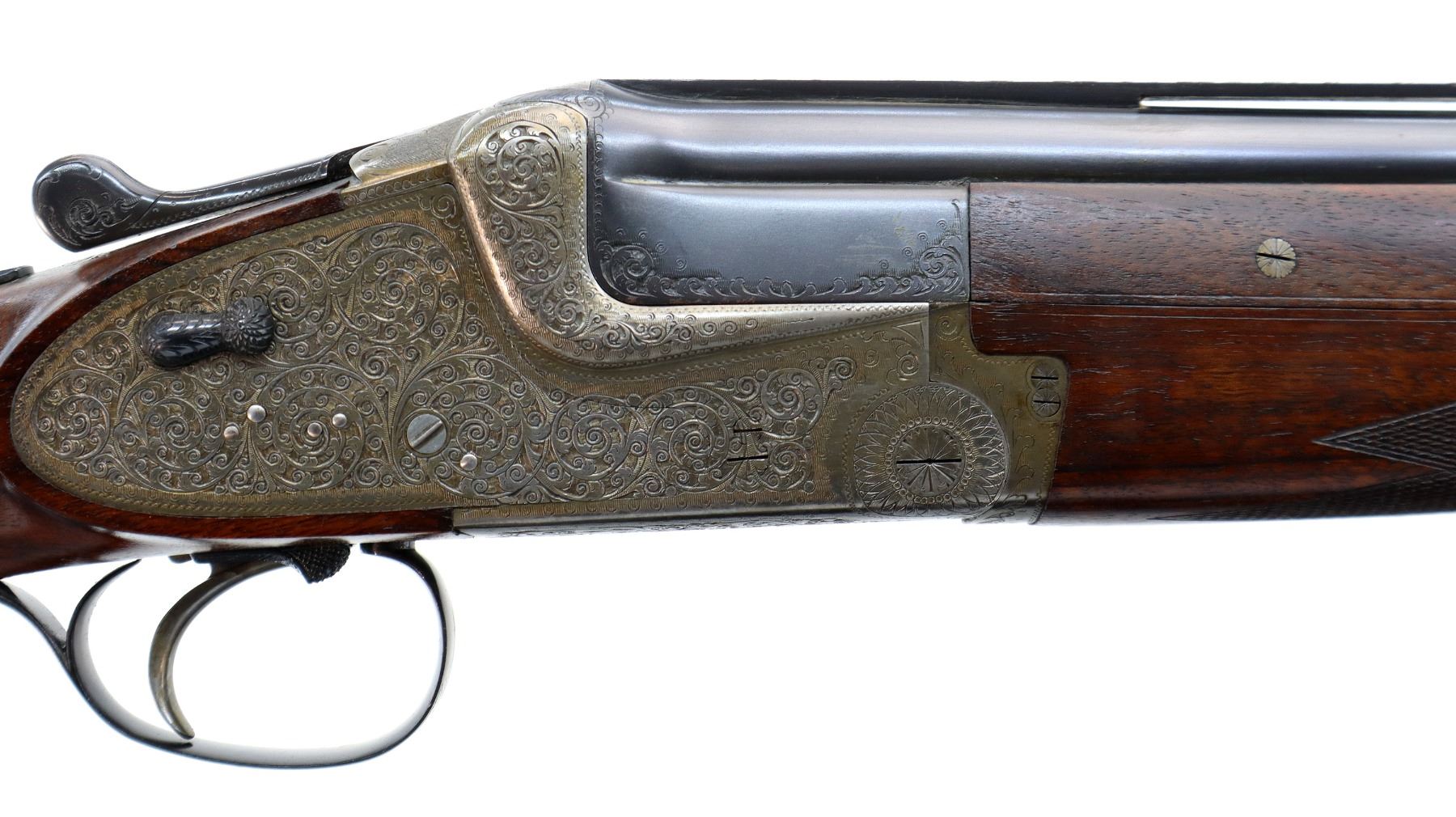 Main Description: Discontinued 1997. White front bead, polish blued barrels with vent rib, border engraving at rear, elaborate scroll engraving silver receiver with side locks and cocking indicators, manual safety, ejectors, single inertia trigger with blued checkered barrel selector. Four piece Satin finish wood stocks, checkered forearm and pistol grip, checkered black polymer butt plate, grip cap.