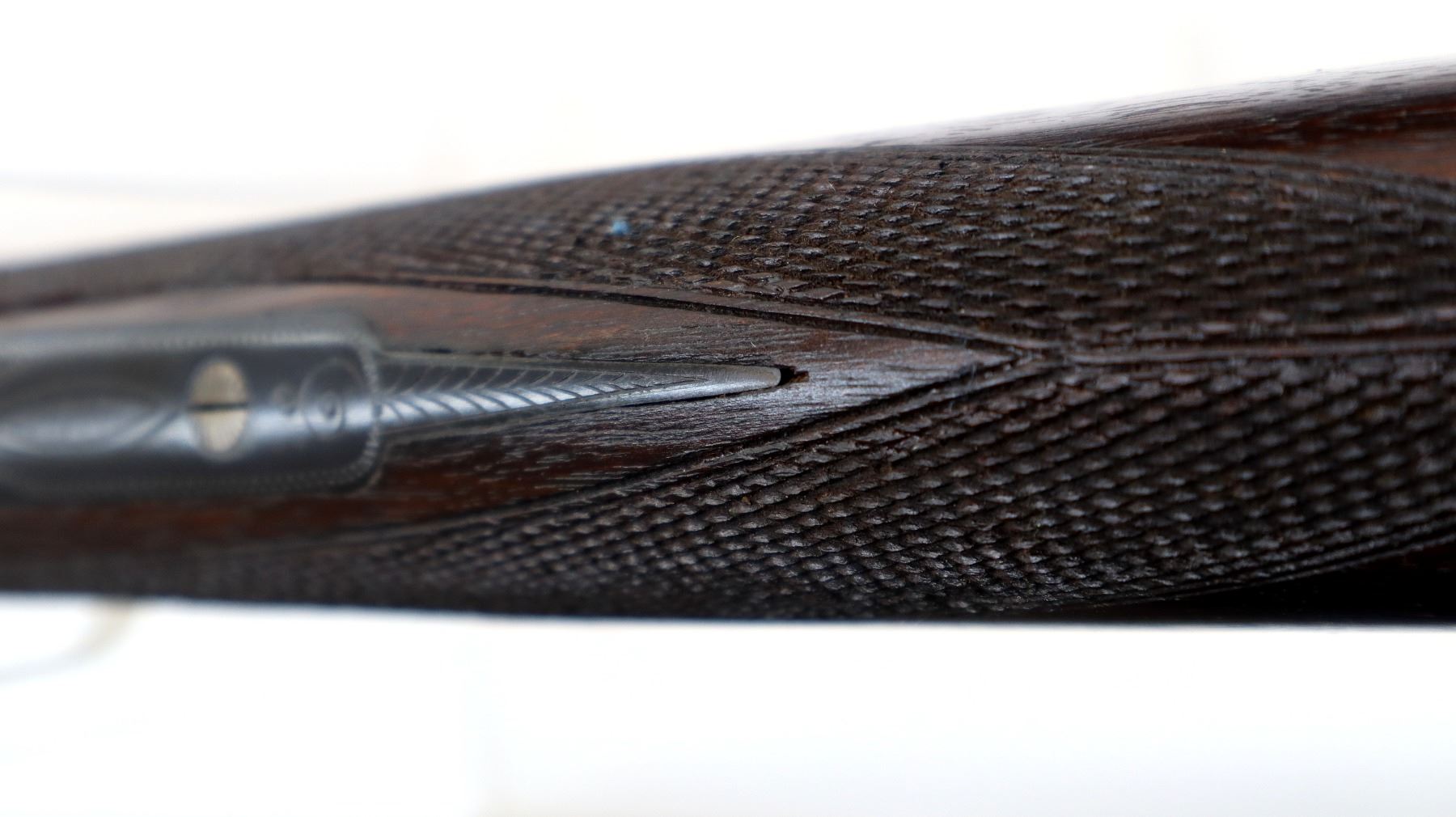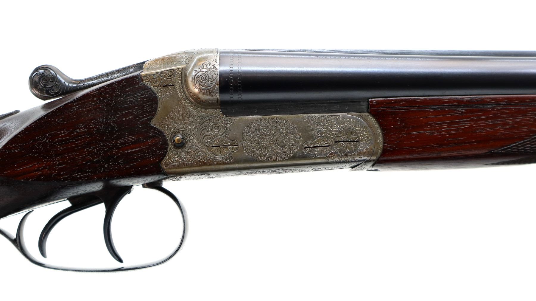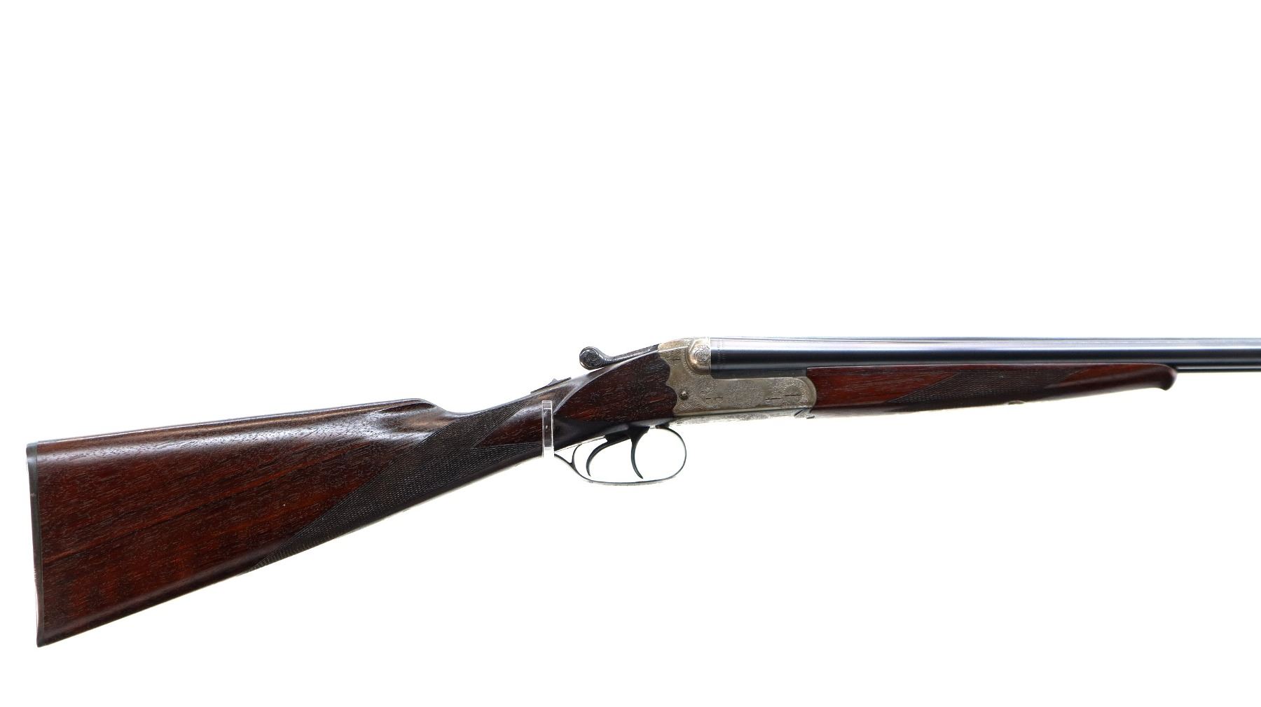 Main Description: Discontinued 1990's White front bead, polish blued barrels with solid rib, engraved silver receiver, automatic safety, ejectors, cocking indicators, double triggers. Two piece Satin finish wood stocks, checkered forearm, straight grip, black polymer butt plate