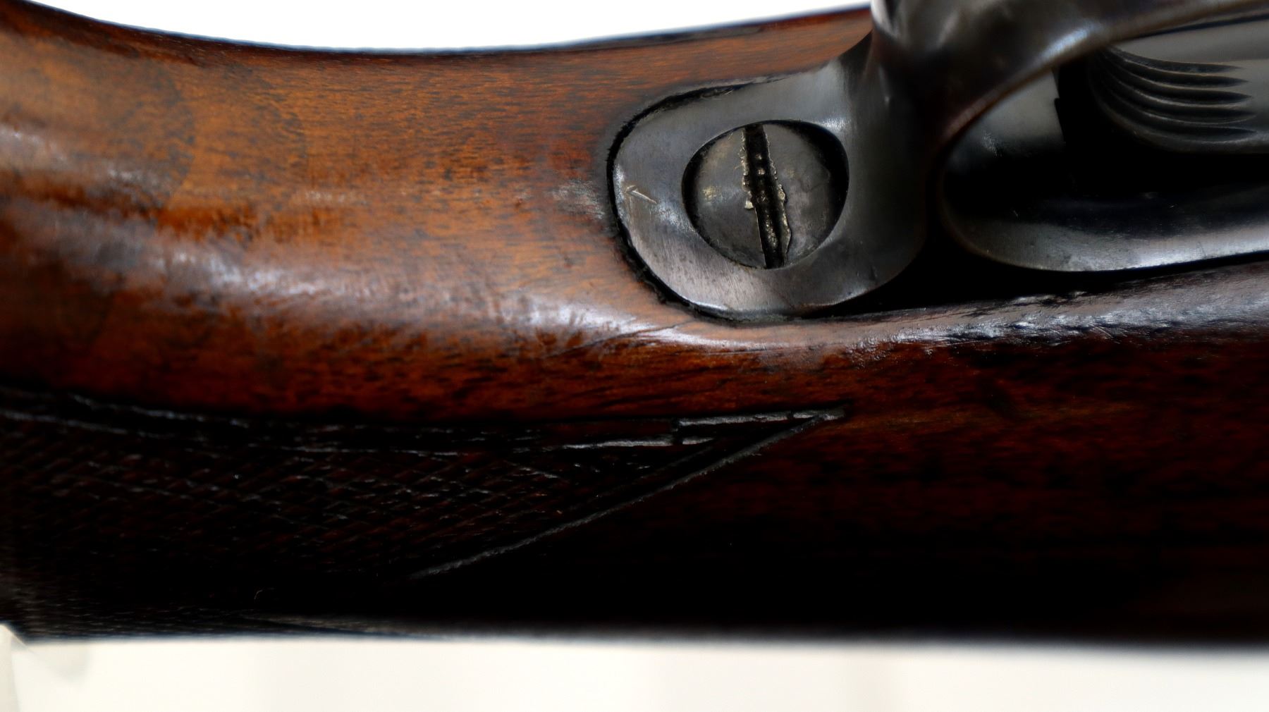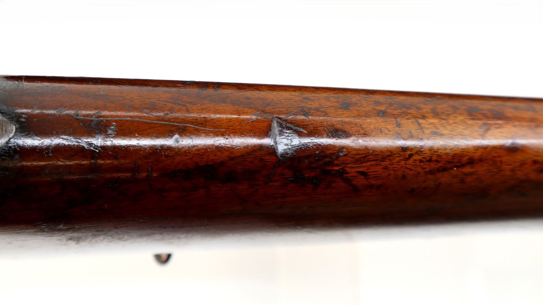Wear: Metal finish shows some light rust speckles, scratches, handling marks and wear. Stock shows marks, scratches and wear.