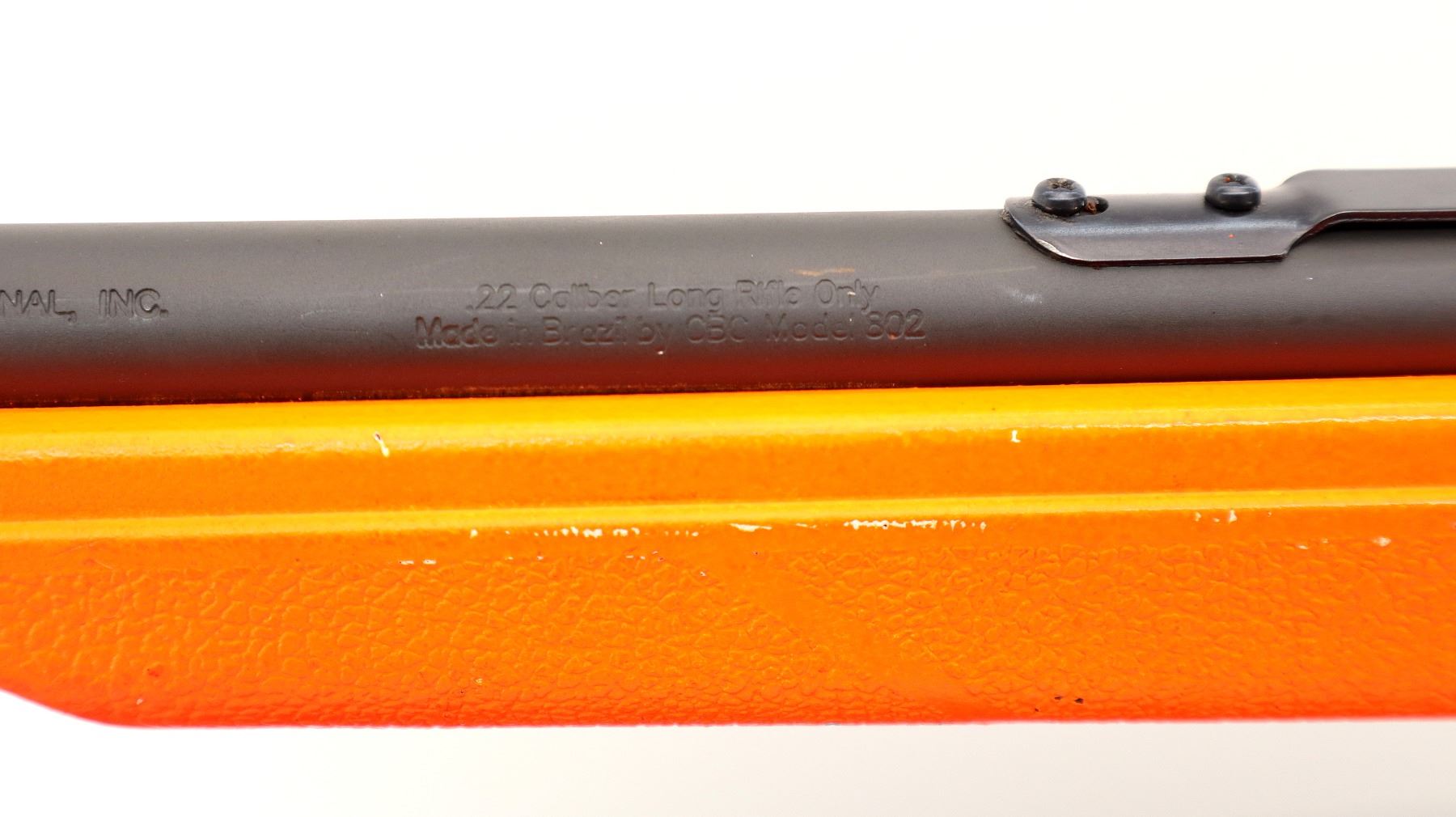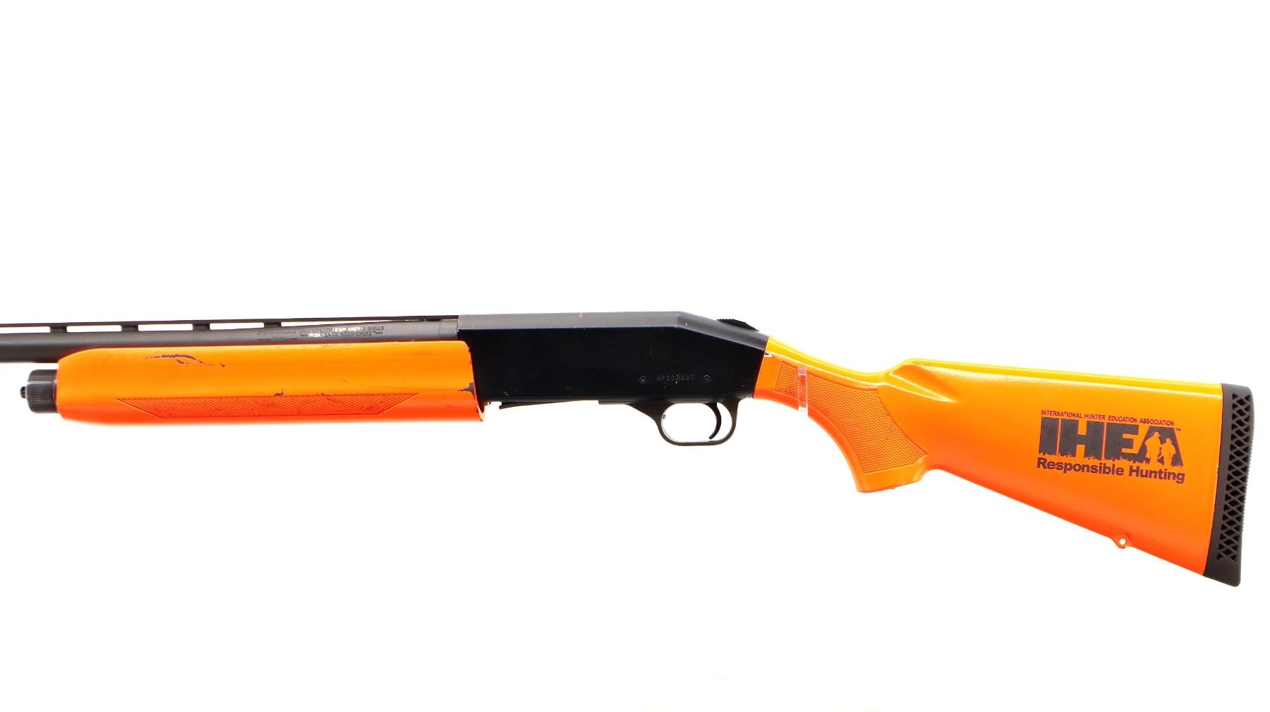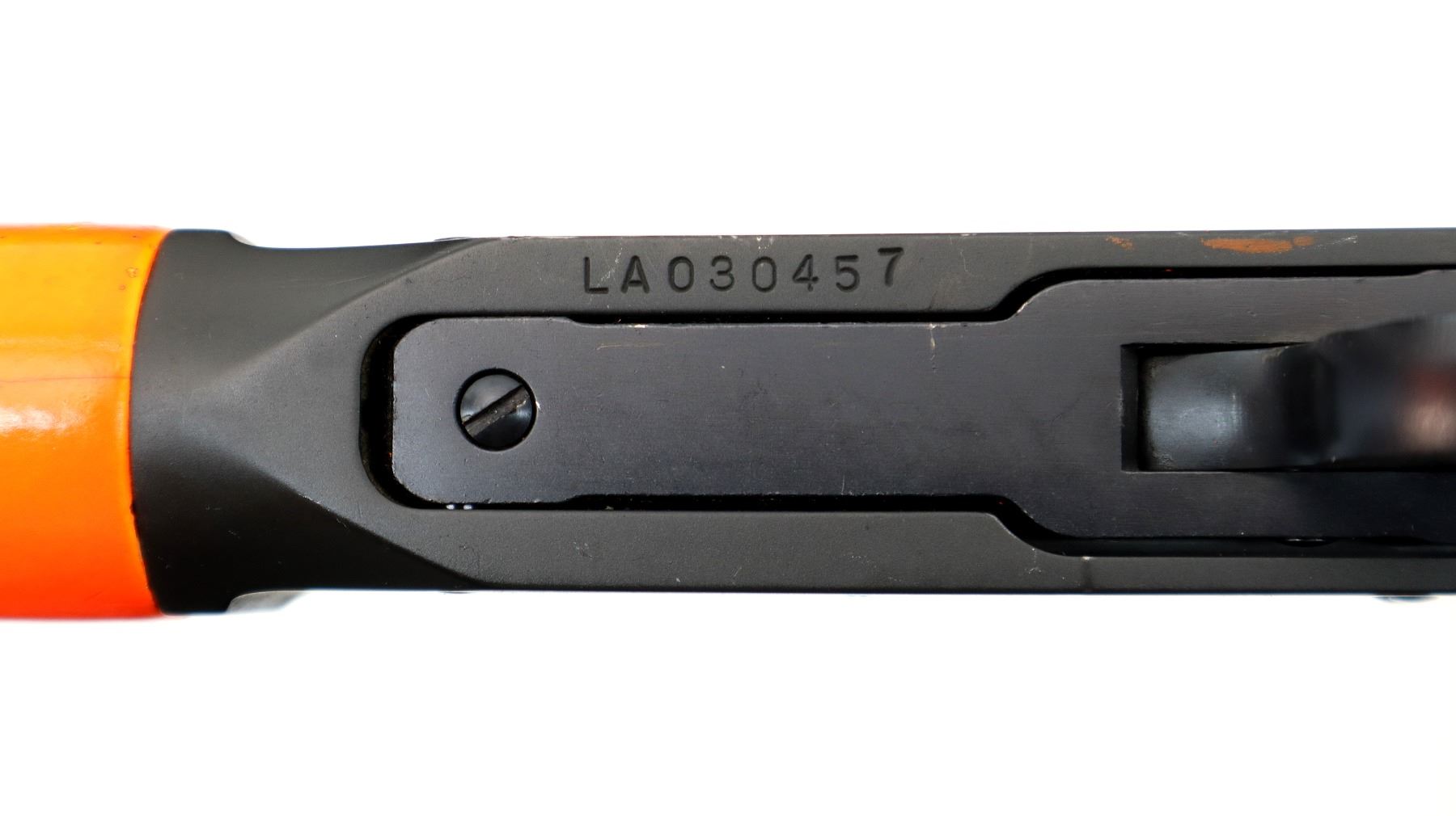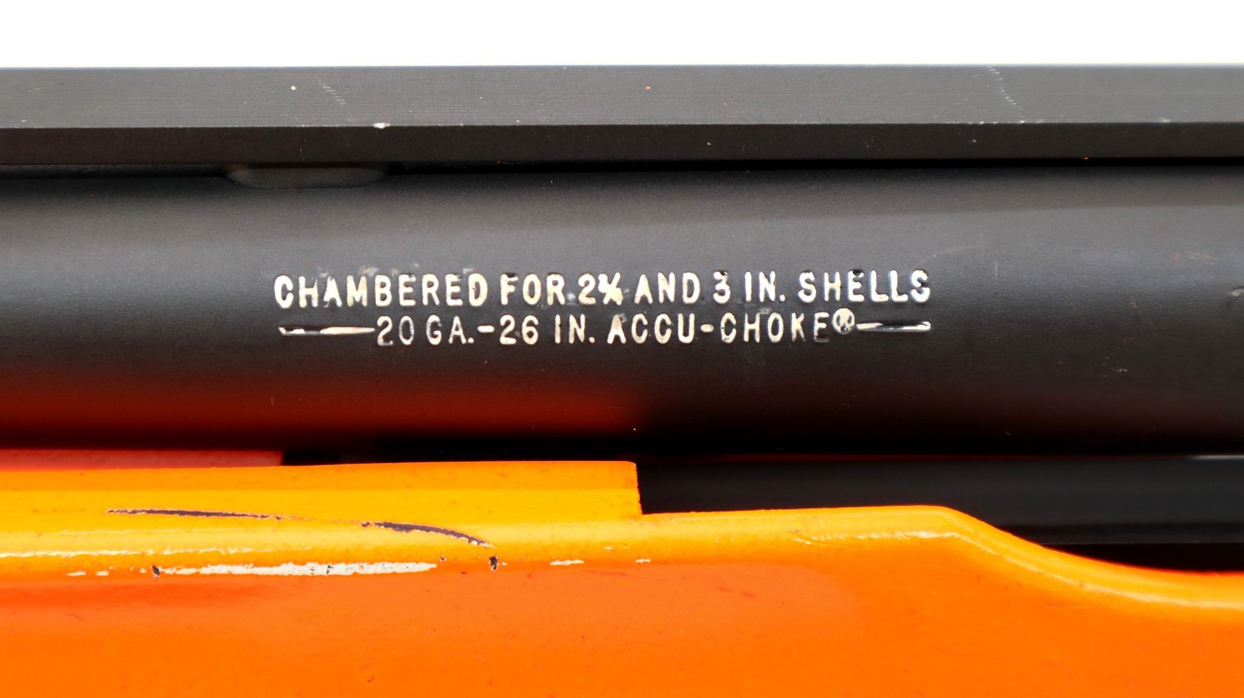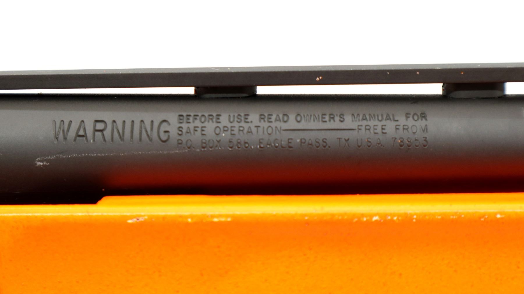 Main Description: This lot includes five non-firing firearms. All have Parkerized/Black painted metal finish and hunter-orange synthetic stocks. Model: 500, Cal: 12 G X 3", Serial: TR12093100, Action: Over Under, Barrel: 28", has Removable Full and IM Chokes. Has brass bead, solid rib, alloy receiver, manual safety, extractor, single mechanical trigger, checkered forearm and pistol grip, black rubber recoil pad. Model: 930, CAL: 12 G X 3", Serial: AF103337, Action: Semi Automatic Shotgun, Barrel: 24", Excellent Bore, Removable Mod Choke Installed, has broken bead, vent rib, alloy receiver drilled and tapped with plug screws installed, tang safety, checkered forearm and pistol grip, black vented rubber recoil pad, grip cap, swivel studs.Model: 500, CAL: 20 G X 3", Serial: U342319, Action: Pump Action Shotgun, Barrel: 26", Excellent Bore, Removable Mod Choke, has white front and brass mid rib beads, vent rib, alloy receiver drilled and tapped with plug screws installed, tang safety, textured forearm and pistol grip panels, black vented rubber recoil pad, rear swivel stud only. Model: 464, CAL: .30-30 WIN, Serial: LA030457, Action: Lever Action Rifle, Barrel: 20.5", Good Bore, Blade front sight, rear sight missing leaf has the base, receiver drilled and tapped with plug screws installed, grooved spur hammer, tang safety, straight grip, grooved brown rubber recoil pad, full length magtube. Model: 802, CAL: .22 LR, Serial: HLL3562841, Action: Bolt Action Rifle, 18", Magazine, Good Bore, Blade front sight with hood and ramp, adjustable u notched rear sight, grooved receiver, checkered bolt knob, textured forearm and thumb hole pistol grip, grooved black polymer butt plate, grip cap, short rail at forend tip. Note: Items are described in order they appear from top to bottom in the picture.