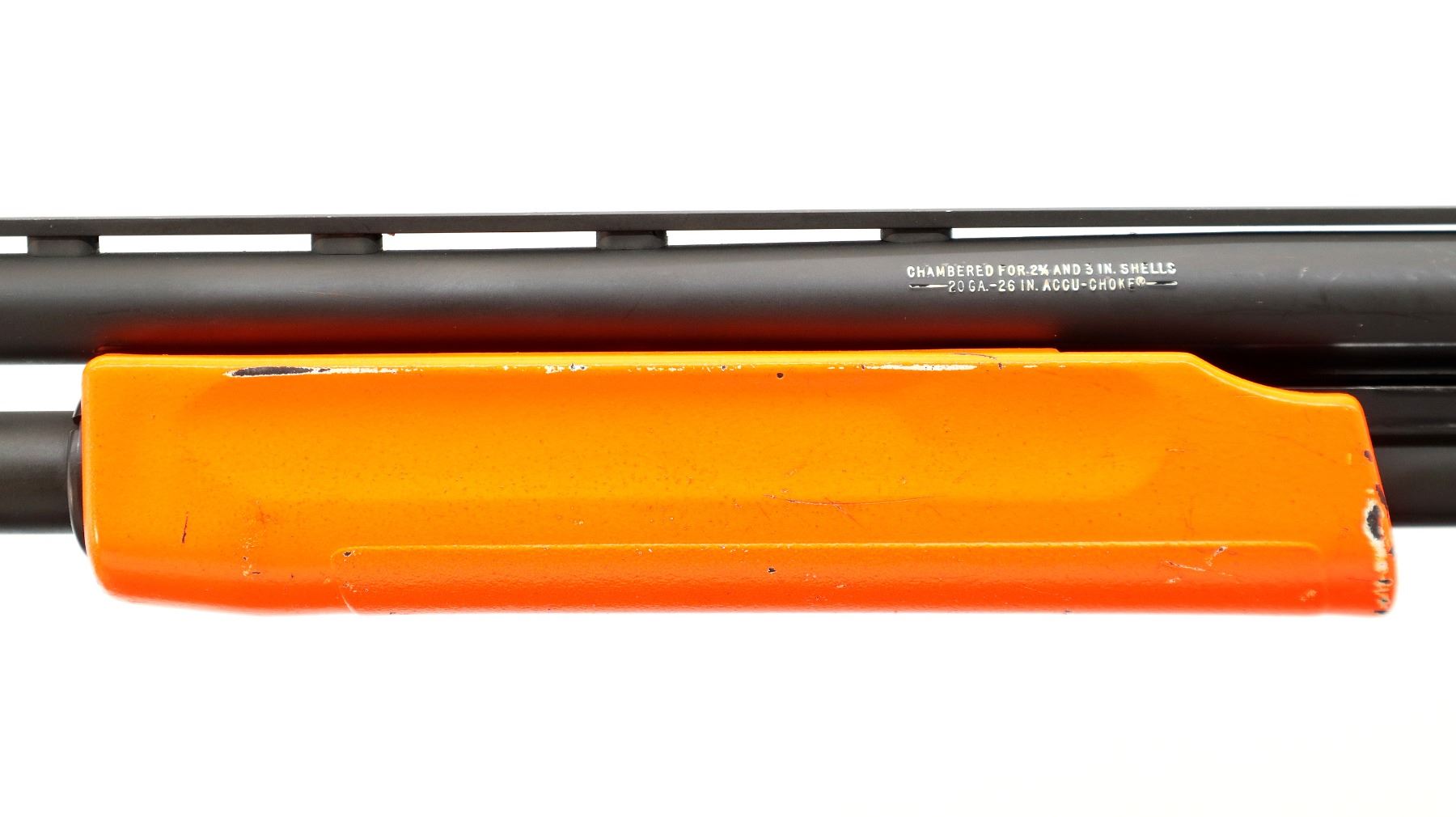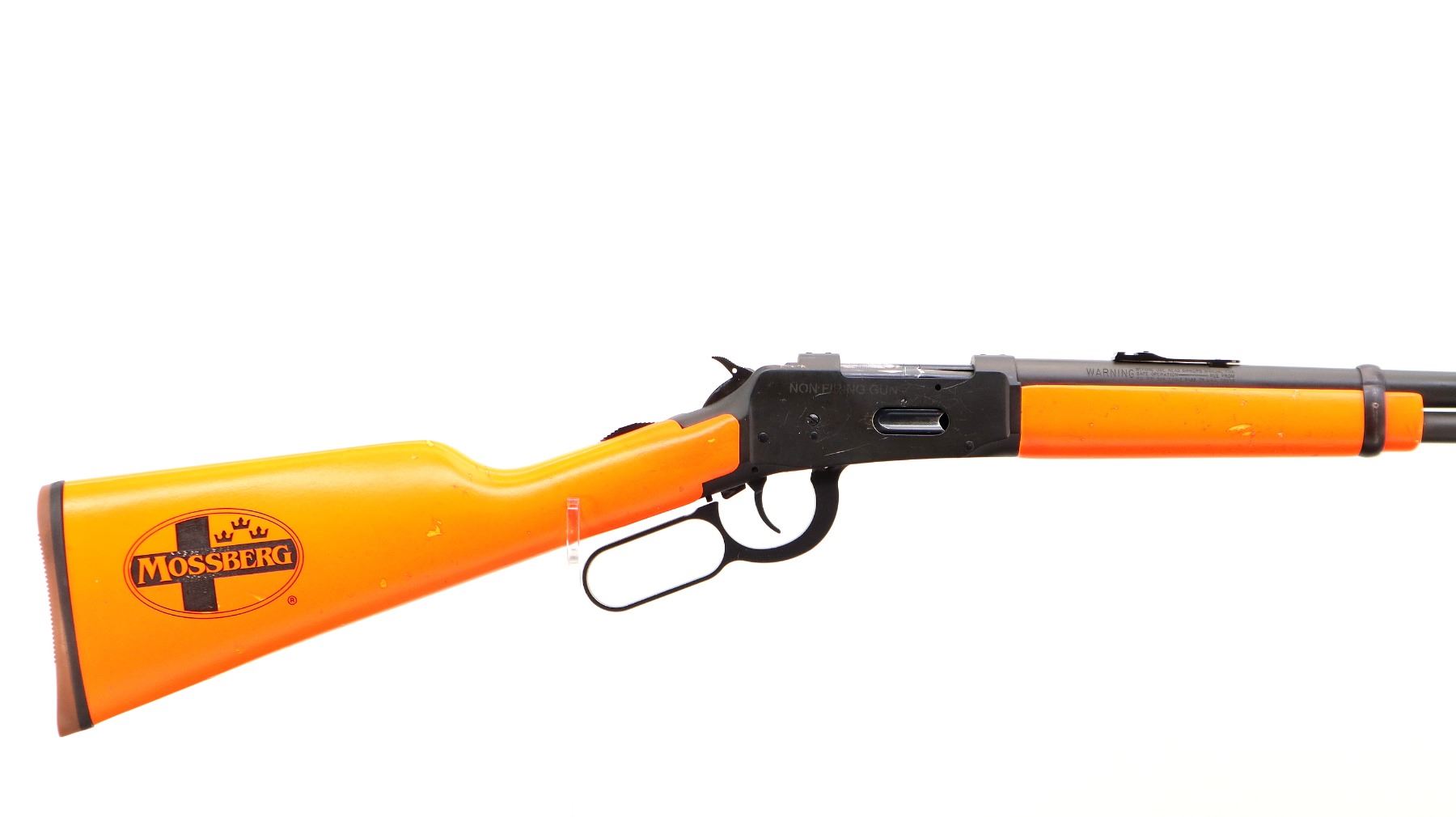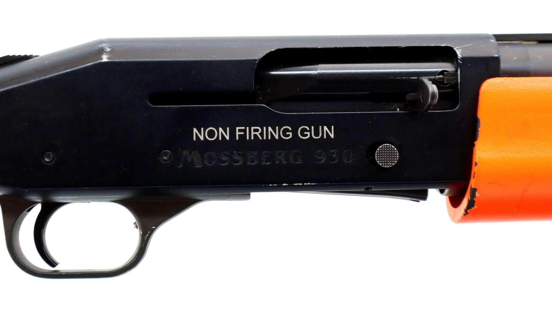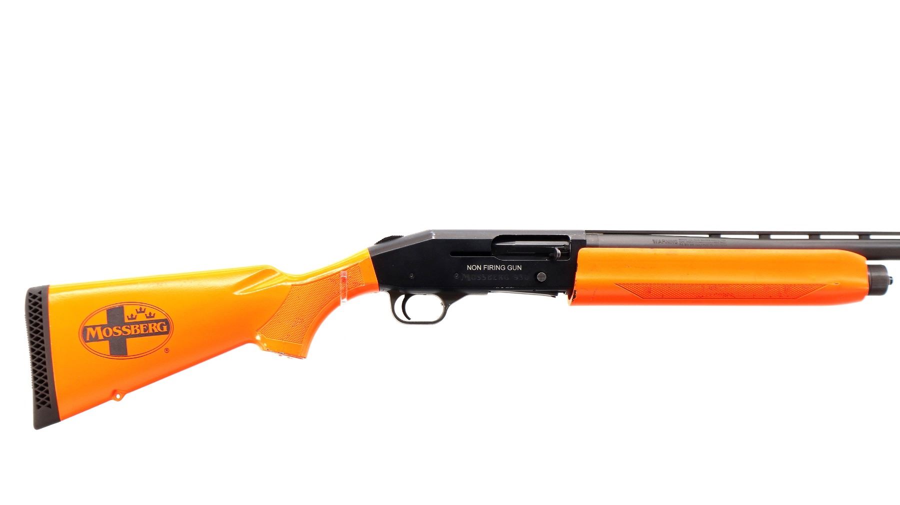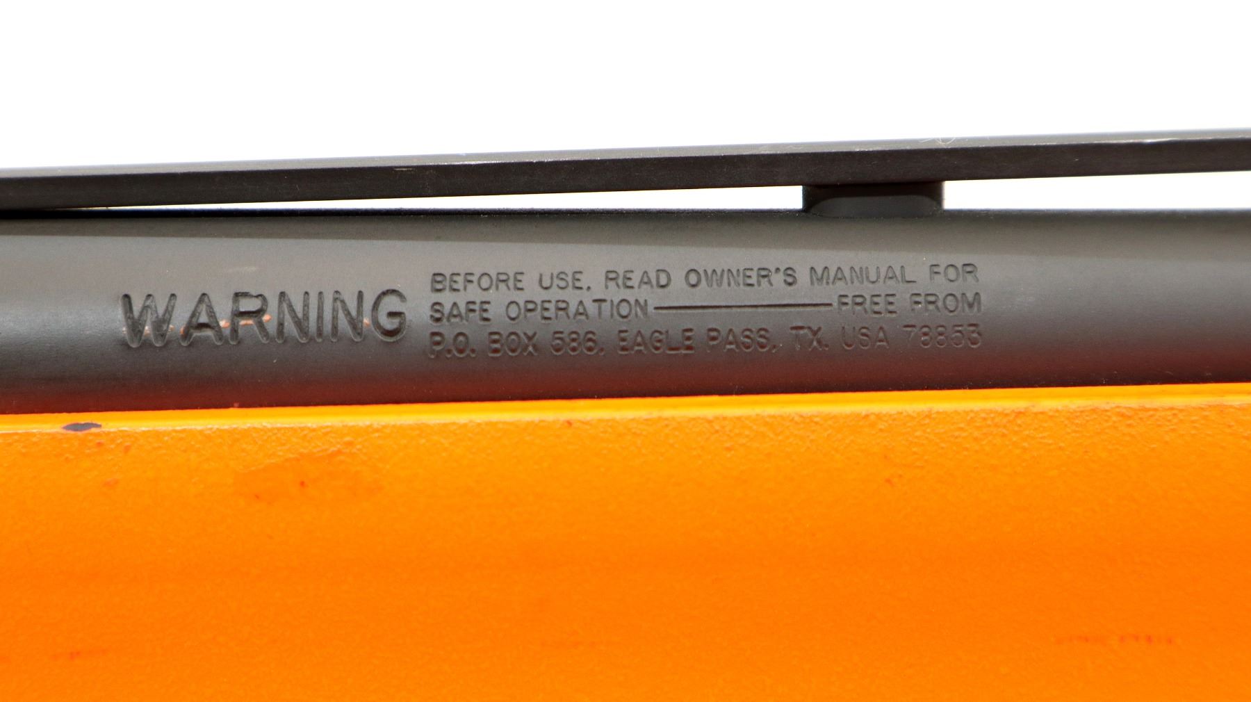 Main Description: This lot includes five non-firing firearms. All have Parkerized/Black painted metal finish and hunter-orange synthetic stocks. Model: 500, Cal: 12 G X 3", Serial: TR12093100, Action: Over Under, Barrel: 28", has Removable Full and IM Chokes. Has brass bead, solid rib, alloy receiver, manual safety, extractor, single mechanical trigger, checkered forearm and pistol grip, black rubber recoil pad. Model: 930, CAL: 12 G X 3", Serial: AF103337, Action: Semi Automatic Shotgun, Barrel: 24", Excellent Bore, Removable Mod Choke Installed, has broken bead, vent rib, alloy receiver drilled and tapped with plug screws installed, tang safety, checkered forearm and pistol grip, black vented rubber recoil pad, grip cap, swivel studs.Model: 500, CAL: 20 G X 3", Serial: U342319, Action: Pump Action Shotgun, Barrel: 26", Excellent Bore, Removable Mod Choke, has white front and brass mid rib beads, vent rib, alloy receiver drilled and tapped with plug screws installed, tang safety, textured forearm and pistol grip panels, black vented rubber recoil pad, rear swivel stud only. Model: 464, CAL: .30-30 WIN, Serial: LA030457, Action: Lever Action Rifle, Barrel: 20.5", Good Bore, Blade front sight, rear sight missing leaf has the base, receiver drilled and tapped with plug screws installed, grooved spur hammer, tang safety, straight grip, grooved brown rubber recoil pad, full length magtube. Model: 802, CAL: .22 LR, Serial: HLL3562841, Action: Bolt Action Rifle, 18", Magazine, Good Bore, Blade front sight with hood and ramp, adjustable u notched rear sight, grooved receiver, checkered bolt knob, textured forearm and thumb hole pistol grip, grooved black polymer butt plate, grip cap, short rail at forend tip. Note: Items are described in order they appear from top to bottom in the picture.