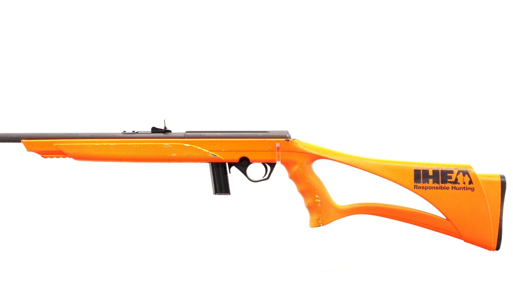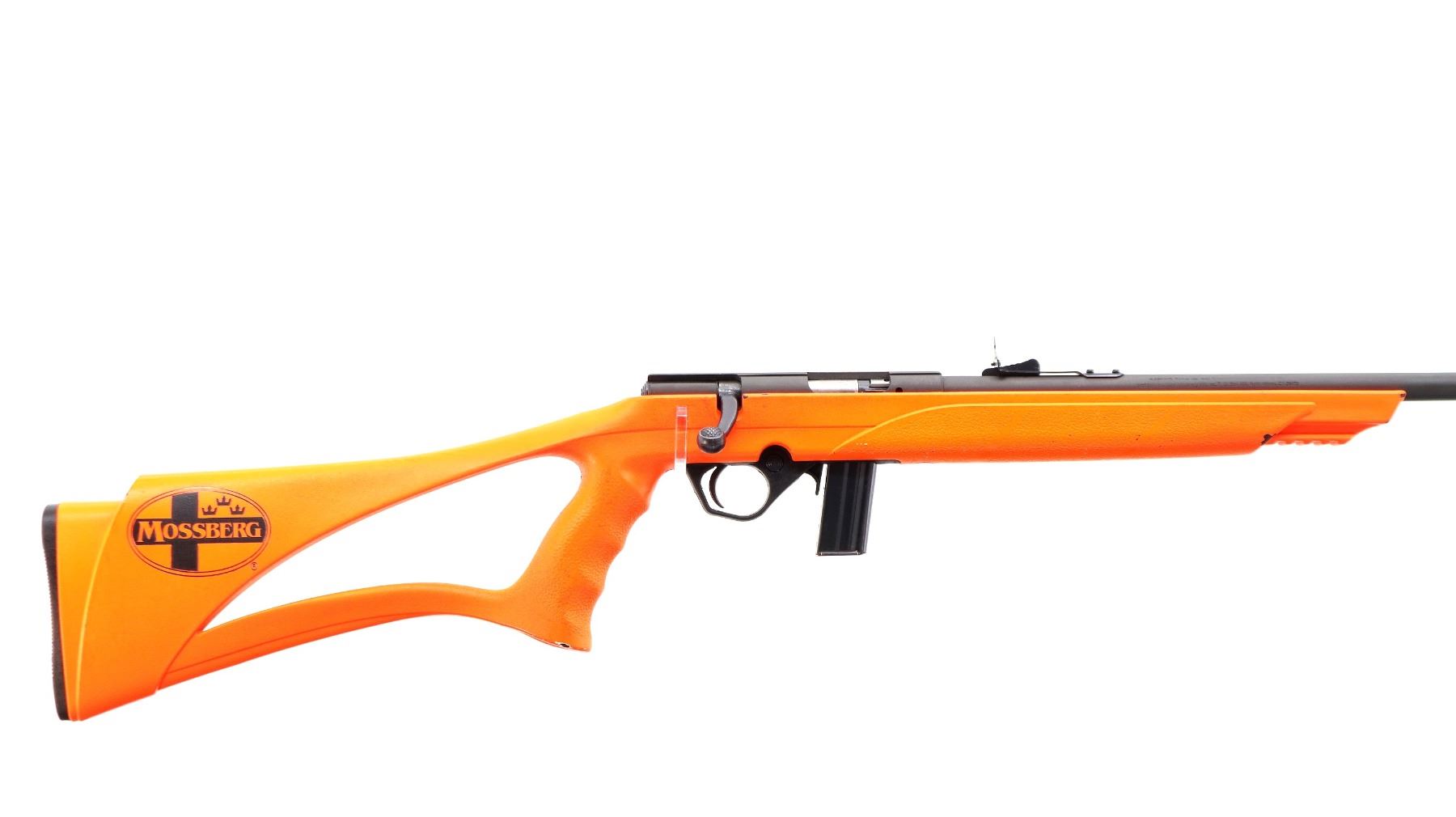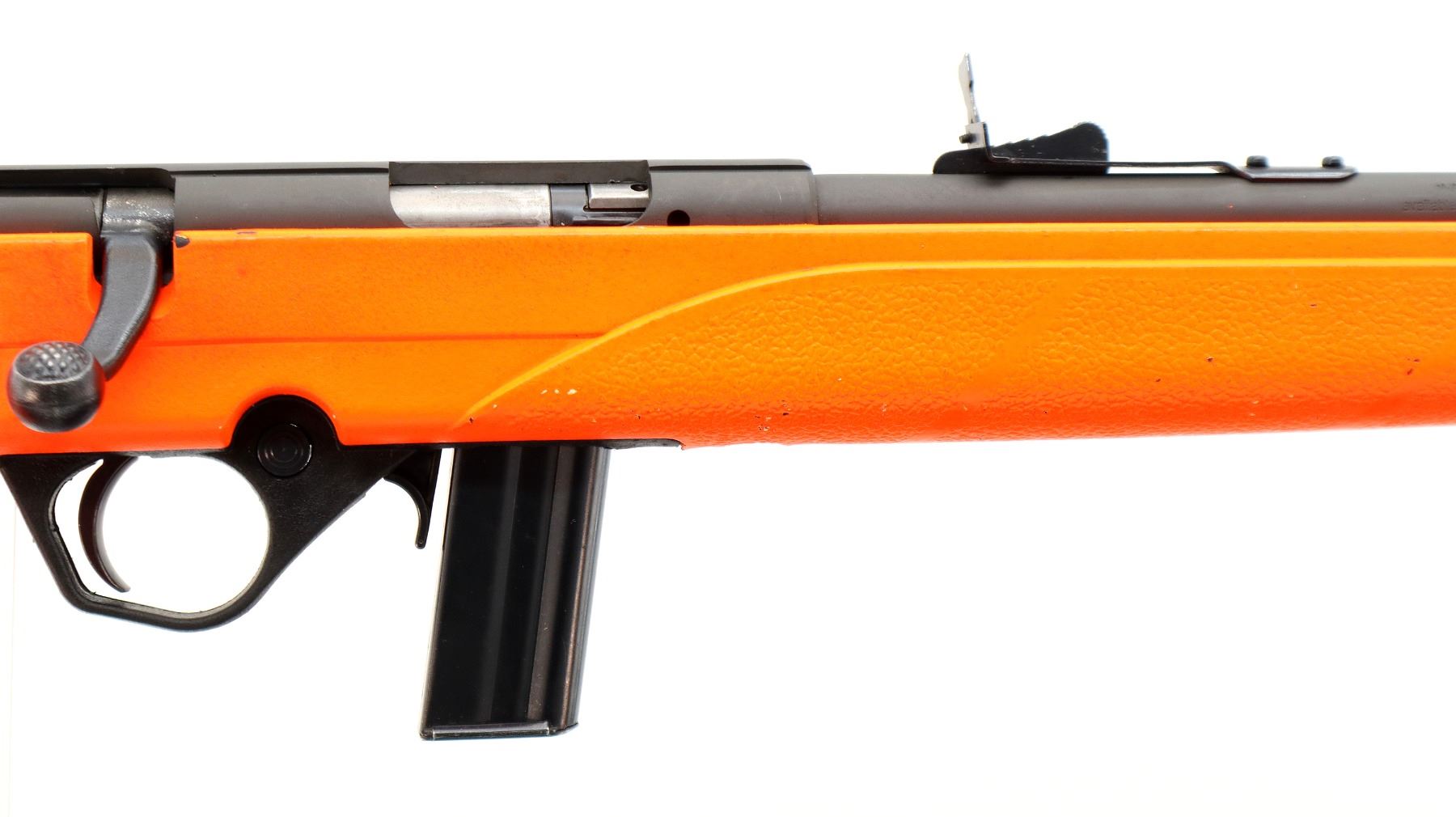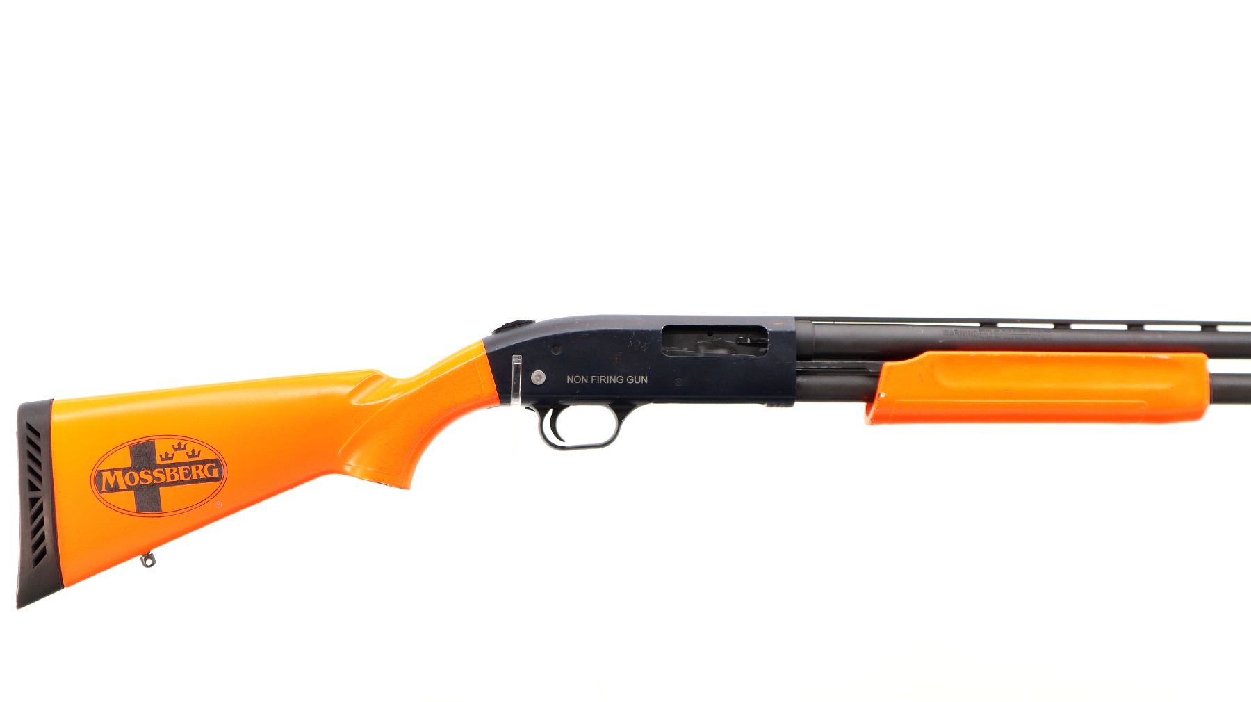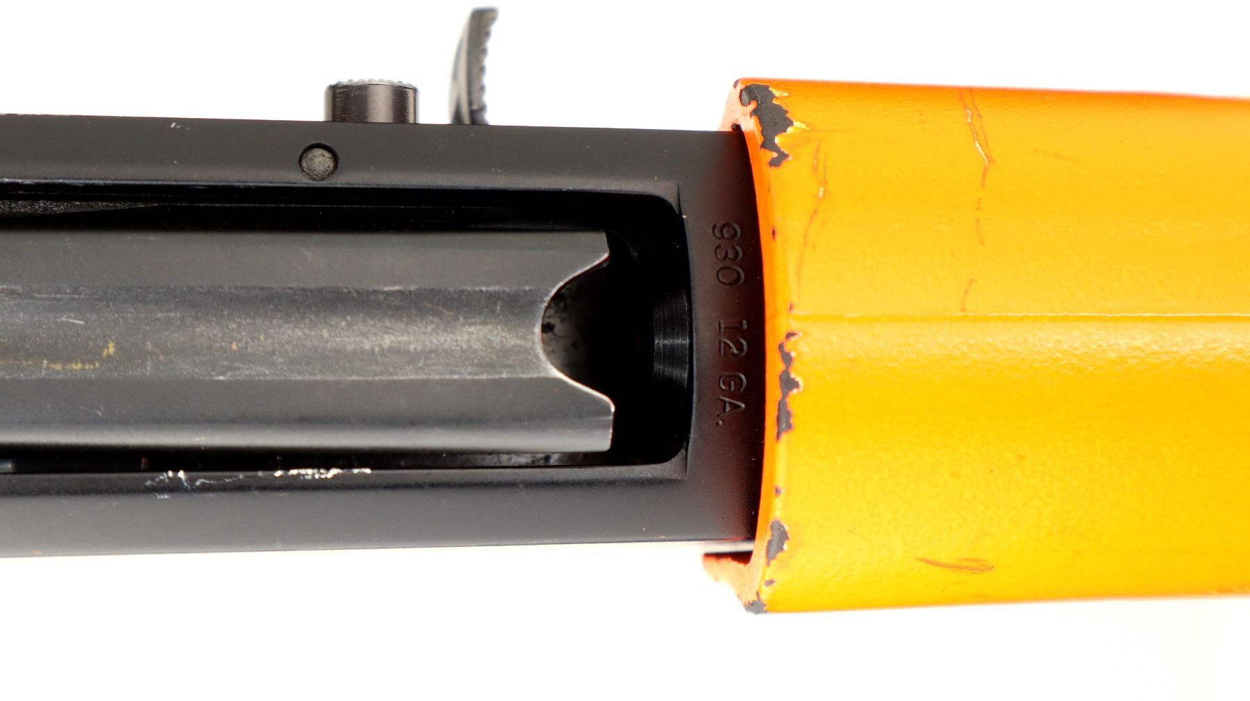 Main Description: This lot includes five non-firing firearms. All have Parkerized/Black painted metal finish and hunter-orange synthetic stocks. Model: 500, Cal: 12 G X 3", Serial: TR12093100, Action: Over Under, Barrel: 28", has Removable Full and IM Chokes. Has brass bead, solid rib, alloy receiver, manual safety, extractor, single mechanical trigger, checkered forearm and pistol grip, black rubber recoil pad. Model: 930, CAL: 12 G X 3", Serial: AF103337, Action: Semi Automatic Shotgun, Barrel: 24", Excellent Bore, Removable Mod Choke Installed, has broken bead, vent rib, alloy receiver drilled and tapped with plug screws installed, tang safety, checkered forearm and pistol grip, black vented rubber recoil pad, grip cap, swivel studs.Model: 500, CAL: 20 G X 3", Serial: U342319, Action: Pump Action Shotgun, Barrel: 26", Excellent Bore, Removable Mod Choke, has white front and brass mid rib beads, vent rib, alloy receiver drilled and tapped with plug screws installed, tang safety, textured forearm and pistol grip panels, black vented rubber recoil pad, rear swivel stud only. Model: 464, CAL: .30-30 WIN, Serial: LA030457, Action: Lever Action Rifle, Barrel: 20.5", Good Bore, Blade front sight, rear sight missing leaf has the base, receiver drilled and tapped with plug screws installed, grooved spur hammer, tang safety, straight grip, grooved brown rubber recoil pad, full length magtube. Model: 802, CAL: .22 LR, Serial: HLL3562841, Action: Bolt Action Rifle, 18", Magazine, Good Bore, Blade front sight with hood and ramp, adjustable u notched rear sight, grooved receiver, checkered bolt knob, textured forearm and thumb hole pistol grip, grooved black polymer butt plate, grip cap, short rail at forend tip. Note: Items are described in order they appear from top to bottom in the picture.
