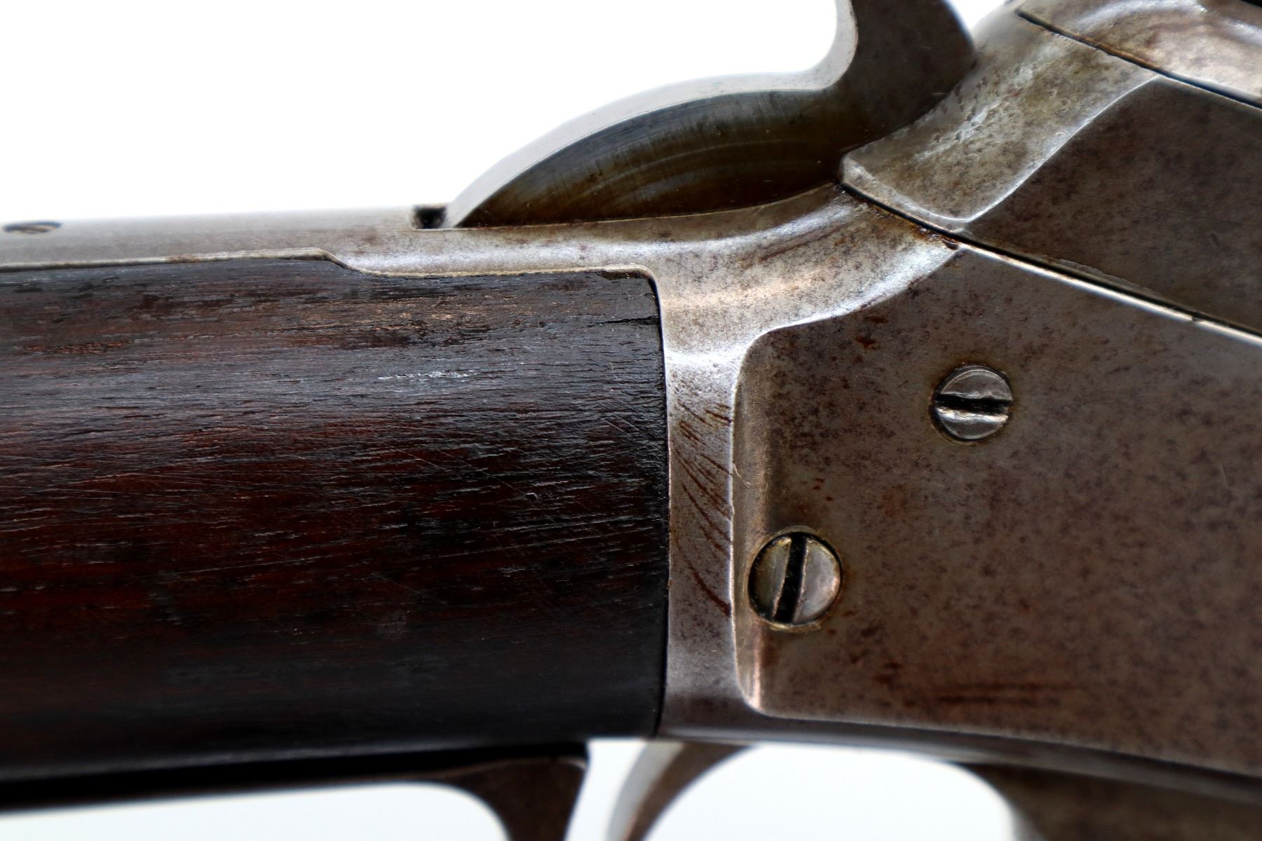 Wear: Metal finish shows some light rust speckles, scratches, handling marks and wear. Stocks show some marks, scratches and wear.