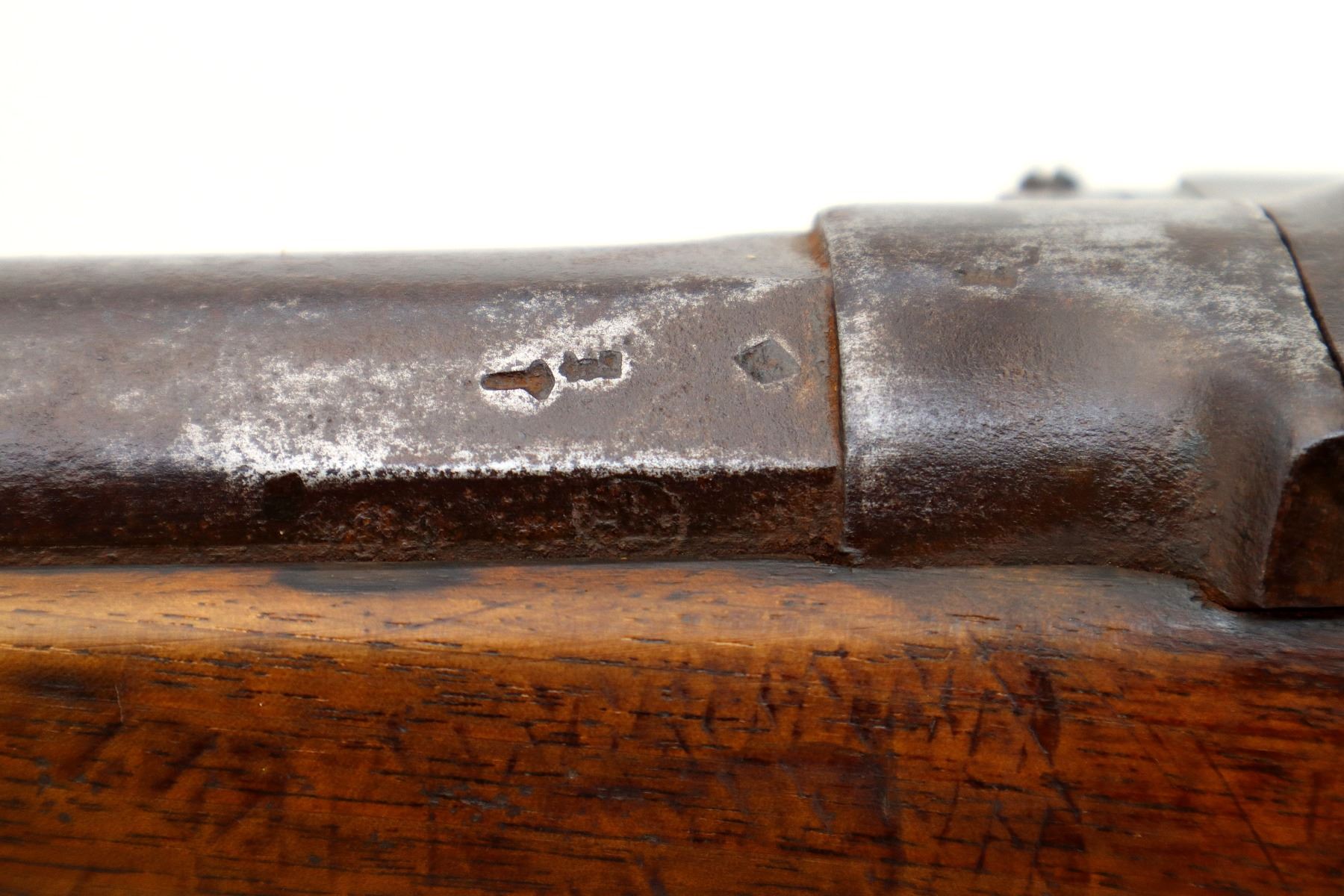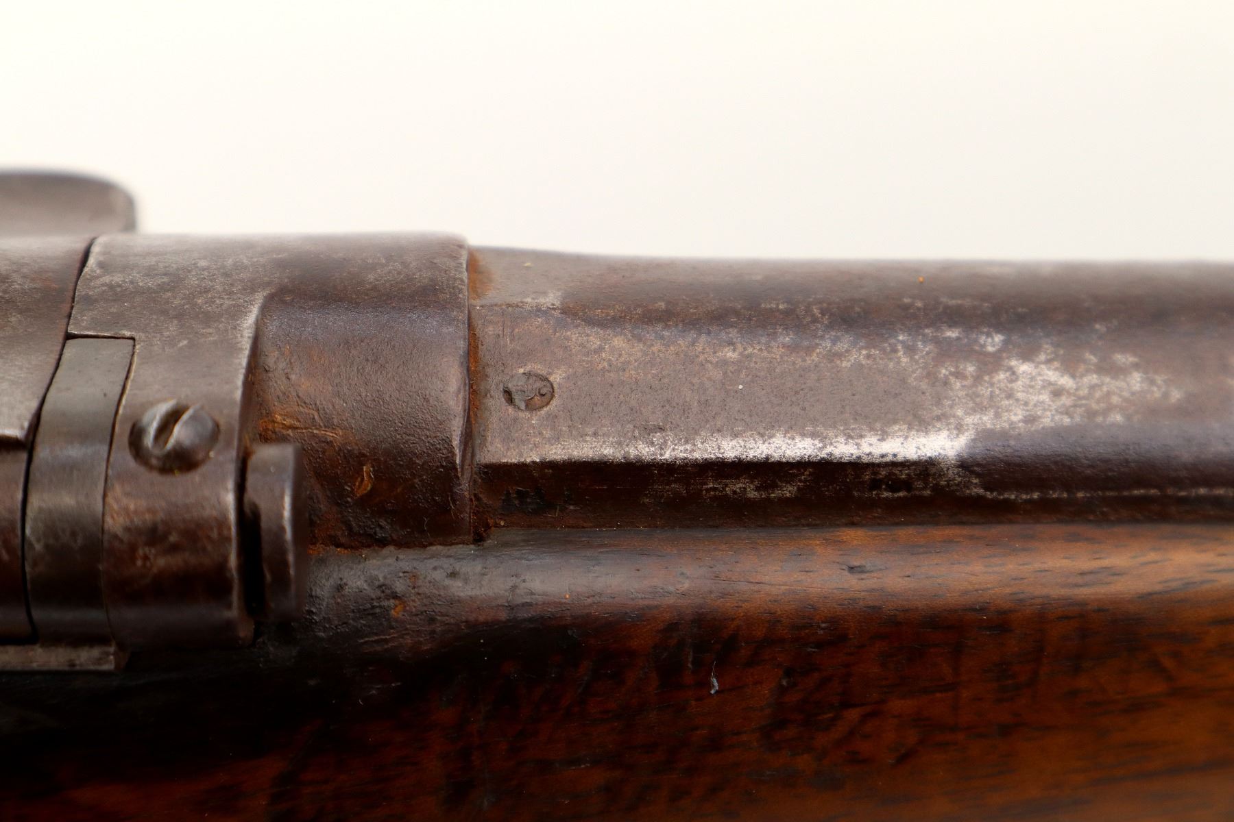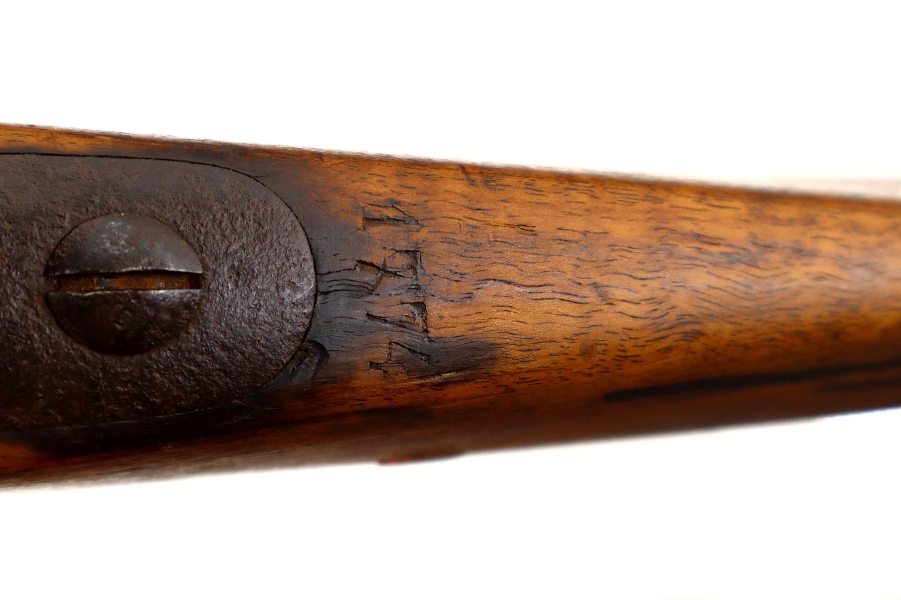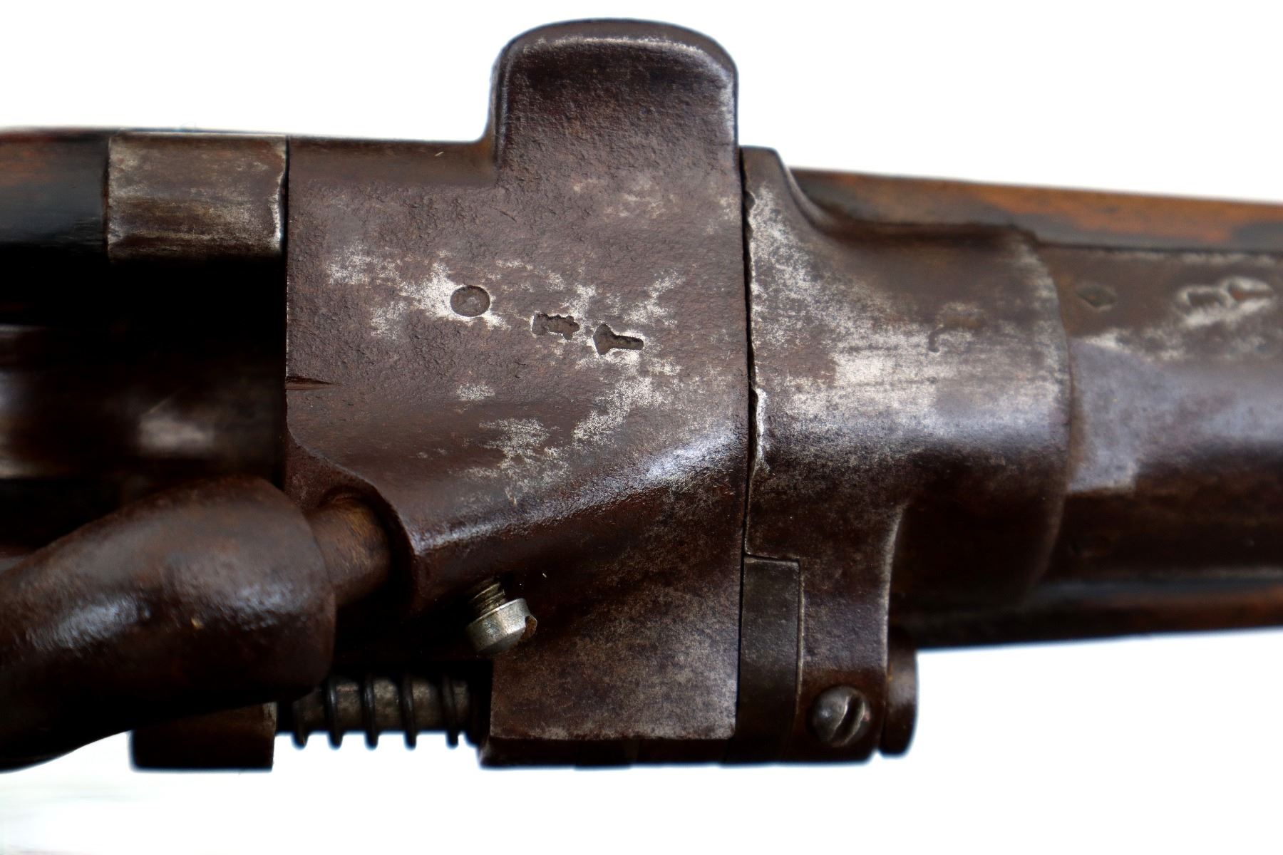 Wear: Metal finish turning brown with pitting, light rust overall, scratches, handling marks and wear. Stocks show marks, scratches and wear.