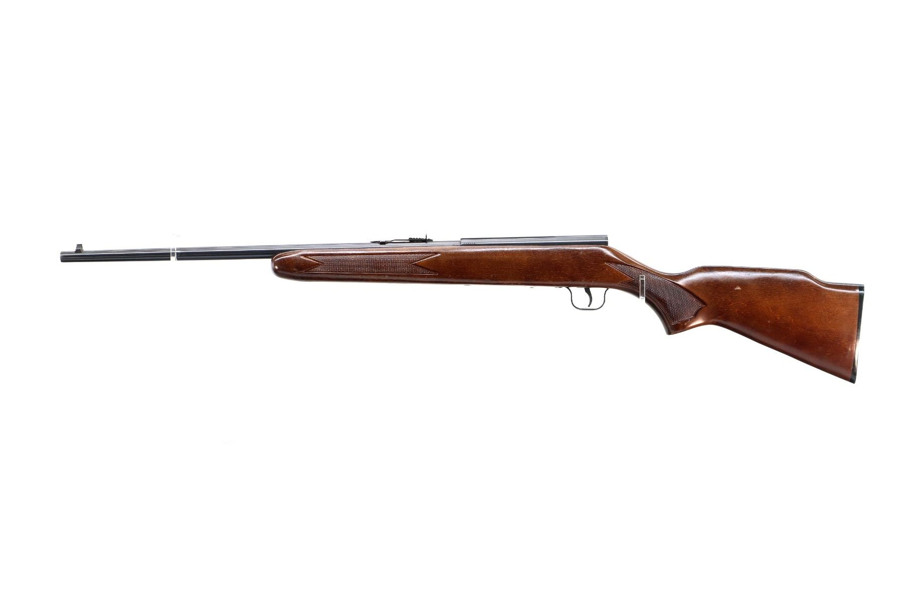 Main Description: Blade front sight, adjustable u notched rear sight, blued finish, grooved receiver, missing complete bolt assembly. One piece wood stock, checkered forearm, pistol grip and black polymer butt plate. Raised comb.