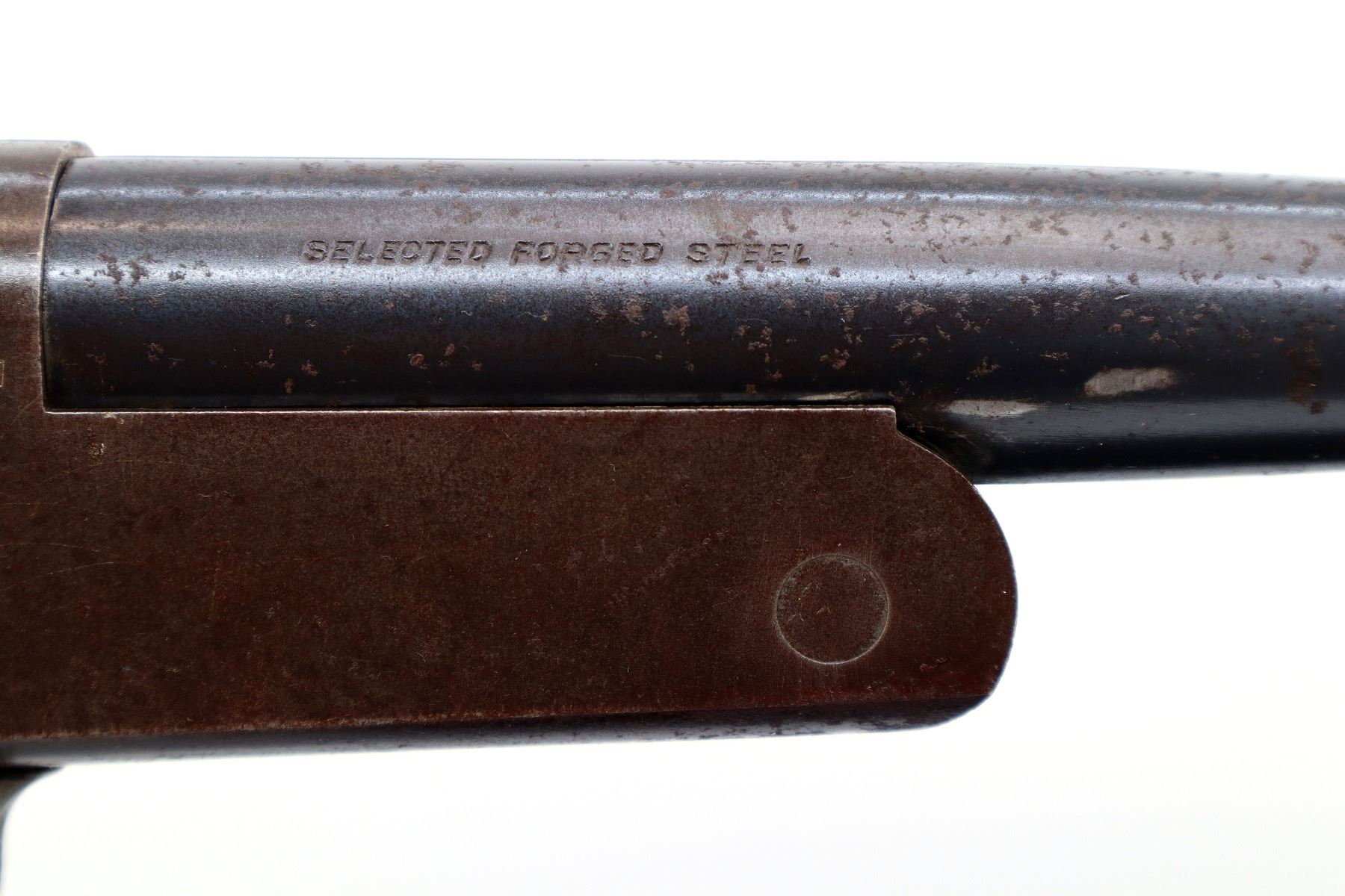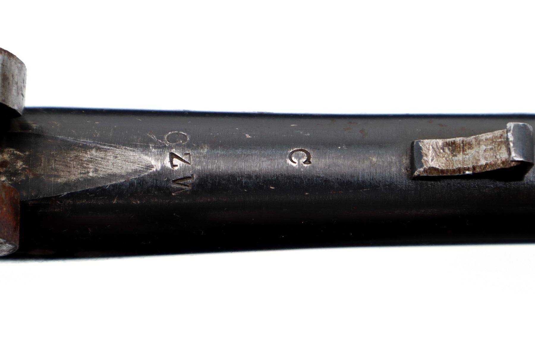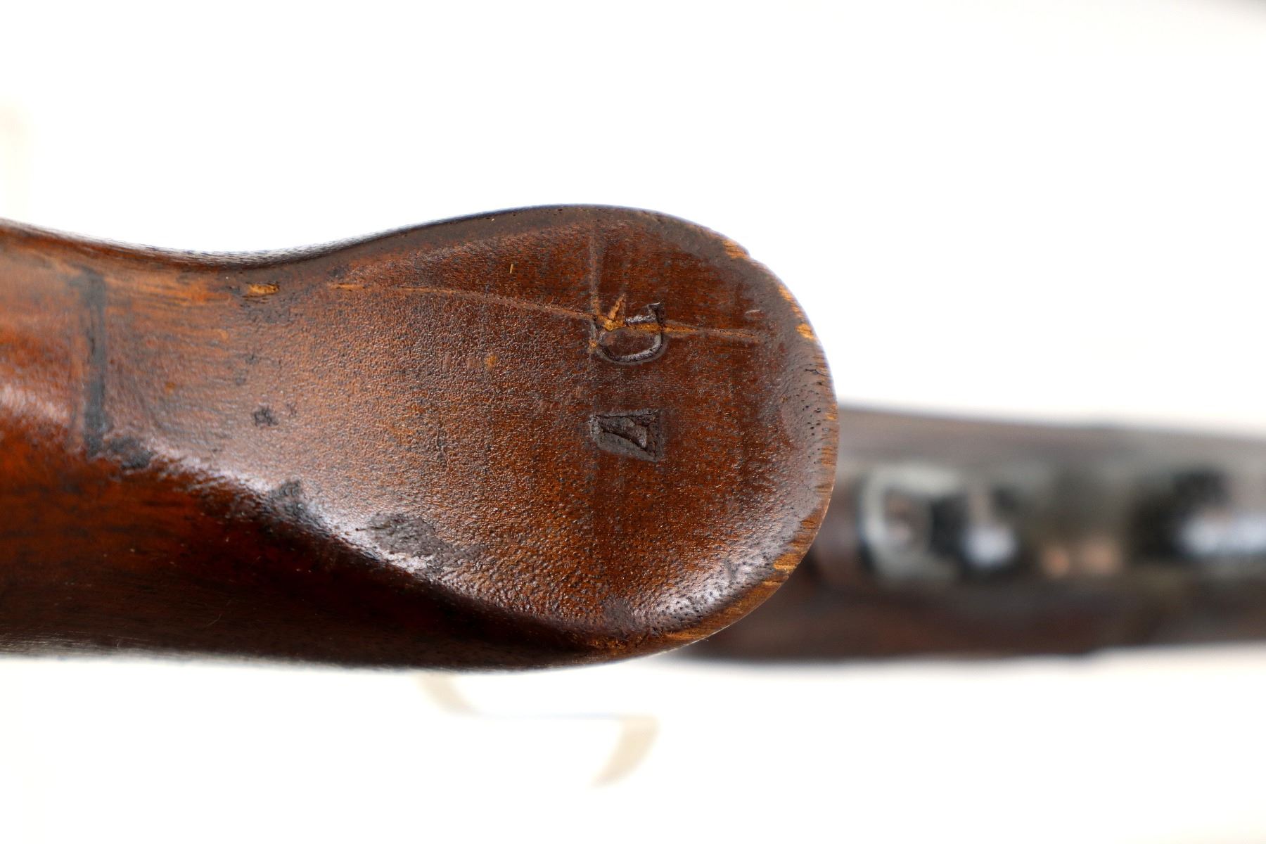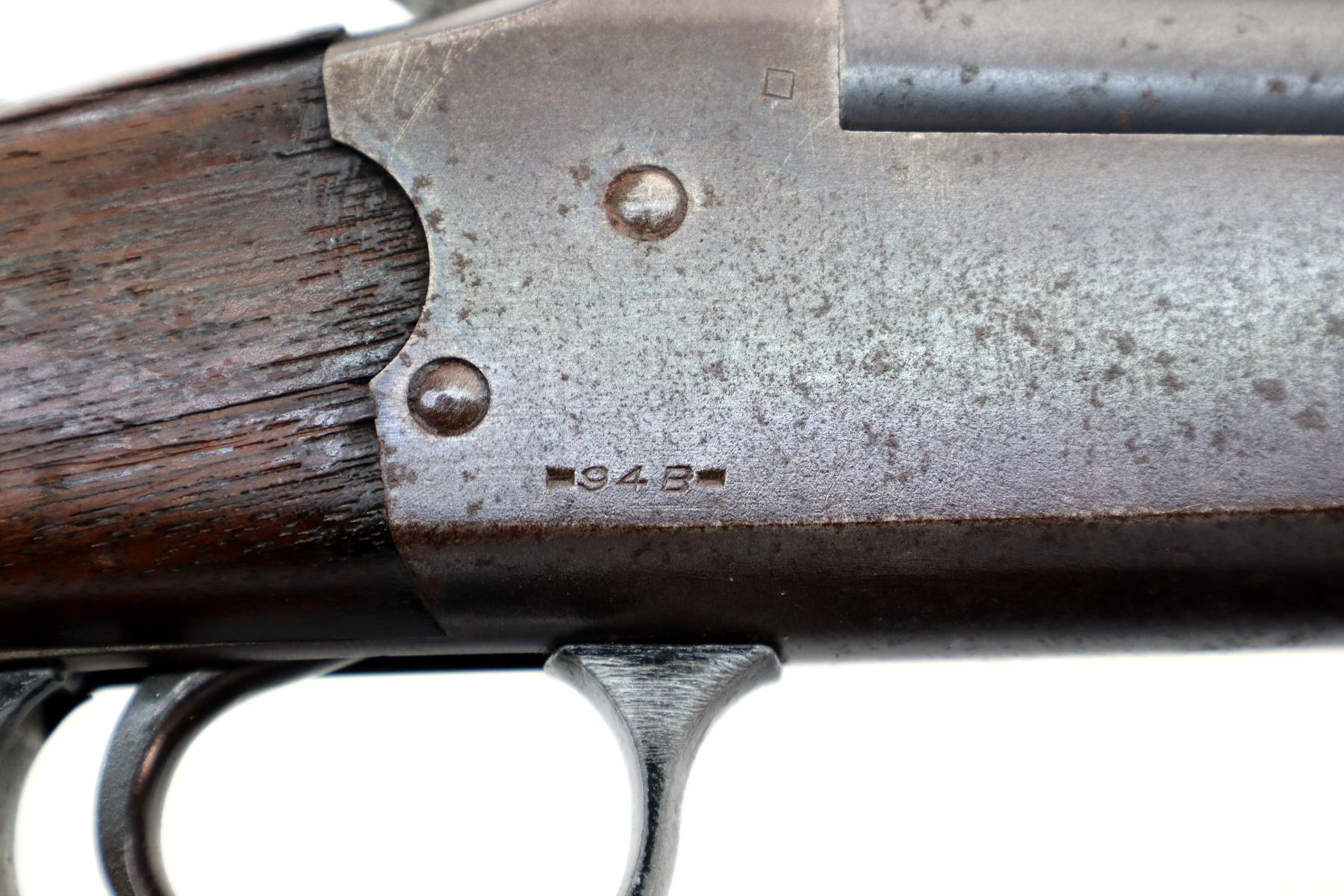 Wear: Metal finish shows some pitting, light rust overall, scratches, handling marks and wear. Stocks show marks, scratches and wear.