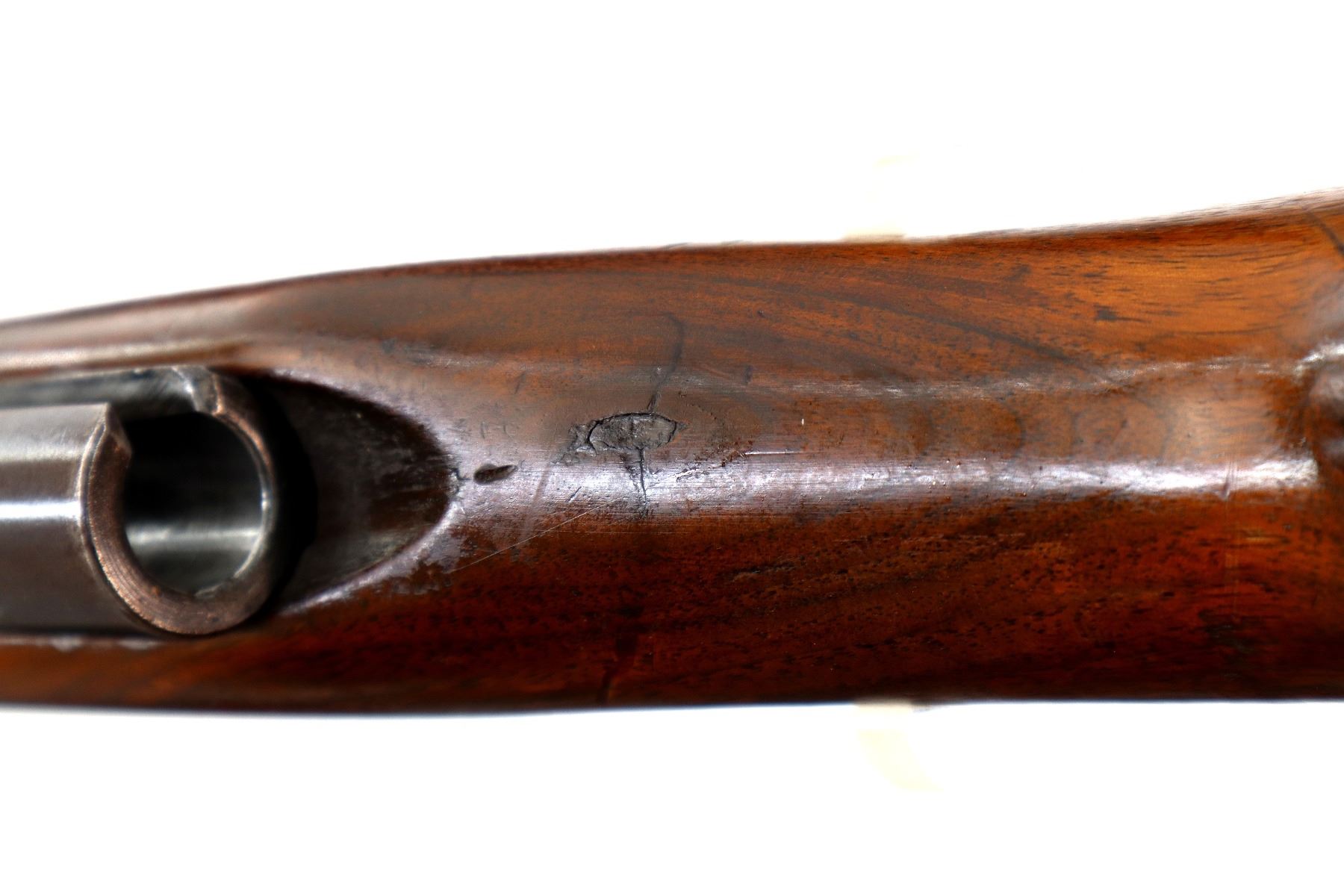 Wear: Metal finish turning brown with light rust speckles, scratches, handling marks and wear. Stock shows marks, scratches and wear.