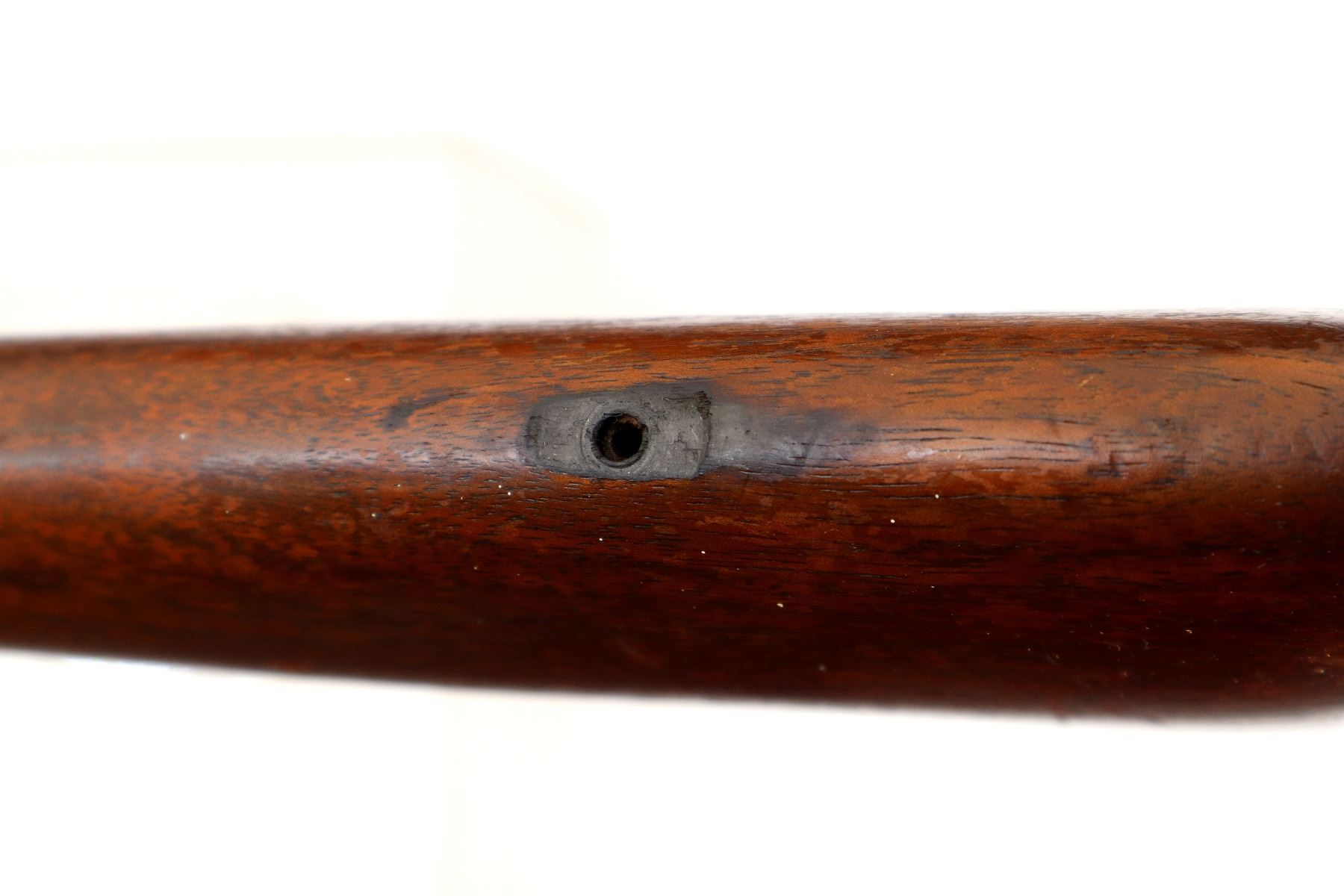 Main Description: Missing front and rear sights, dovetails are present, missing complete bolt, swivels, butt plate and screws. Has one piece wood stock, forearm is chipped, has pistol grip.