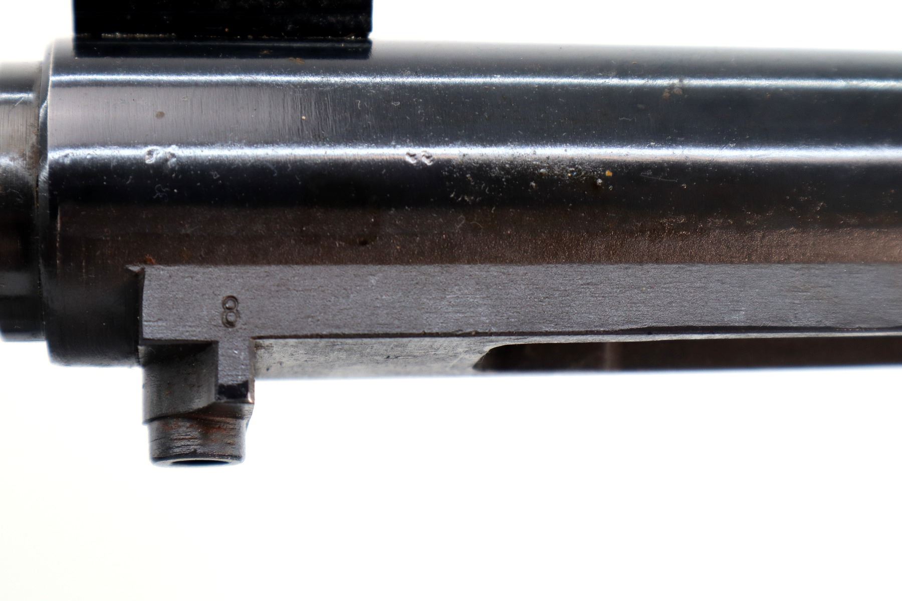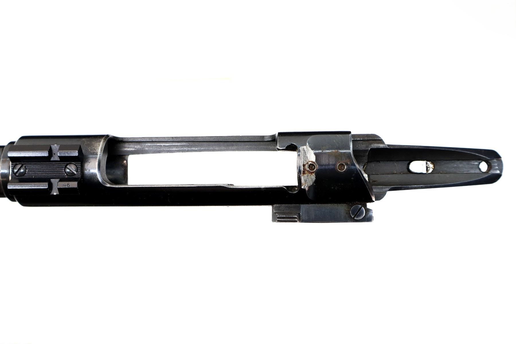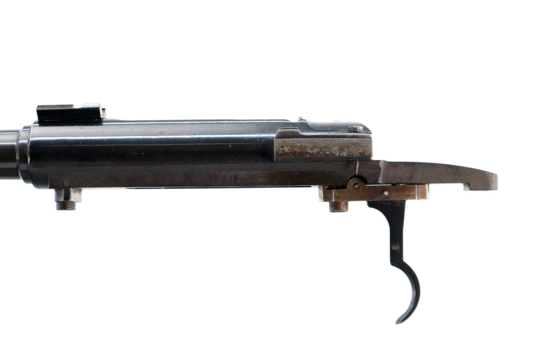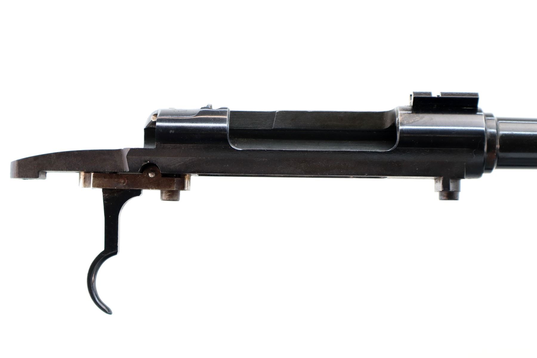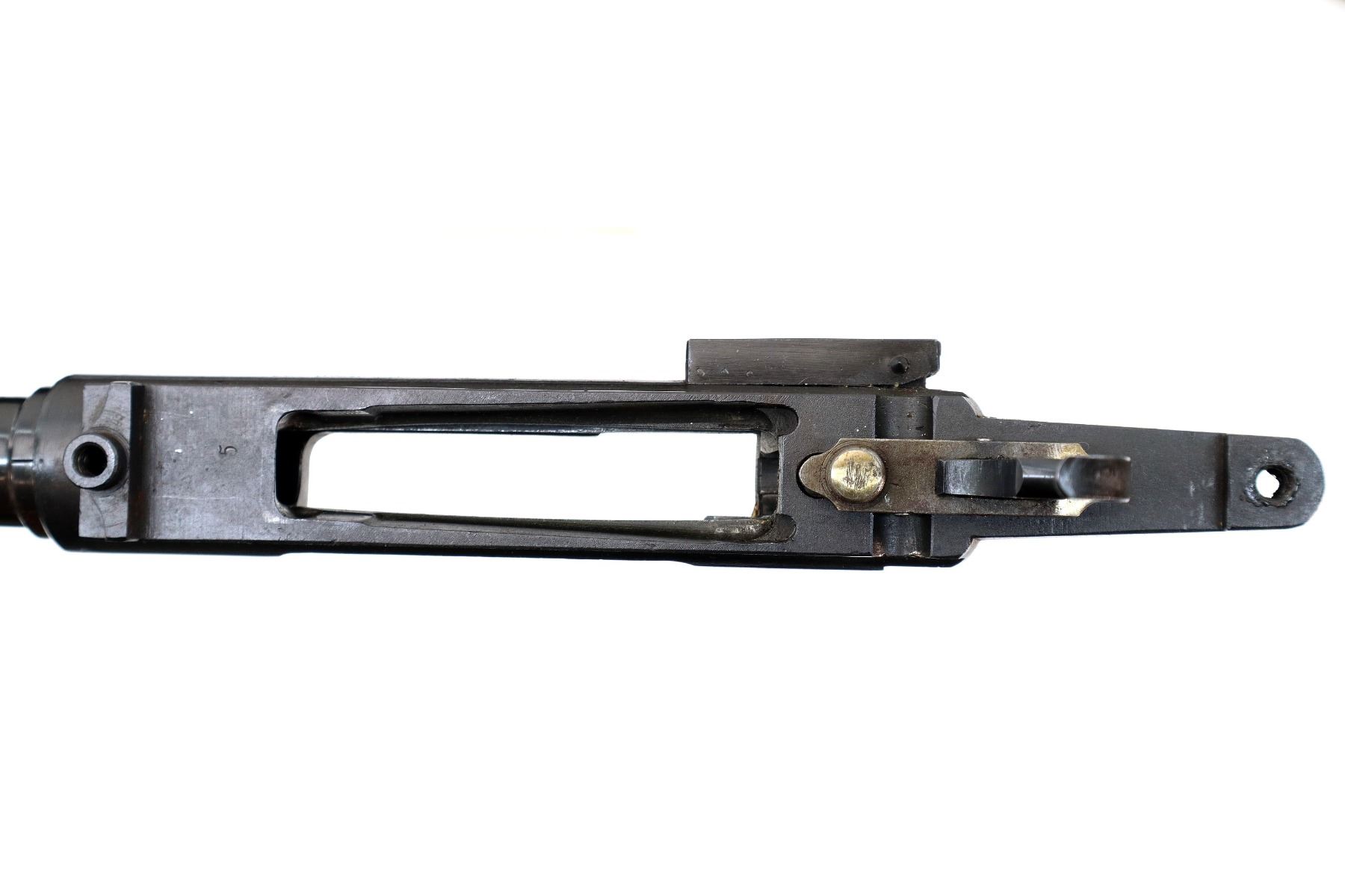 Main Description: Blade front sight with ramp, u notched rear sight with ramp, blued finish, receiver drilled and tapped with One piece base on the front ring, rear bridge has been modified, includes bolt stop and trigger mech assembly, front sling swivel, no other parts or stock included.