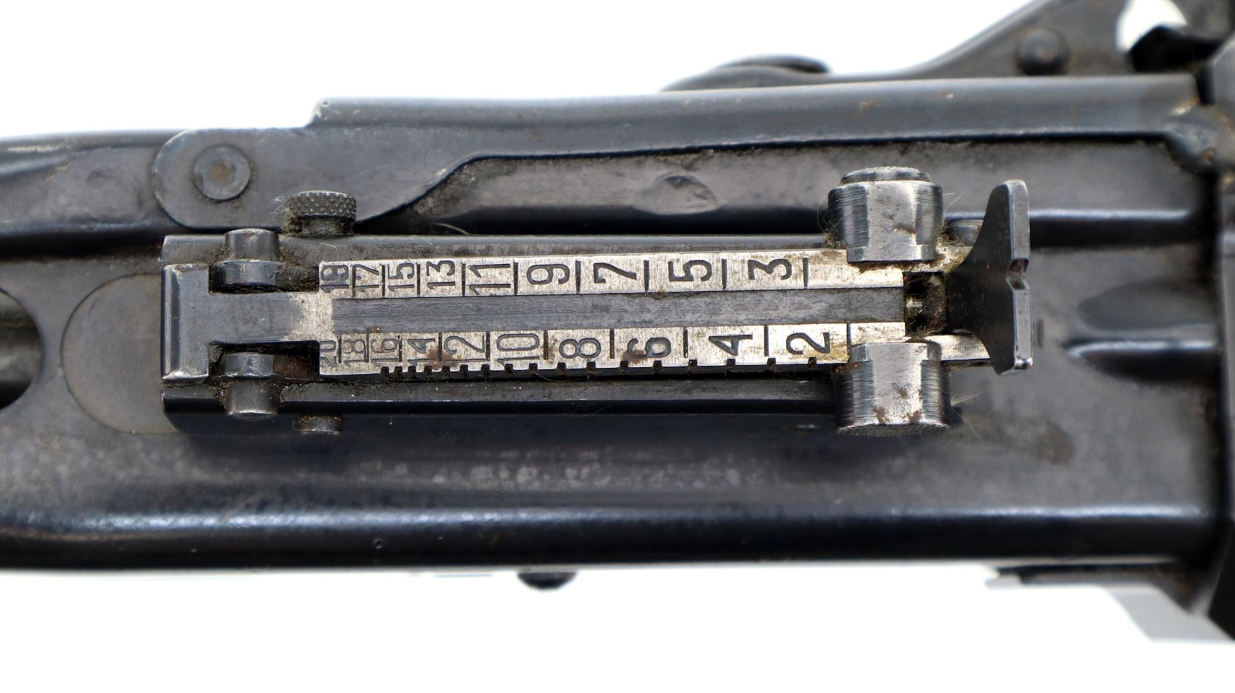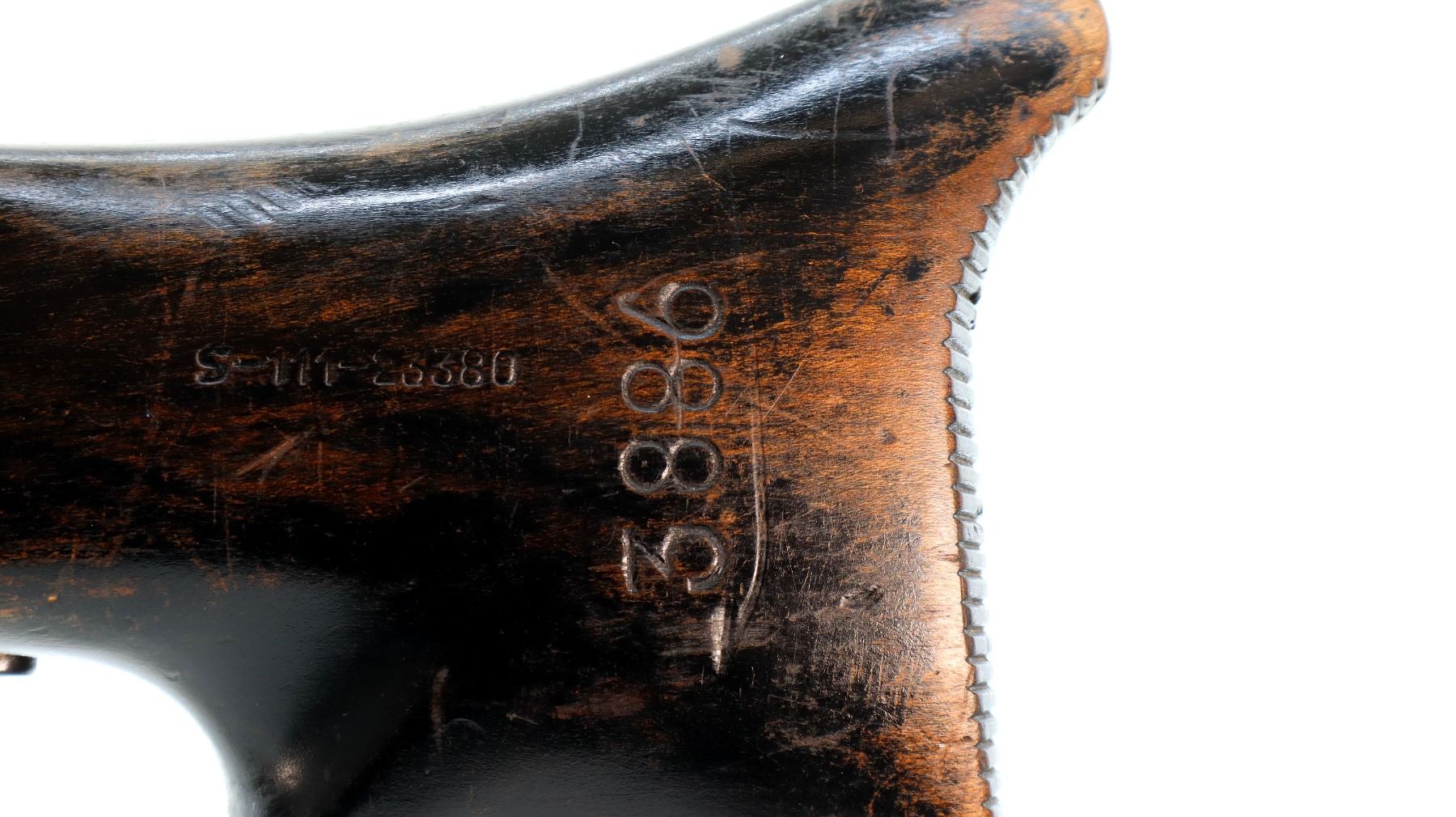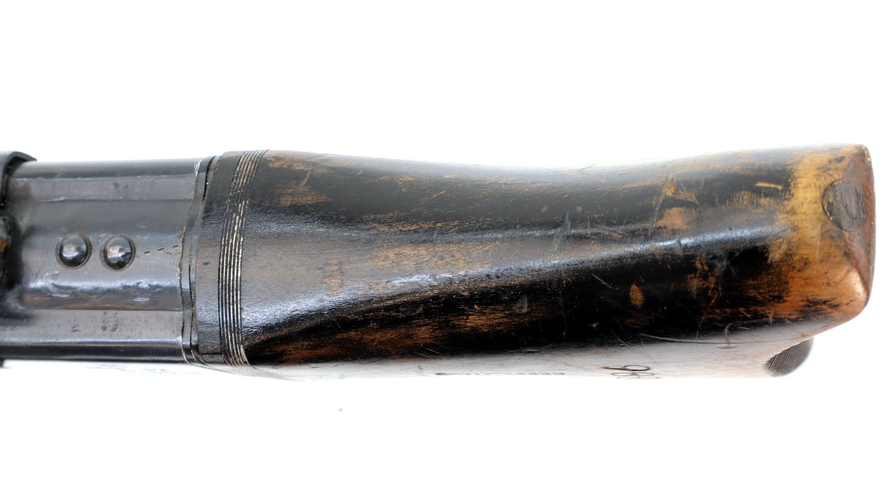 Wear: Metal finish shows some light rust speckles, scratches, handling marks and wear. Stocks show some marks, scratches and wear.