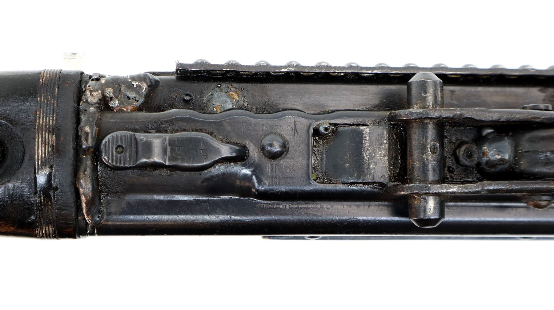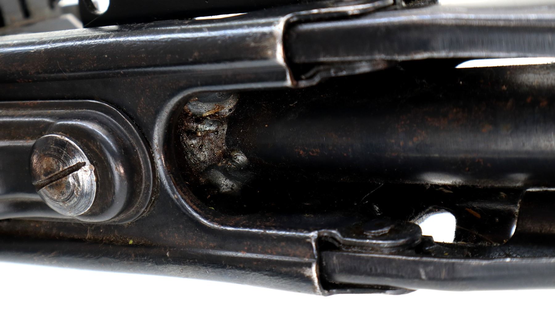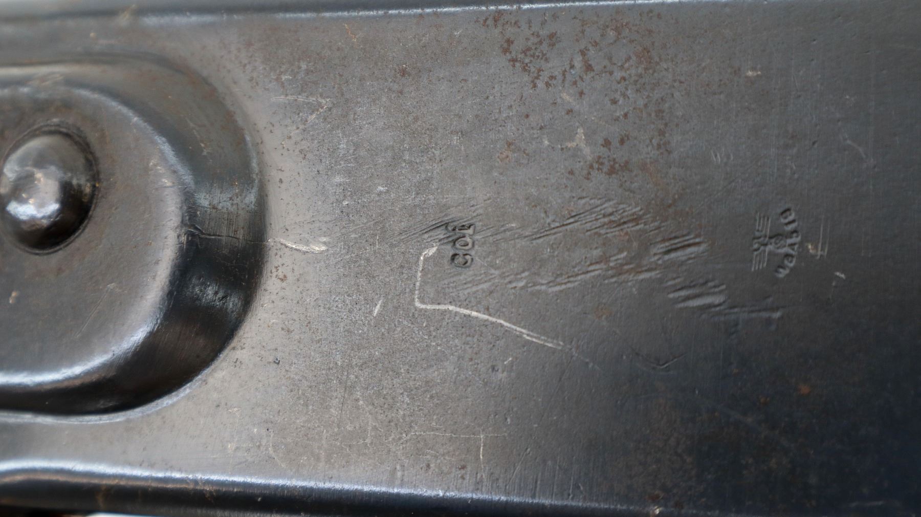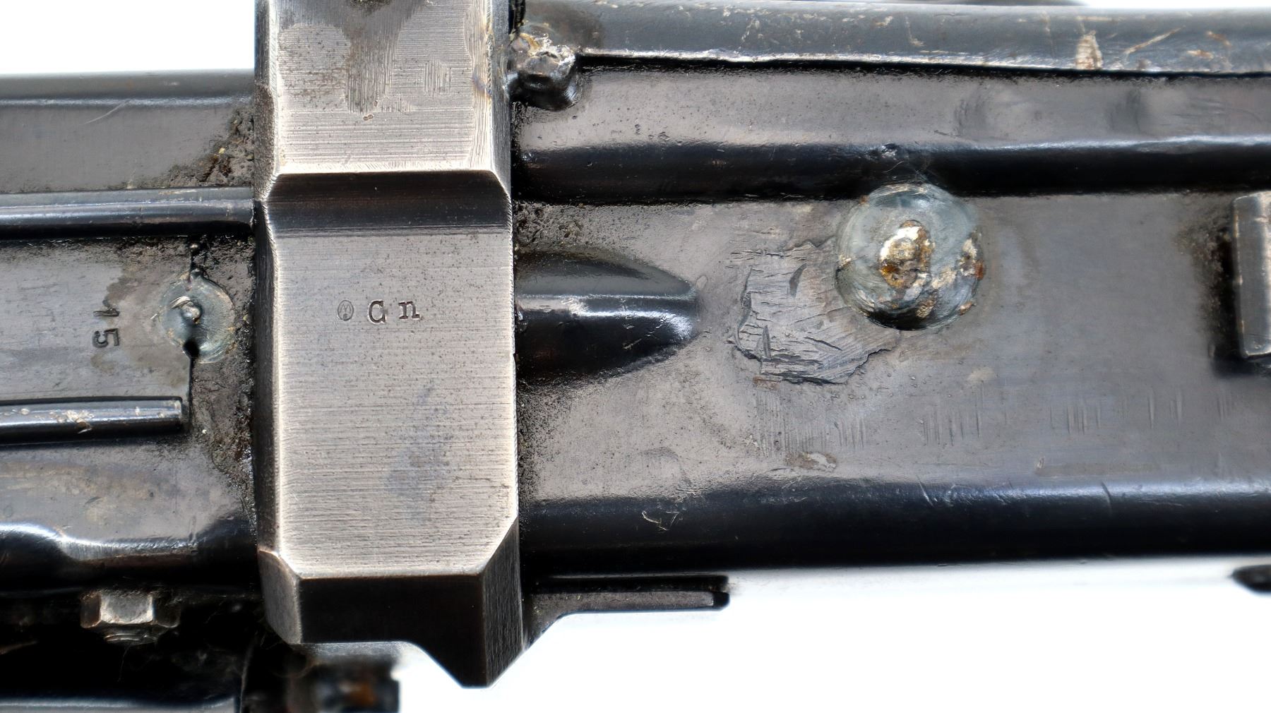 Wear: Metal finish shows some light rust speckles, scratches, handling marks and wear. Stocks show some marks, scratches and wear.