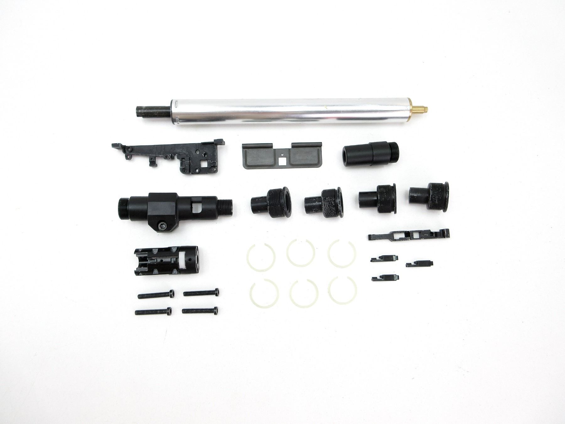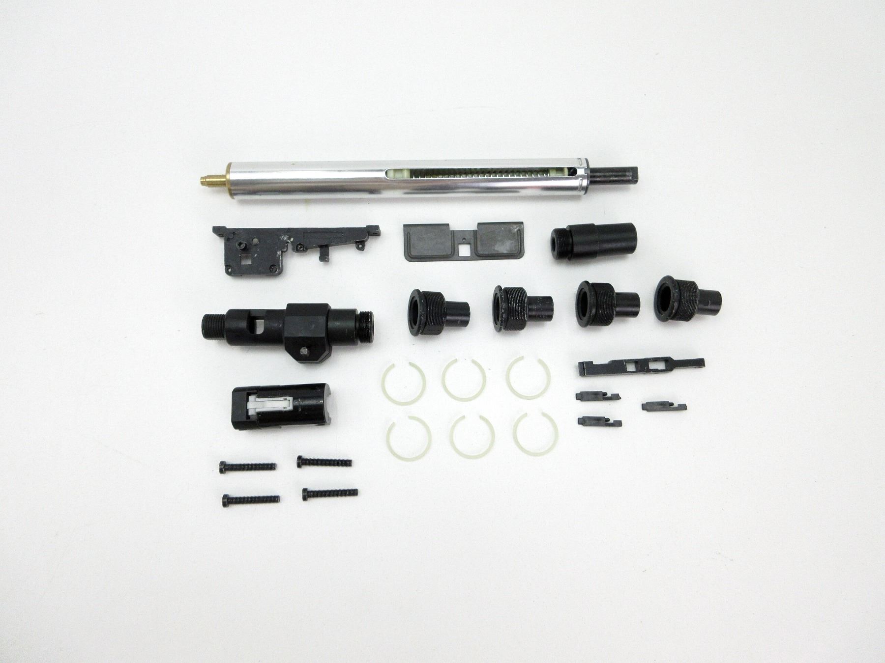 LOT INCLUDES; (1) GROUP HOP UP, COMPLETE HOP UP CHAMBER, FOR BOLT ACTION AIRSOFT RIFLES, FITS MB 4410 / 4411 / 4405, (1) AIRSOFT RIFLE SPRING POWERED RIFLE BOLT, DROP IN DESIGN REQUIRES NO MODIFICATION, INCOMPLETE, MISSING BOLT HANDLE, WITH VARIOUS MOCK SUPPRESSOR ADAPTERS, SCREWS, ETC. SEE PHOTOS.