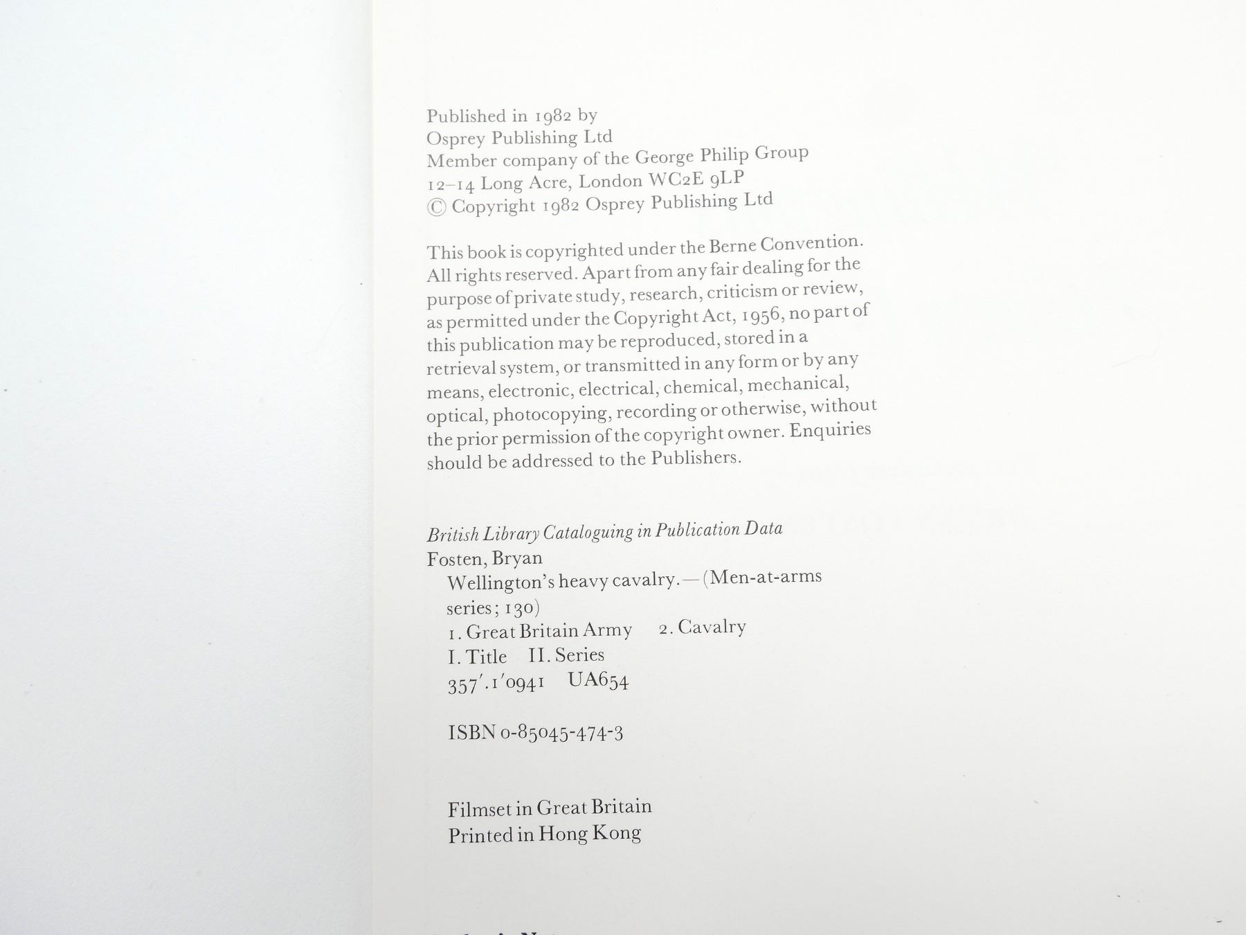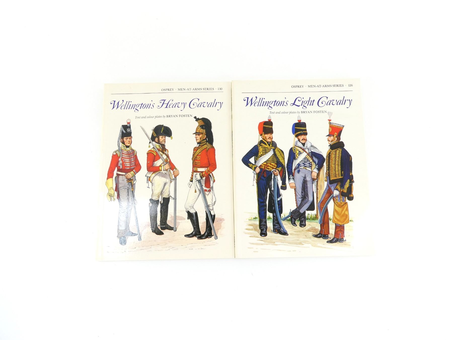 SOFT COVERS, LOT INCLUDES; (1) "WELLINGTON'S LIGHT CAVALRY" BOOK BY BRYAN FOSTEN, ISBN: 0-85045-449-2 & (1) "WELLINGTON'S HEAVY CAVALRY" BOOK BY BRYAN FOSTEN, ISBN: 0-85045-474-3. SEE PHOTOS.