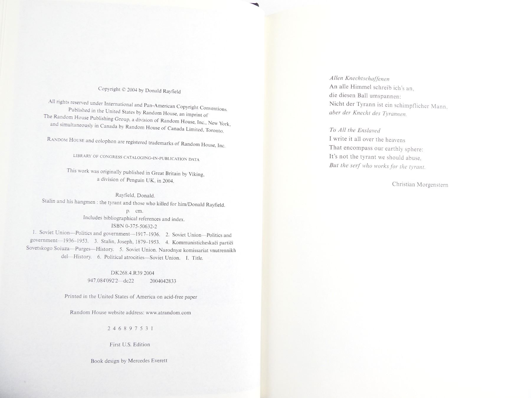 (1) BY DONALD RAYFIELD, HARD COVER WITH DUST COVER, ISBN: 0-375-50632-2. SEE PHOTOS.