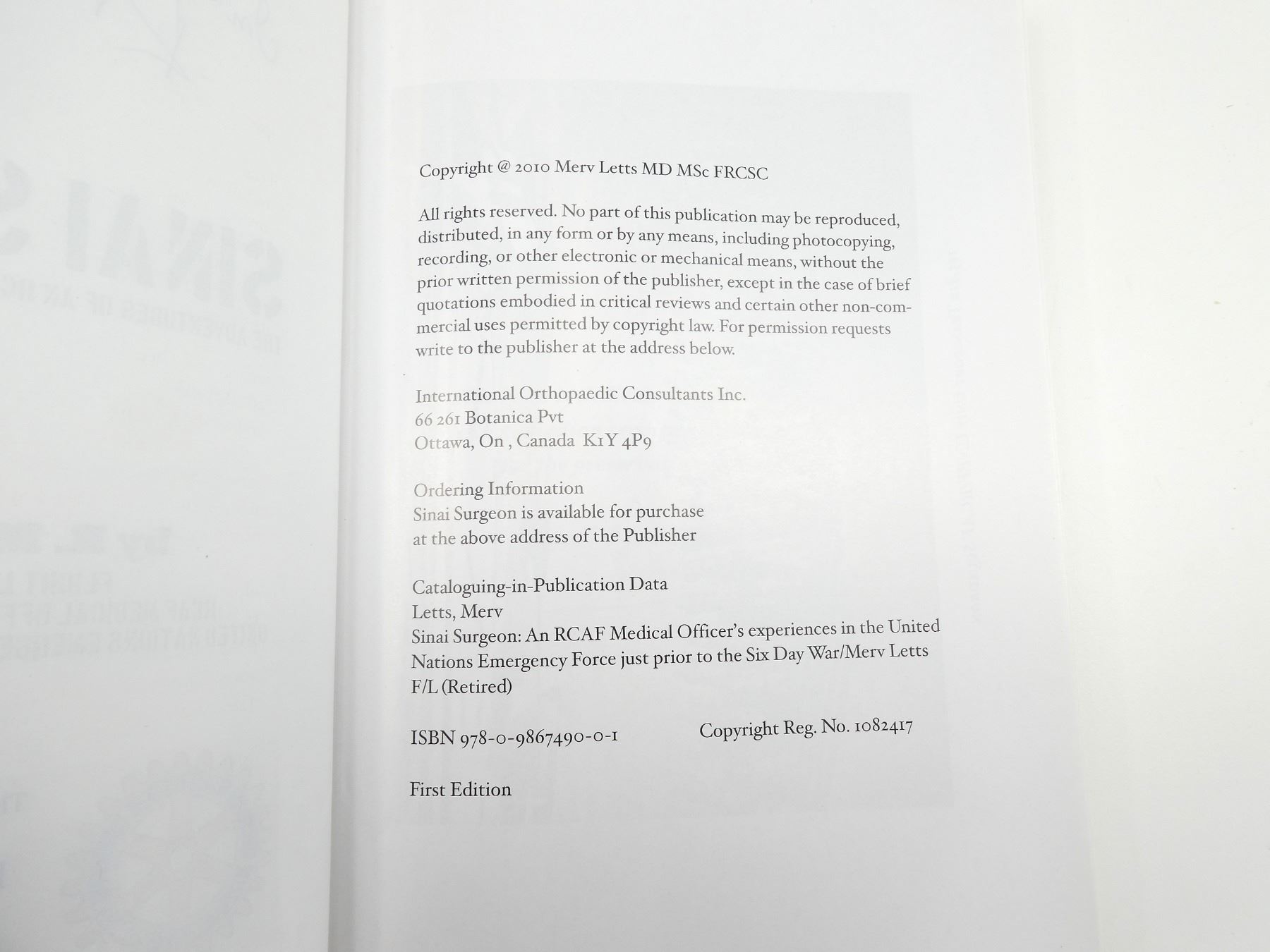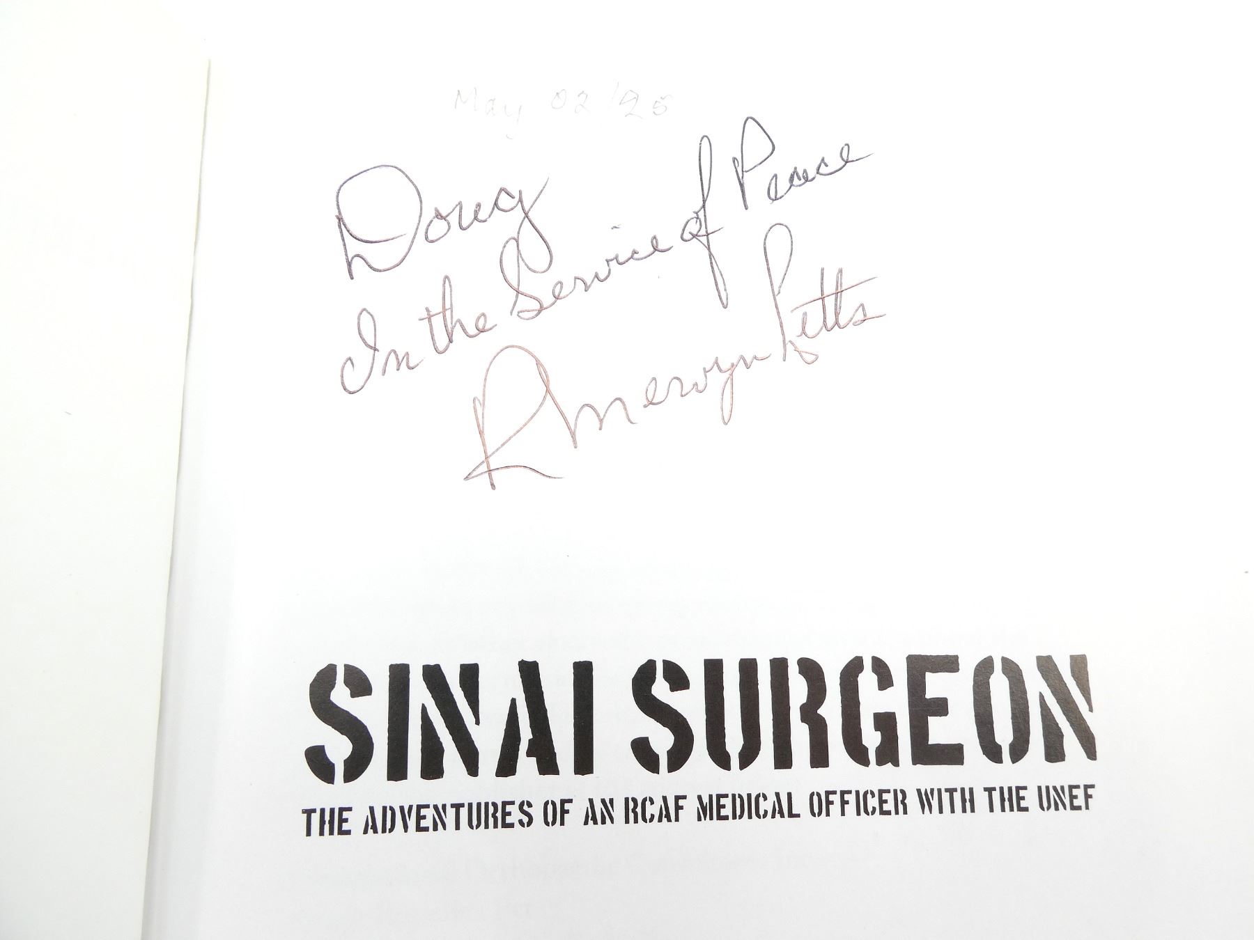Lot 34087 "SINAI SURGEON, THE ADVENTURES OF AN RCAF MEDICAL OFFICER WITH THE UNEF" BOOK