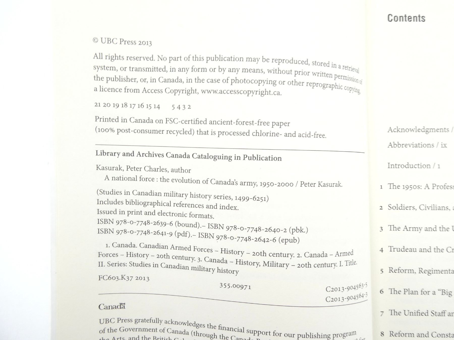 Lot 34093 "A NATIONAL FORCE, THE EVOLUTION OF CANADA'S ARMY, 1950-2000" BOOK