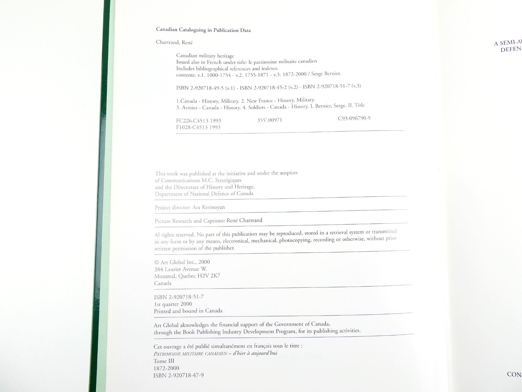 "CANADIAN MILITARY HERITAGE, VOLUME III, 1872-2000" BOOK
