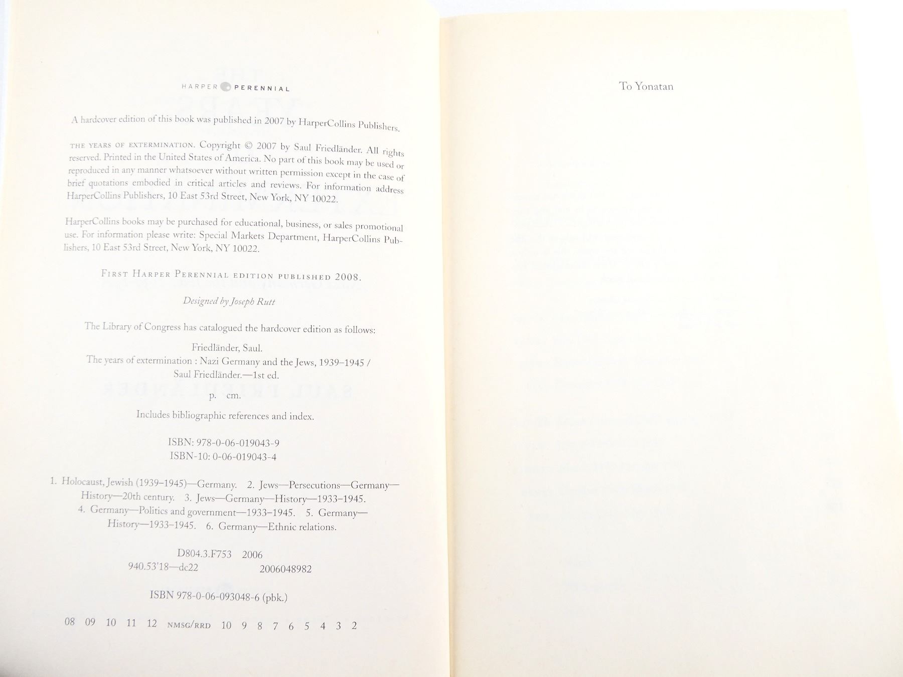 (1) BY SAUL FRIEDLANDER, SOFT COVER, ISBN: 978-0-06-093048-6. SEE PHOTOS.