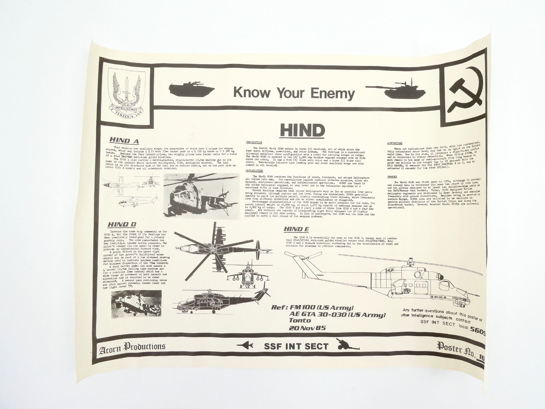 (1) "KNOW YOUR ENEMY" ADVERTISEMENT POSTER NO. 16 BY ACORN PRODUCTIONS, IN BLACK AND WHITE, APPROX. 25" X 18". SEE PHOTOS.