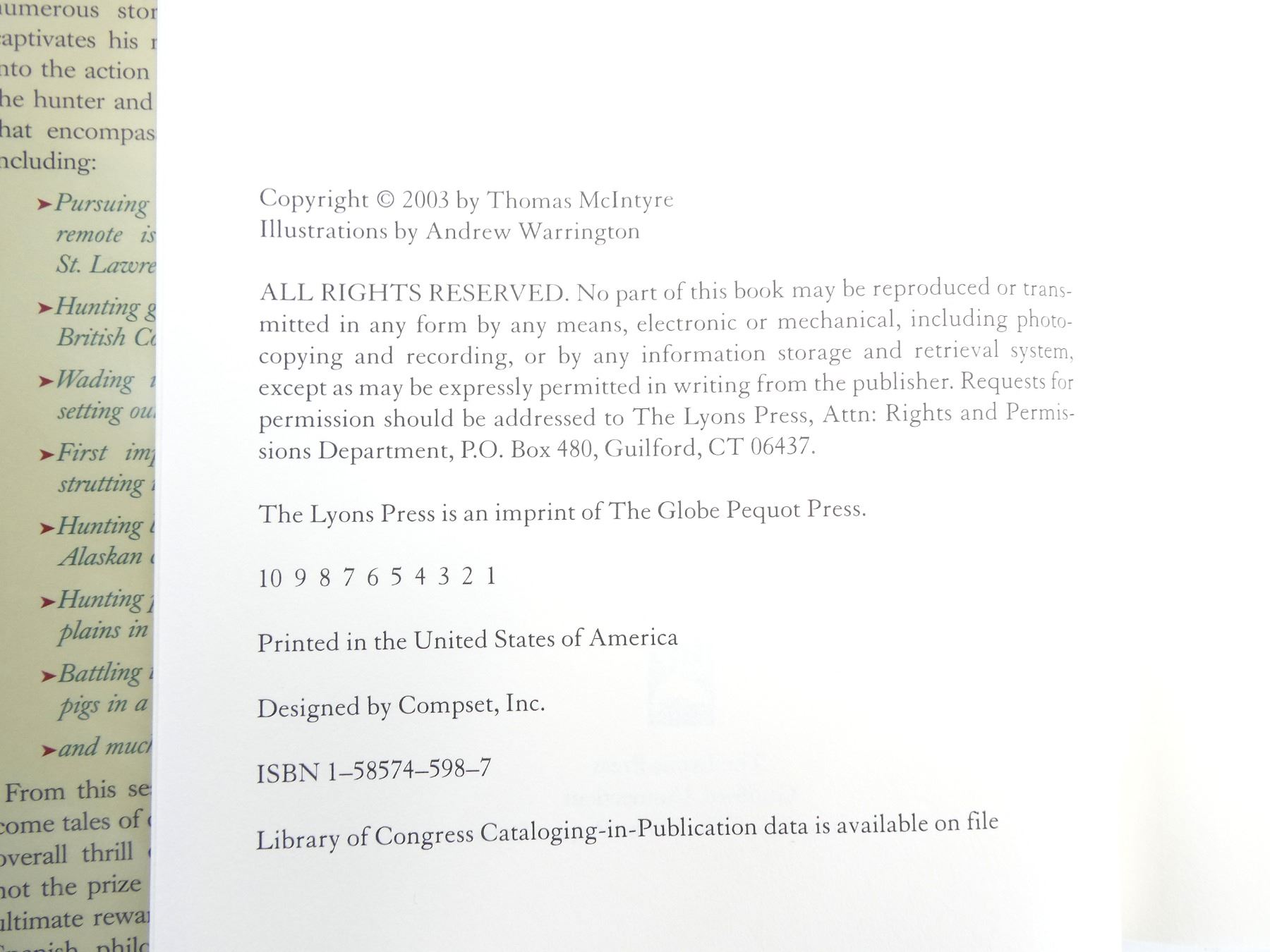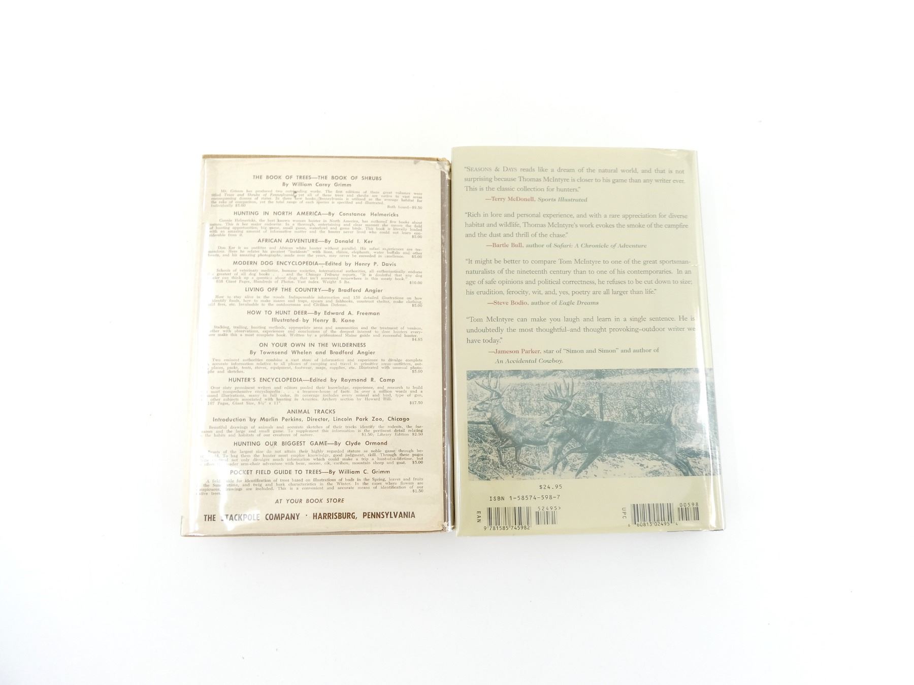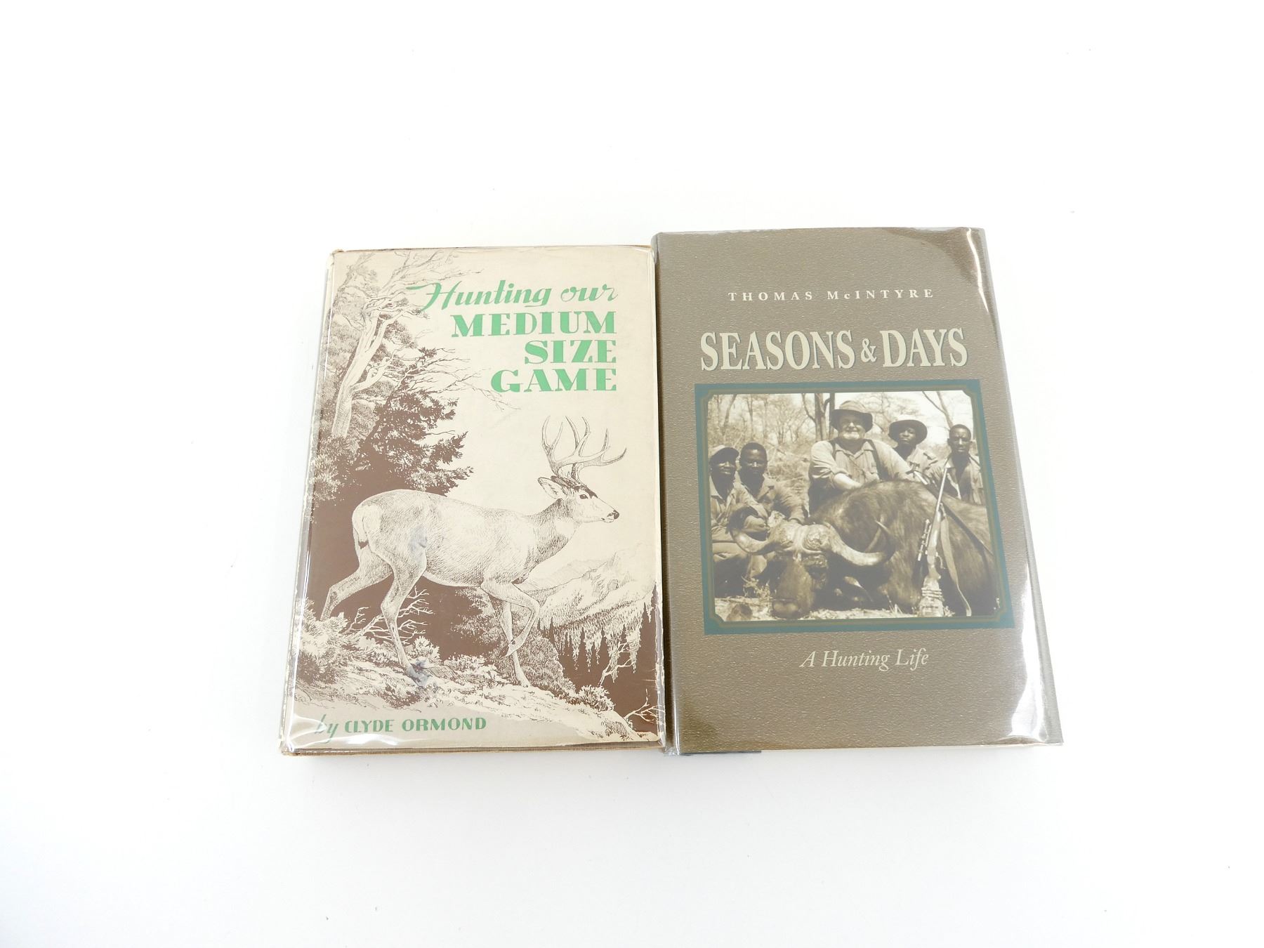 HARD COVERS WITH DUST COVERS, LOT INCLUDES; (1) "HUNTING OUR MEDIUM SIZE GAME" BOOK BY CLYDE ORMOND, COPYRIGHT 1958 & (1) "SEASONS & DAYS, A HUNTING LIFE" BOOK BY THOMAS MCINTYRE, ISBN: 1-58574-598-7. SEE PHOTOS.