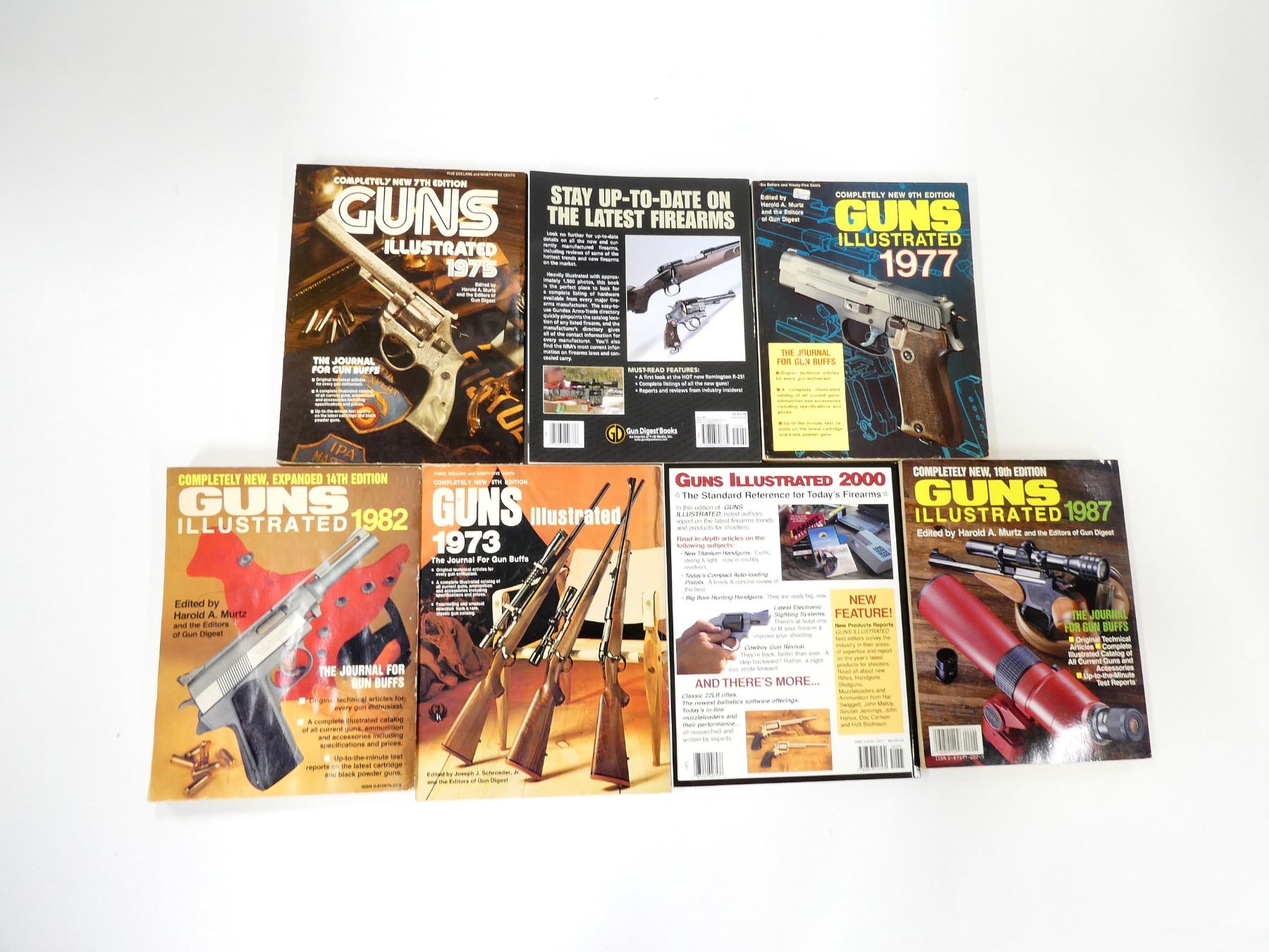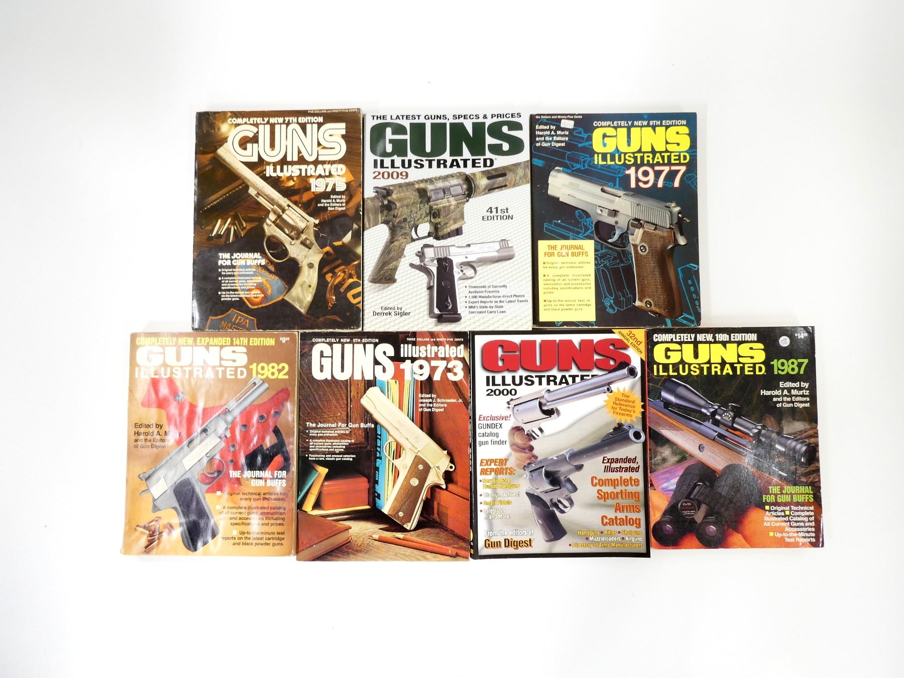 SOFT COVERS, LOT INCLUDES; (7) "GUNS ILLUSTRATED" CATALOGUES FROM 1973 TO 2009, SERIES NOT COMPLETE / SOME ISSUES MISSING / MAY CONTAIN DUPLICATES. SEE PHOTOS.