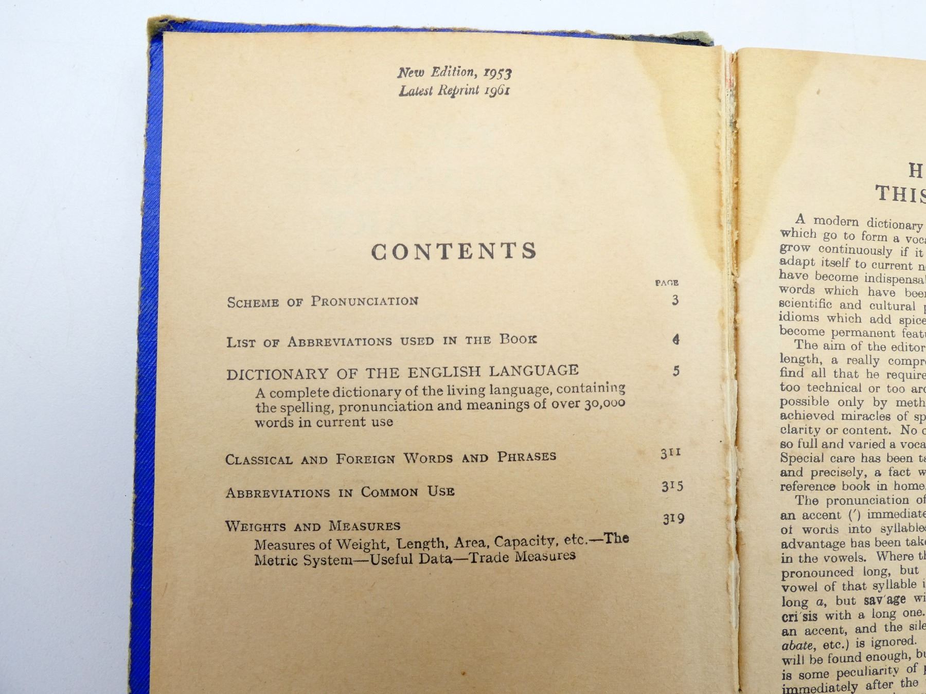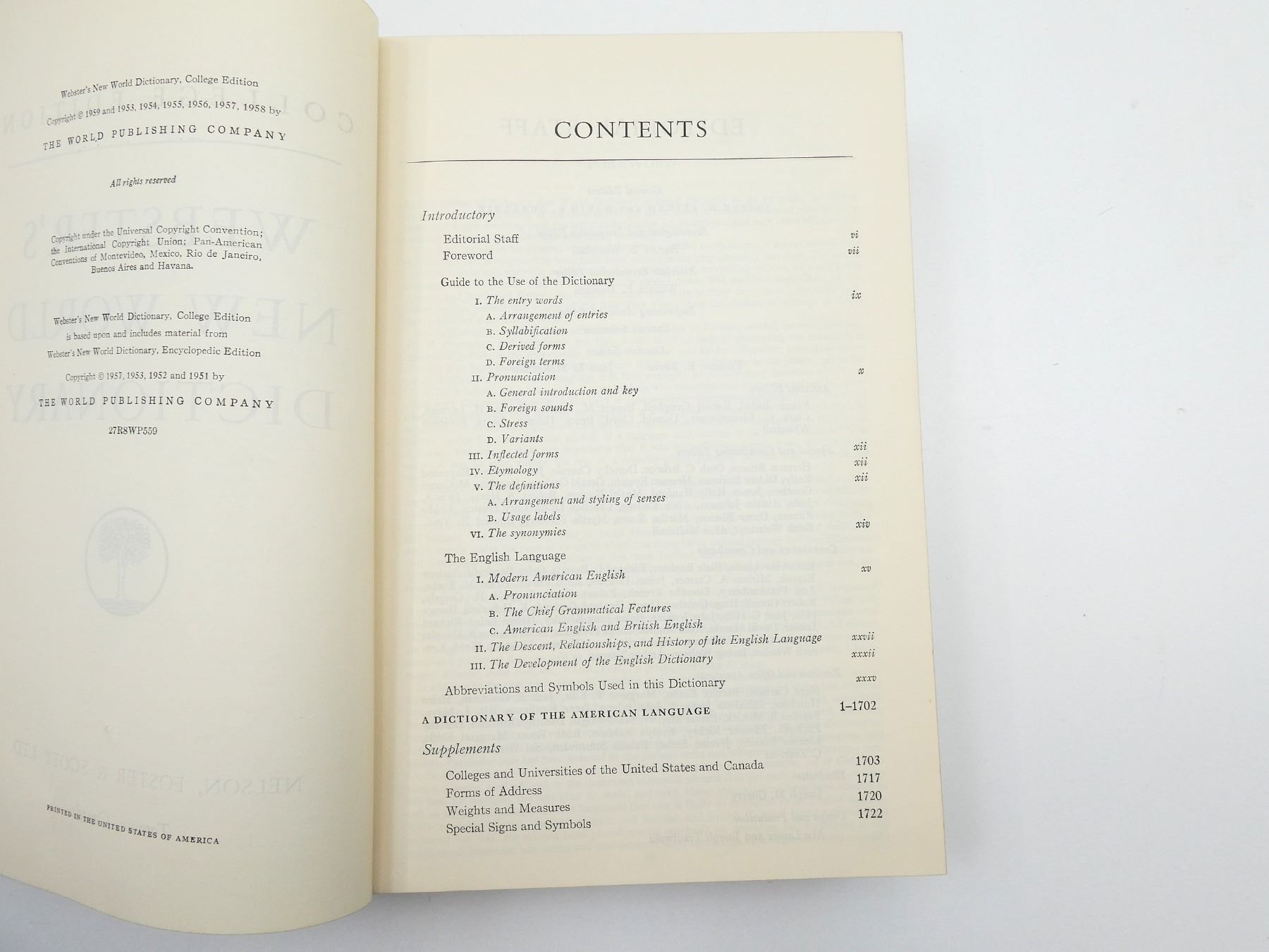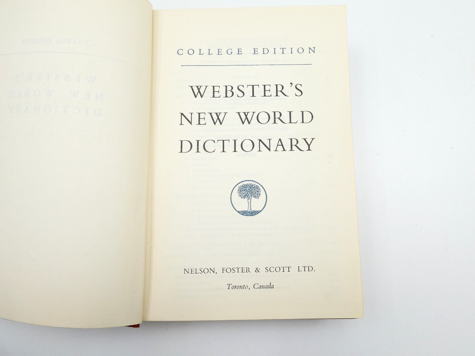 LOT INCLUDES; "THE STANDARD DICTIONARY" BOOK BY THE LITERARY PRESS GLASGOW, HARD COVER, (1) "WEBSTER'S NEW WORLD DICTIONARY COLLEGE EDITION" BOOK BY NELSON, FOSTER & SCOTT LTD, HARD COVER, COPYRIGHT 1959, (1) "FAMILIAR QUOTATIONS FOURTH EDITION" BOOK BY JOHN BARTLETT, HARD COVER, COPYRIGHT 1968, (1) "CANADIAN HISTORIC SITES" BOOK BY NATIONAL HISTORIC PARKS AND SITES, SOFT COVER, ISBN: 0-660-10298-6, (1) "MAN AND POWER" BOOK BY L. SPRAQUE DE CAMP, HARD COVER & (1) "COMPLETE GUIDE TO BUILDING LOG HOMES" BOOK BY MONTE BURCH, HARD COVER WITH DUST COVER, ISBN: 0-943822-27-0. SEE PHOTOS.