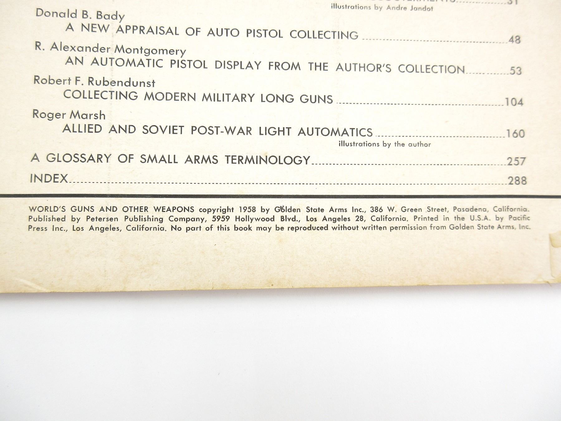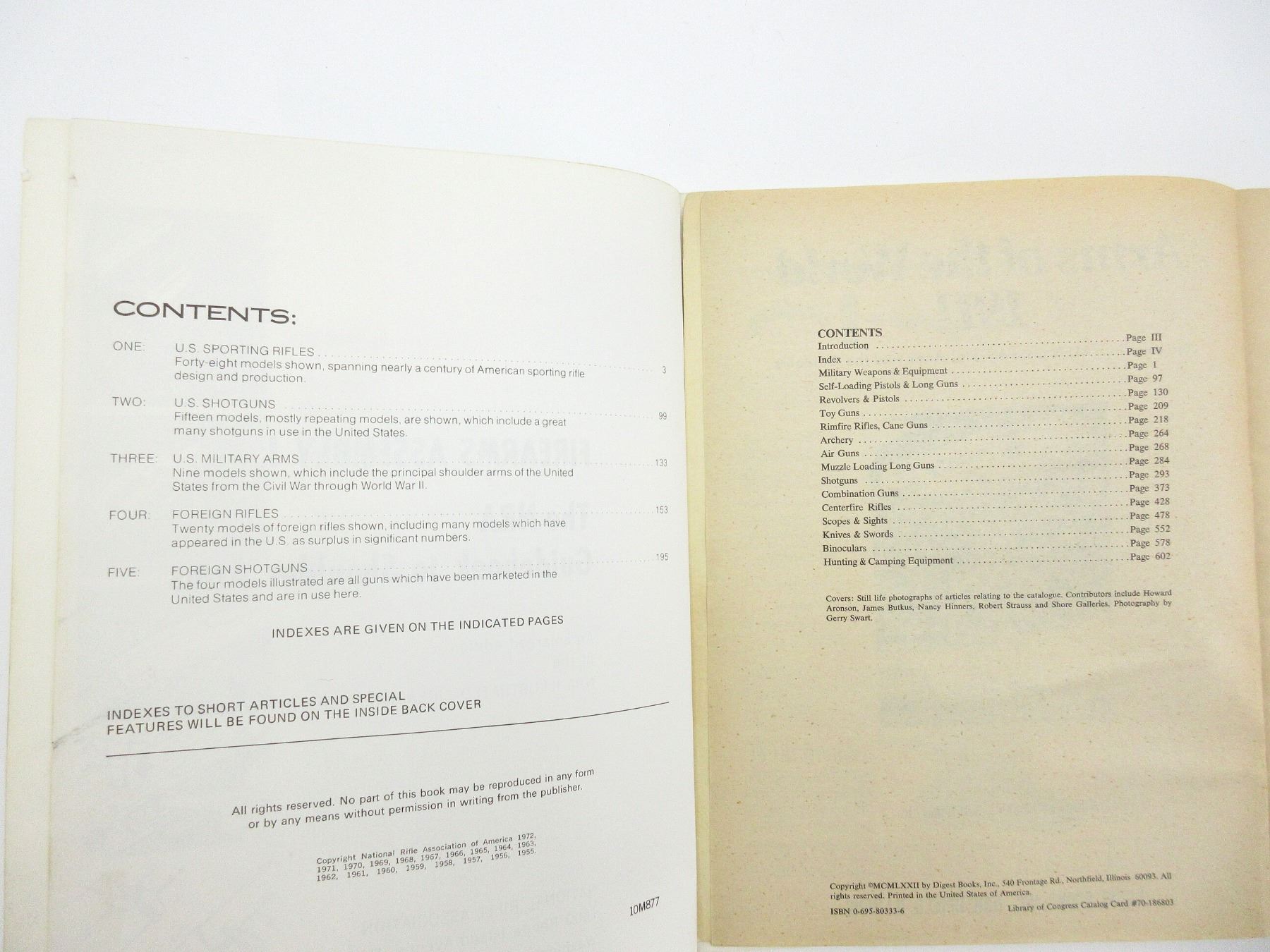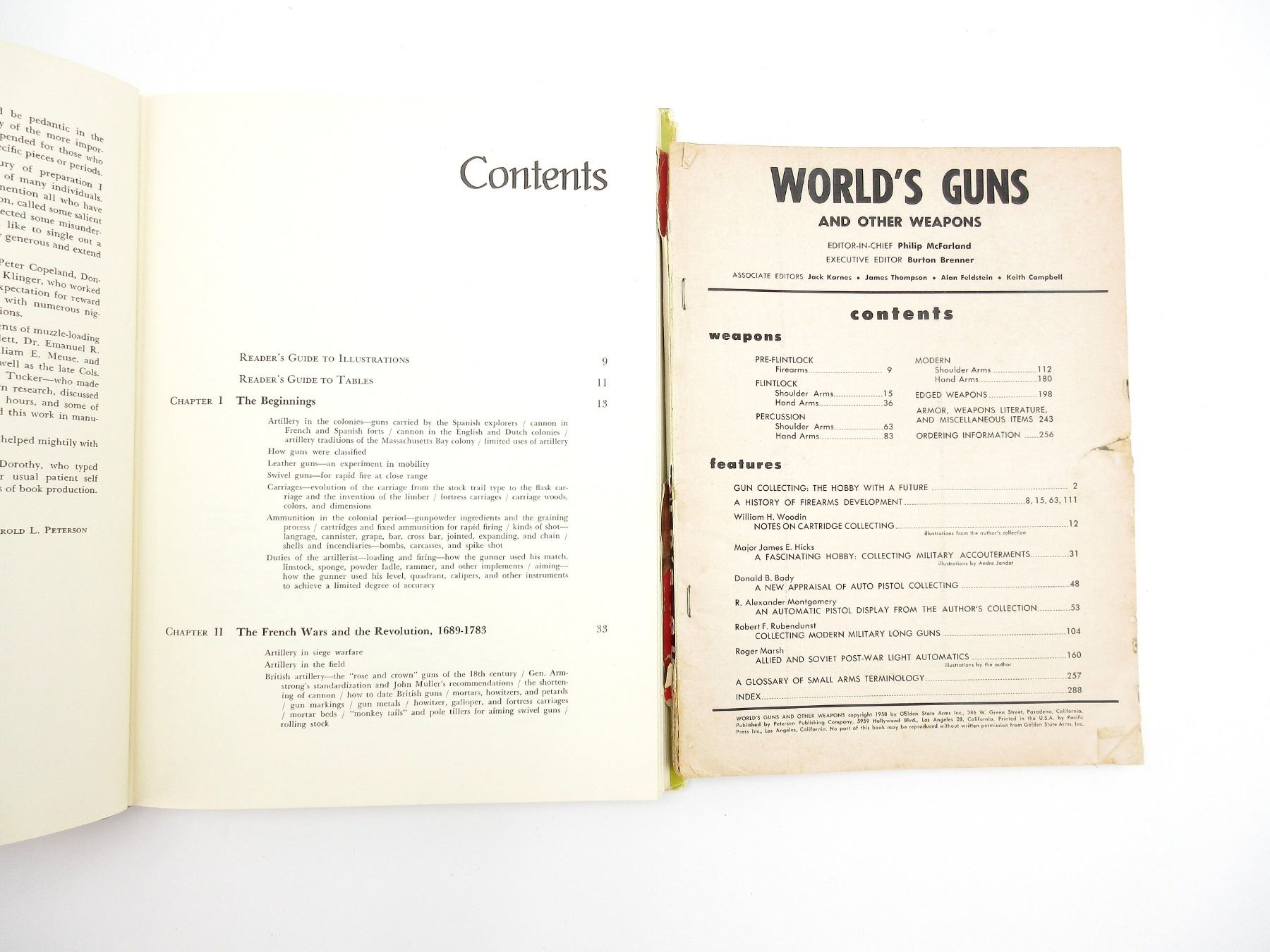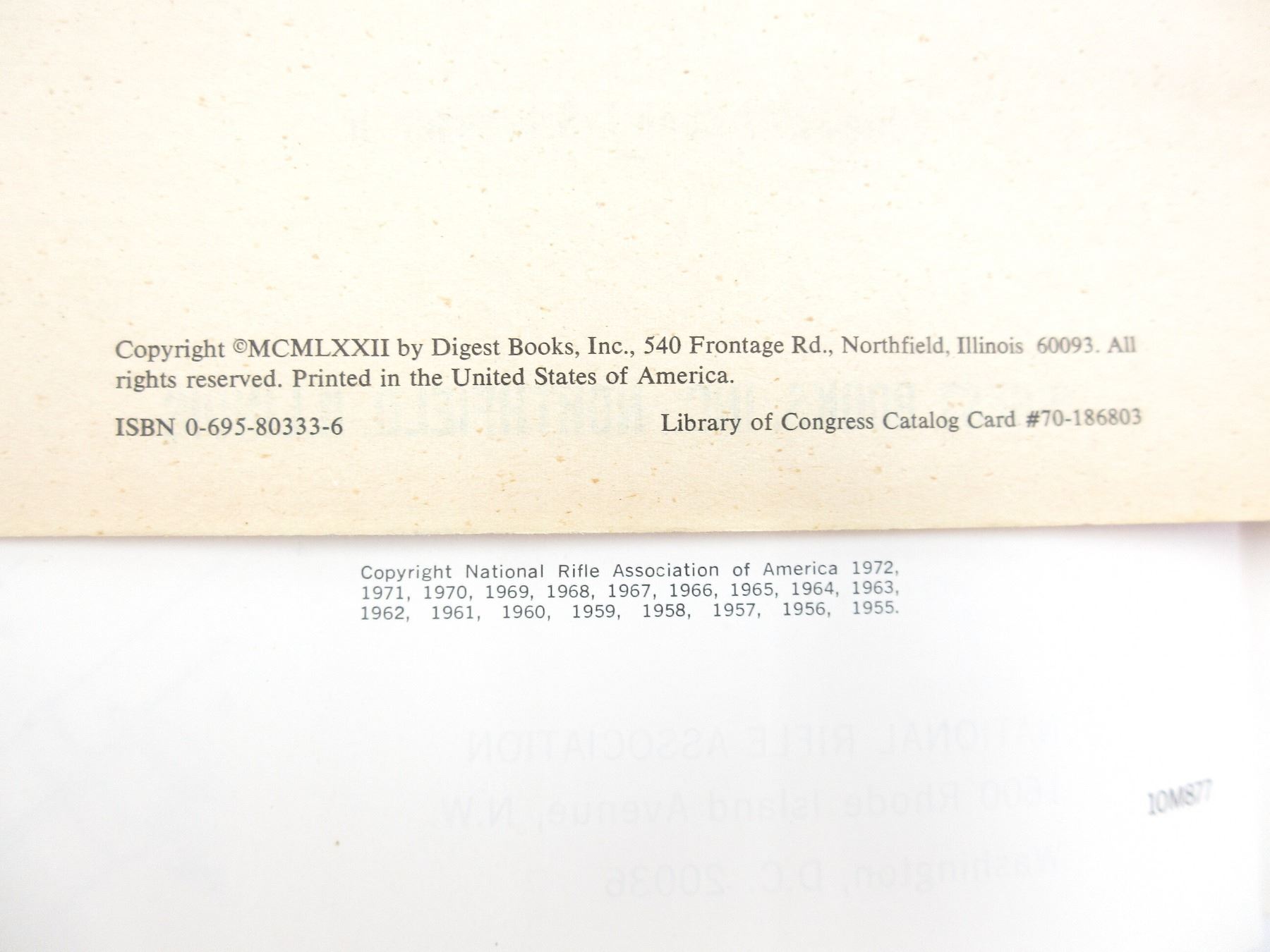 LOT INCLUDES; (1) "ROUND SHOT AND RAMMERS" BOOK BY HAROLD L. PETERSON, HARD COVER WITH DUST COVER, SBN: 8117-1501-9, (1) "GOLDEN STATE ARMS WORLD'S GUNS AND OTHER WEAPONS" BOOK EDITOR-IN-CHIEF PHILIP MCFARLAND, SOFT COVER, COPYRIGHT 1958, (1) "ARMS OF THE WORLD-1911" BOOK EDITED BY JOSEPH J. SCHROEDER, JR, SOFT COVER, ISBN: 0-695-80333-6, (1) "FIREARMS ASSEMBLY I: THE NRA GUIDEBOOK TO SHOULDER ARMS" BOOK BY NATIONAL RIFLE ASSOCIATION, SOFT COVER, COPYRIGHT 1972, & (1) "FIREARMS ASSEMBLY II: THE NRA GUIDEBOOK TO HANDGUNS" BOOK BY NATIONAL RIFLE ASSOCIATION, SOFT COVER, COPYRIGHT 1972. SEE PHOTOS.