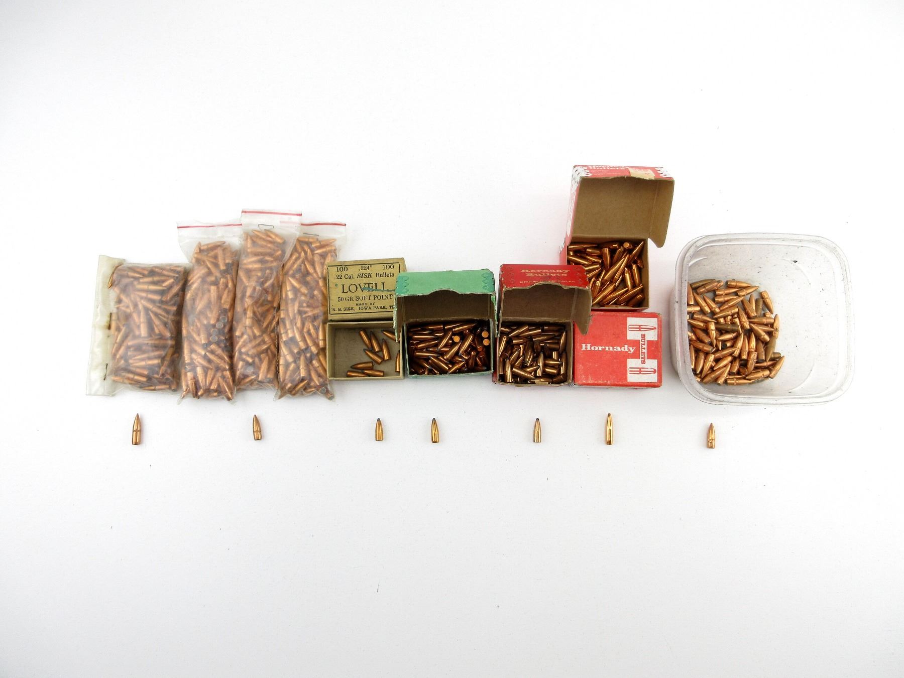 LOT INCLUDES; APPROX. 6 LBS BULLETS, APPROX. DIA .223"/.224", VARIOUS MANUFACTURERS INCLUDING; HORNADY, SIERRA, LOVELL, ETC., (1) UNOPENED.