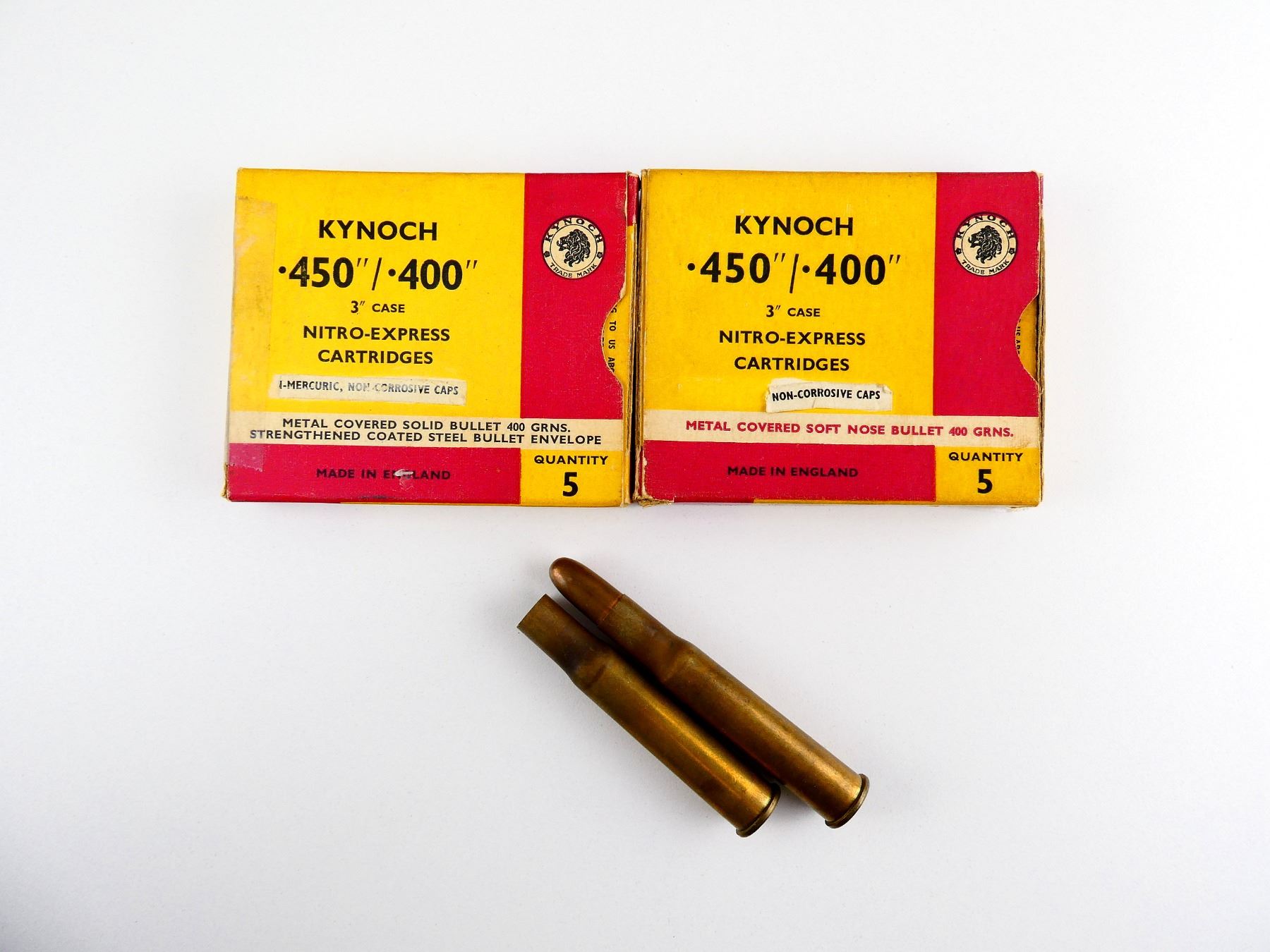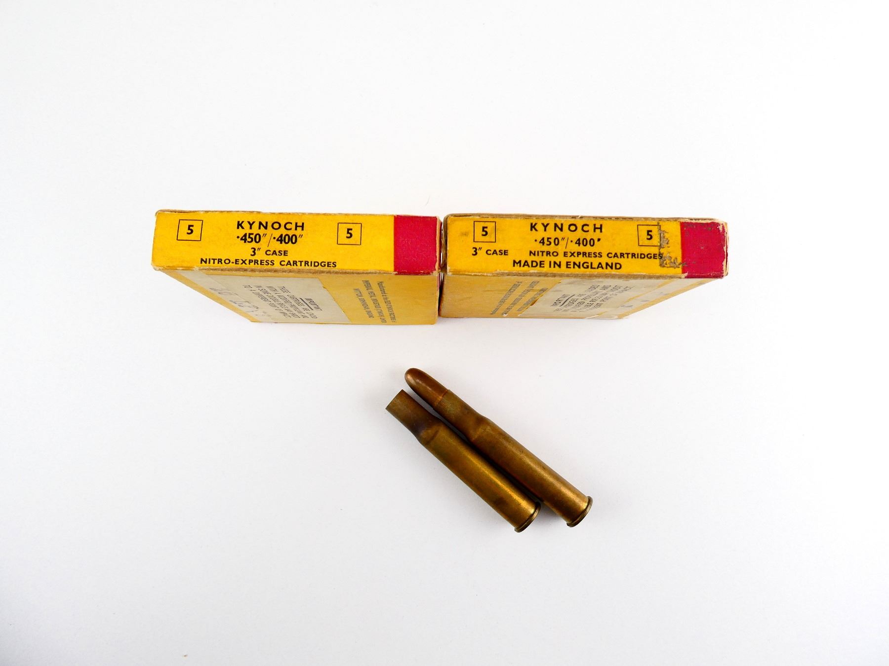 COLLECTIBLE KYNOCH .450"/.400" 3" NITRO-EXPRESS AMMO AND NON-PRIMED BRASS CASES LOT