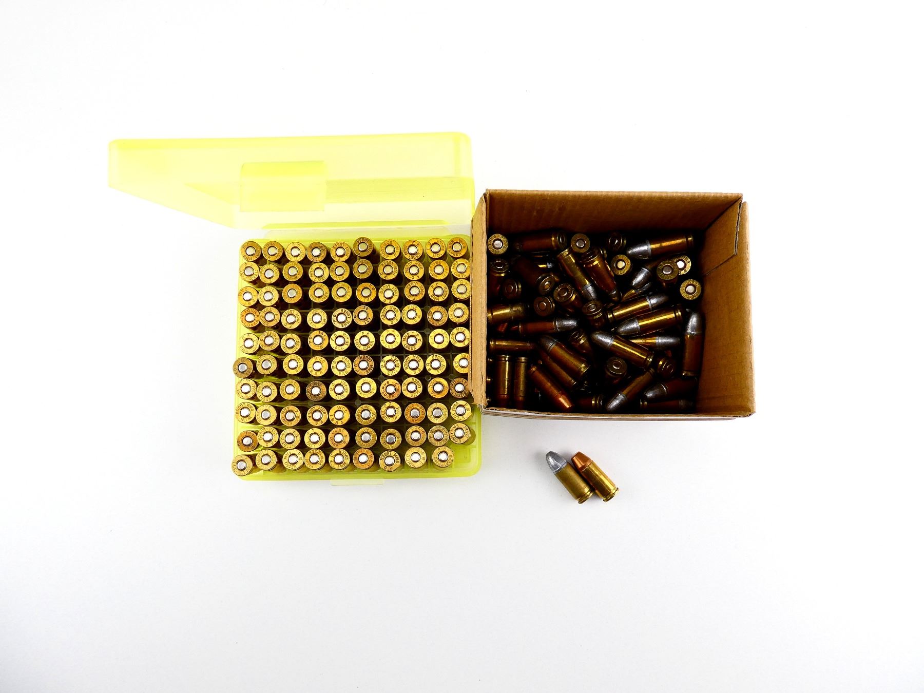 LOT INCLUDES; APPROX. (200) RNDS, (1) J&J PLASTIC AMMO BOX FOR 9MM.