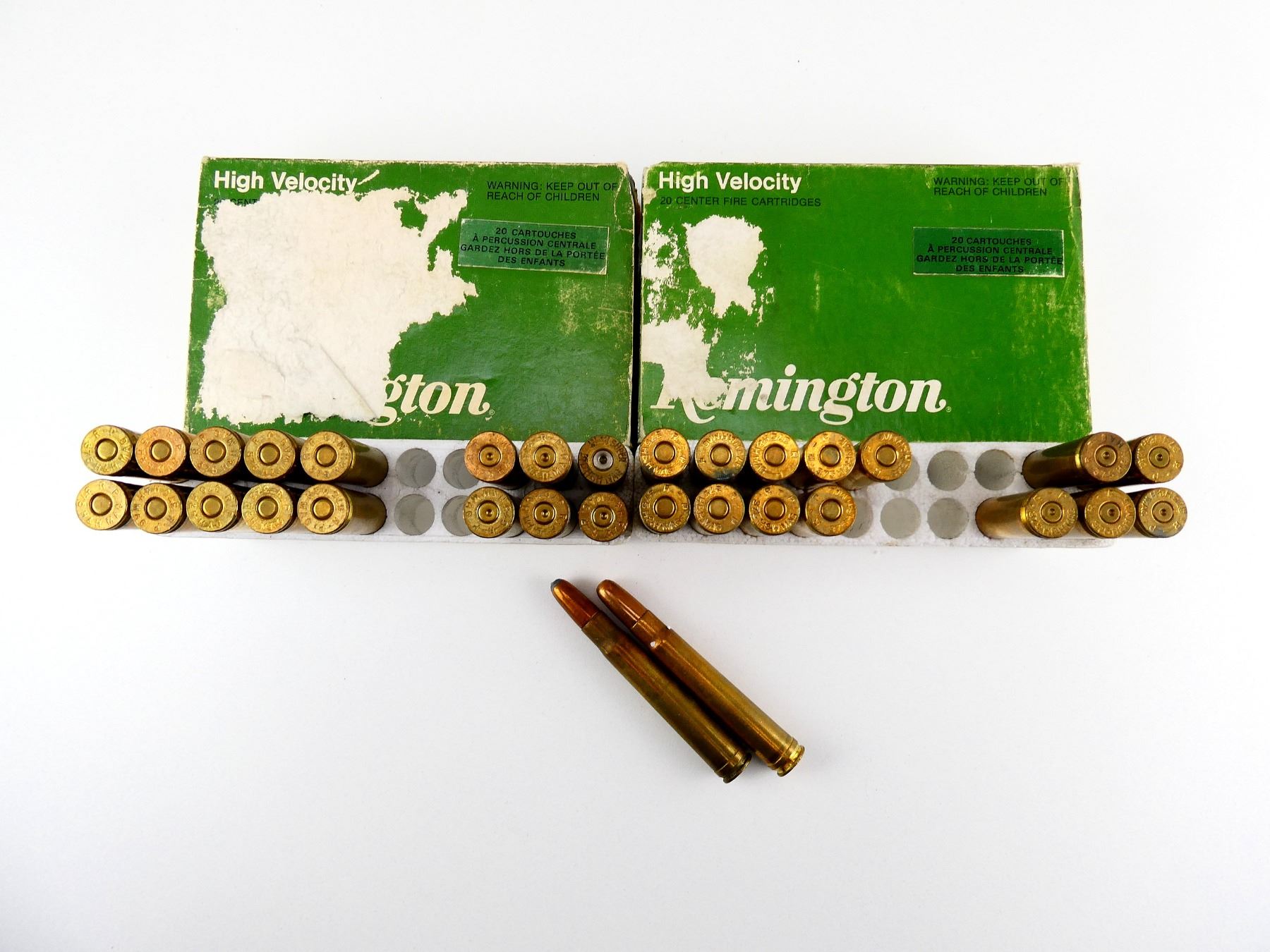 LOT INCLUDES; APPROX. (21) RNDS, 270 GRNS (STATED ON BOX NOT CONFIRMED), SP & 300 GRNS (STATED ON BOX NOT CONFIRMED), METAL CASE, (11) NON-PRIMED BRASS CASES.