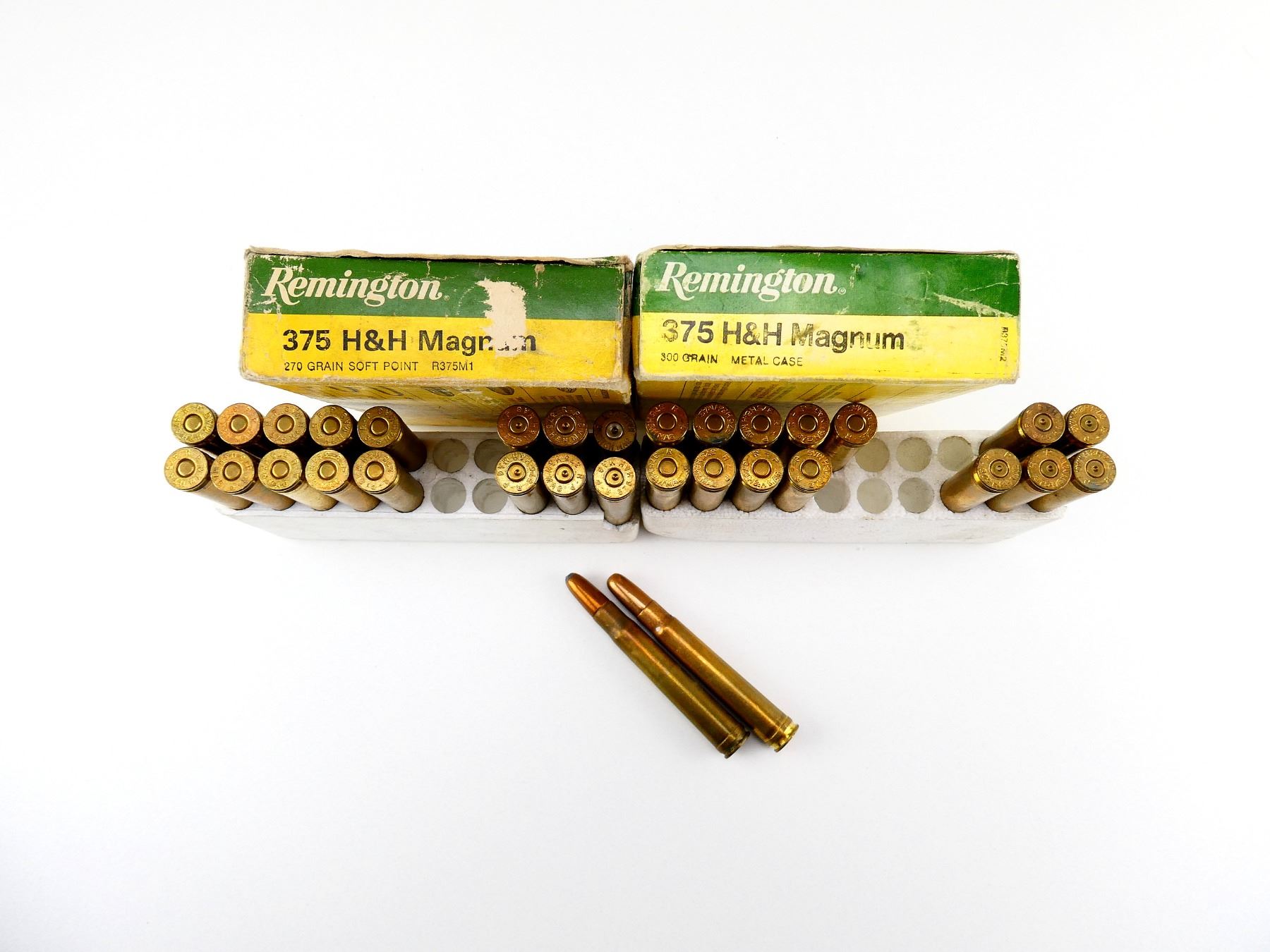 Lot 11691 ASSORTED REMINGTON .375 H&H MAGNUM AMMO AND NON-PRIMED BRASS CASES LOT
