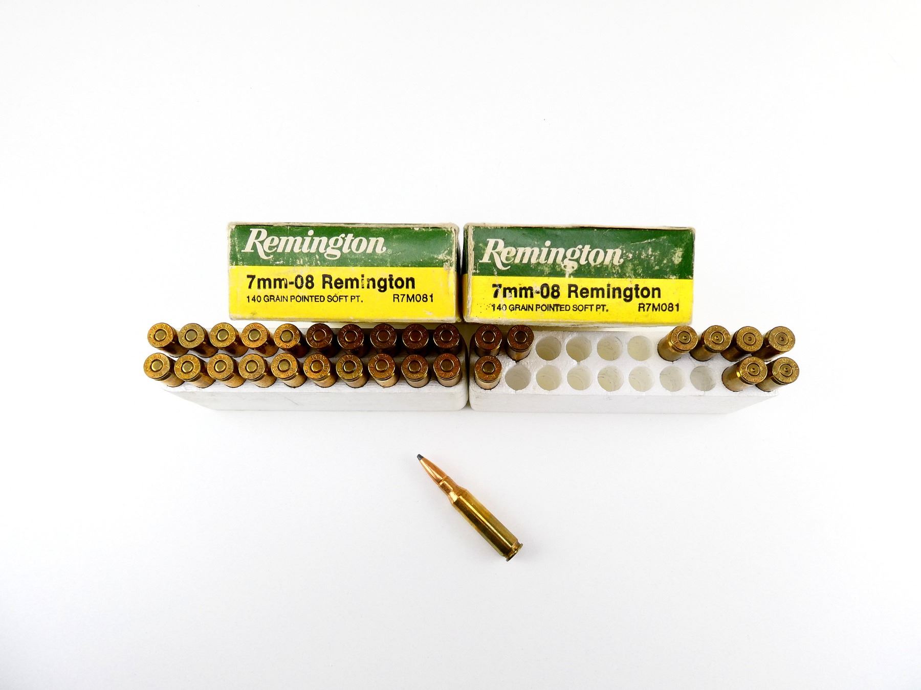 Lot 11698 REMINGTON 7MM-08 REM AMMO AND NON-PRIMED BRASS CASES LOT