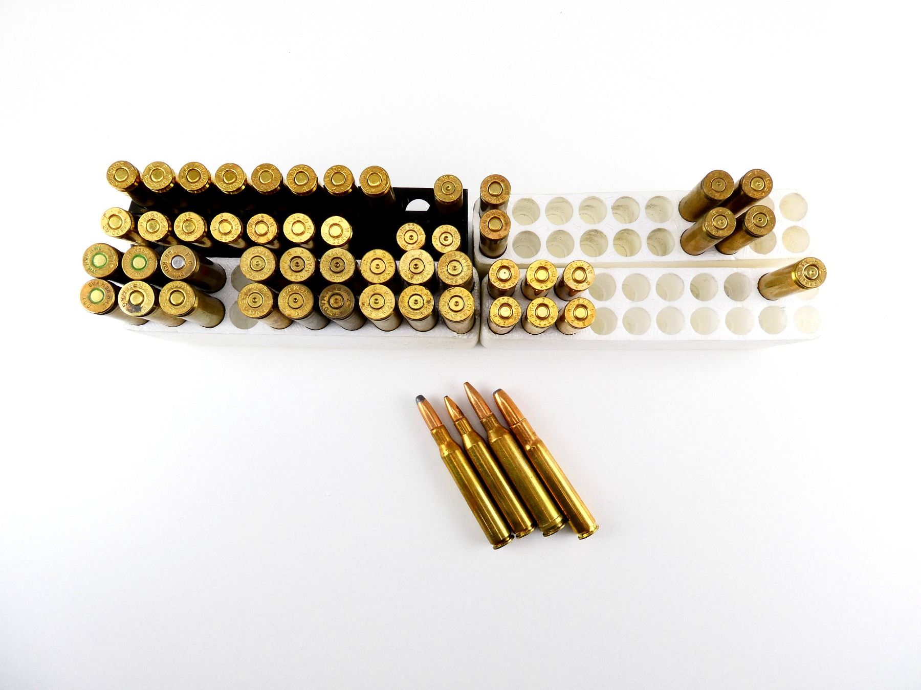 LOT INCLUDES; APPROX. (33) RNDS, VARIOUS MANUFACTURERS, ASSORTED CALIBERS INCLUDING; .35 WHELEN, .25-06 REM, .280 REM, 7MM REM MAG, ETC., (20) NON-PRIMED BRASS CASES.